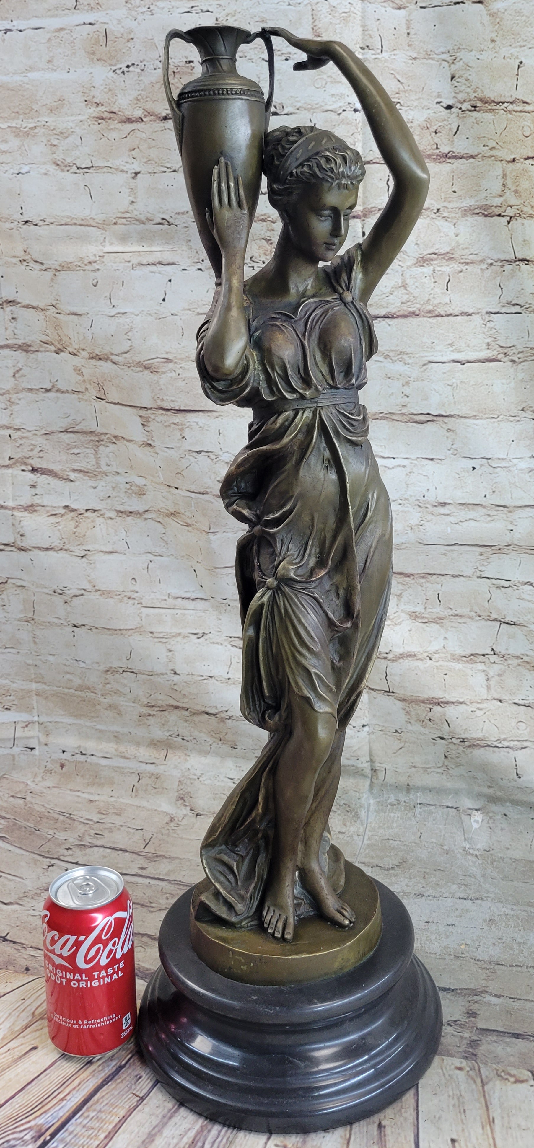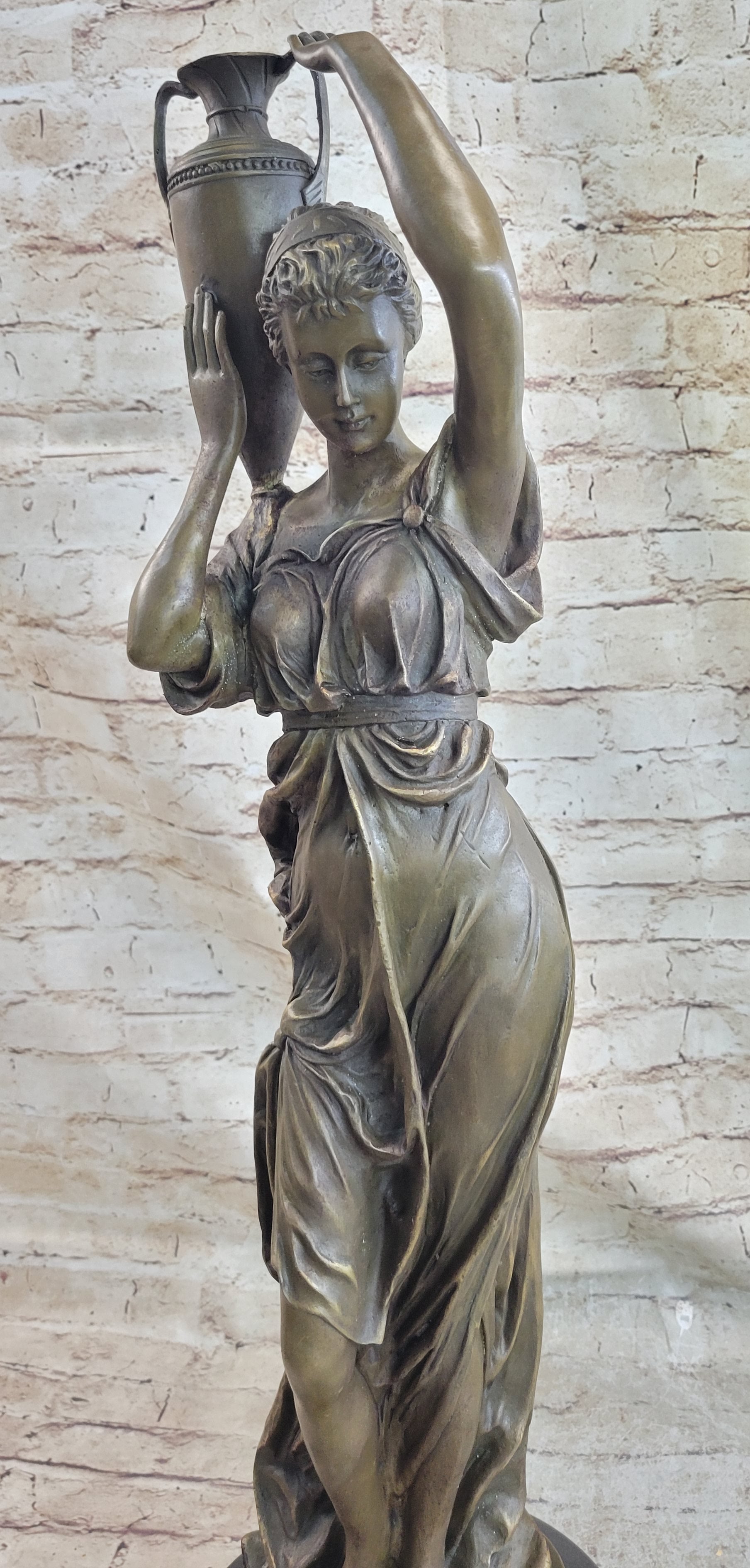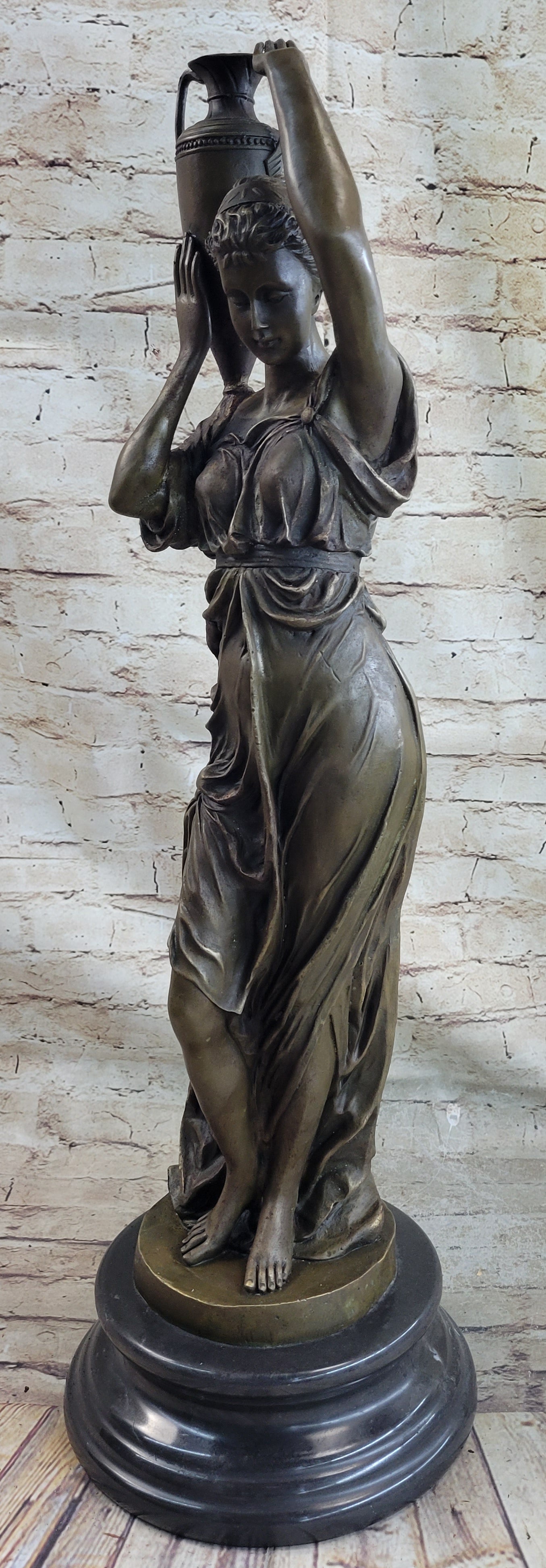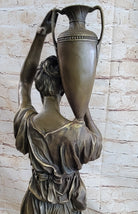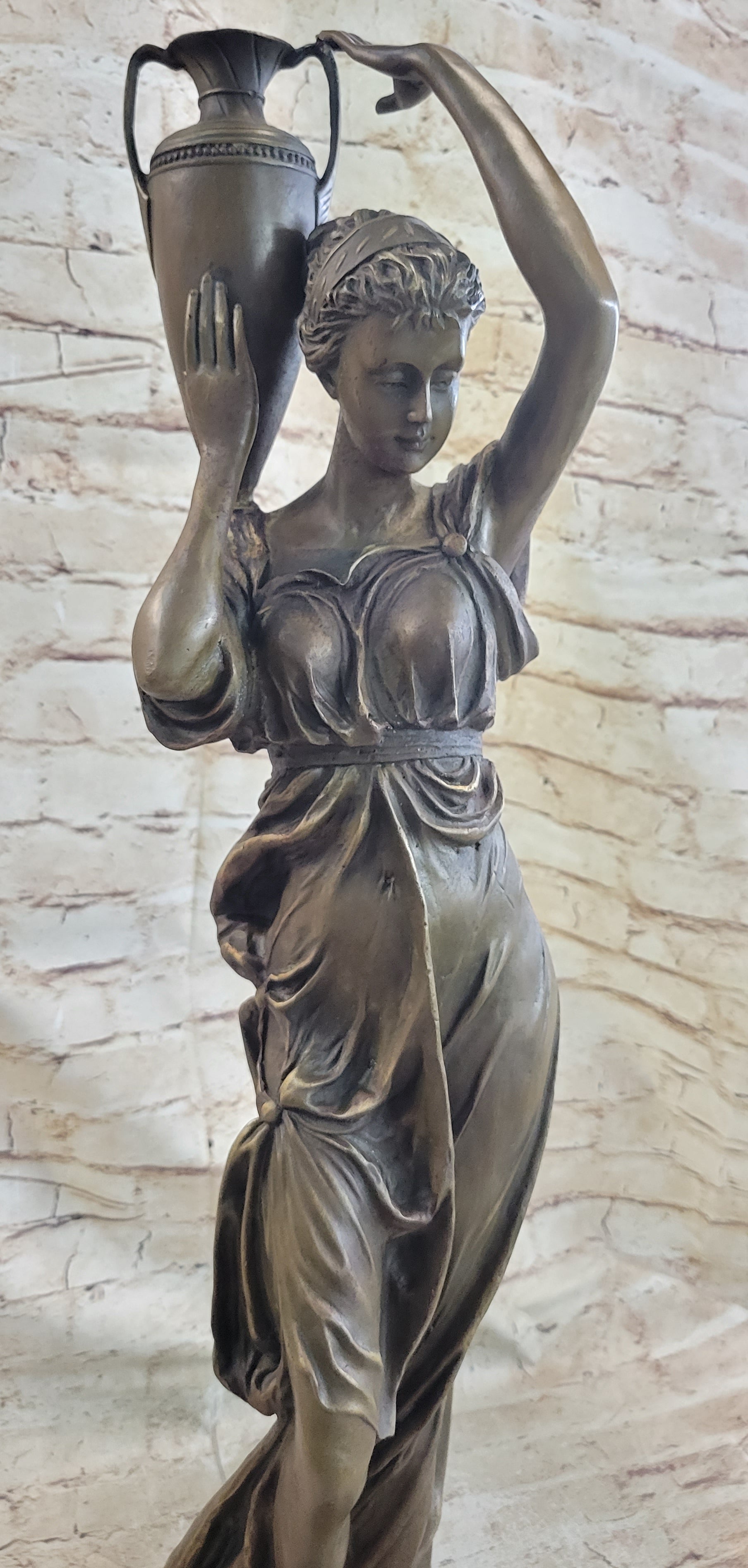 Bronze Statue Sculpture of Classical Roman Woman Water Carrier on Marble Base