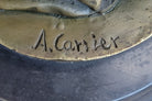 A creation of artist A. Carrier, this Victorian Woman Bronze Statue is a symbol of refined beauty and thought-provoking artistry. Whether displayed in a home or business setting, it is sure to add a touch of grace and intrigue to any environment, making it a cherished addition to your collection of fine art.Bronze Dimensions with Marble Base: Height 28" X Width 9"