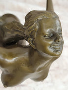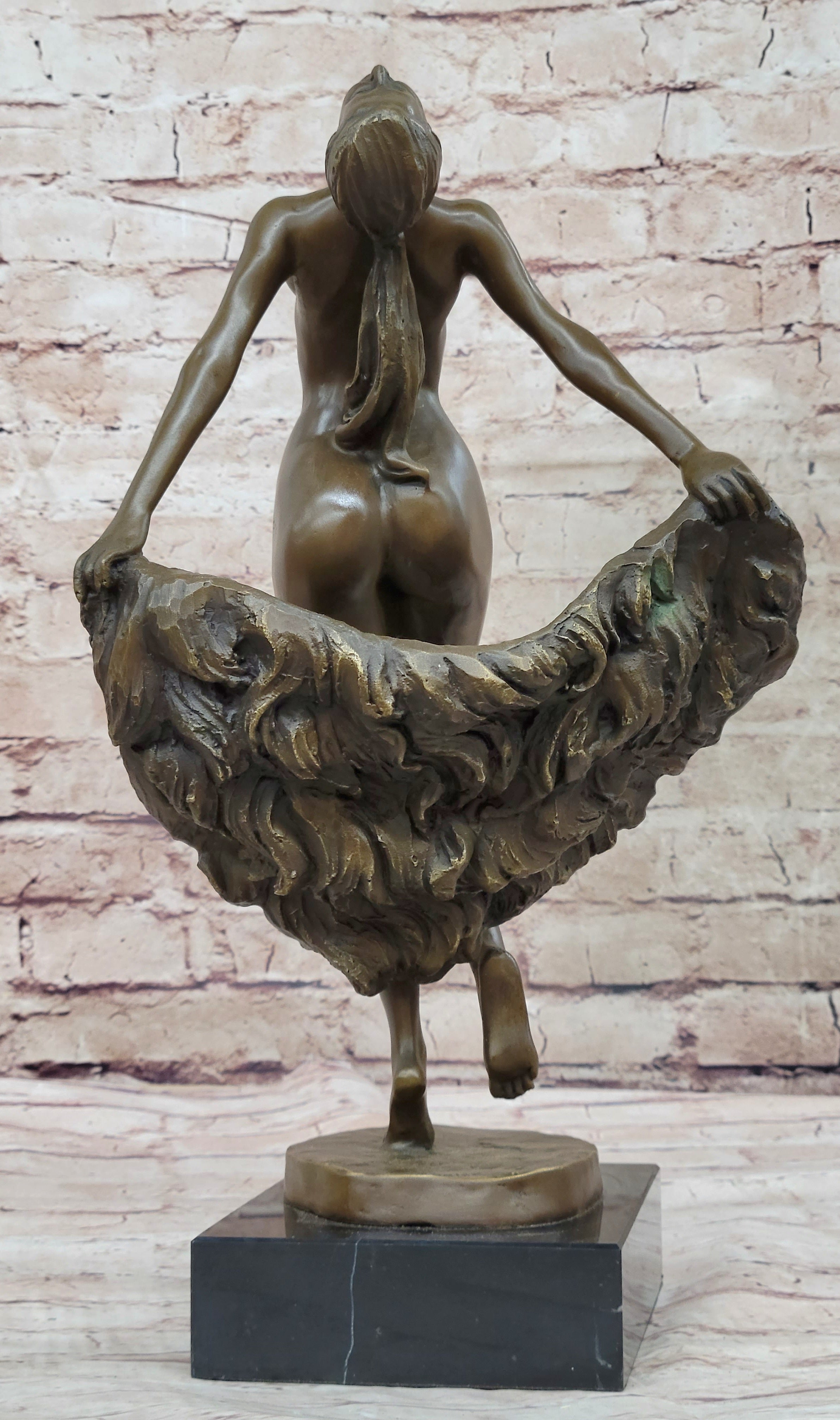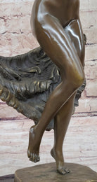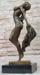 Bronze Statue Sculpture of Nude Female Figure Dancer Girl w/ Sash Signed Original Art
