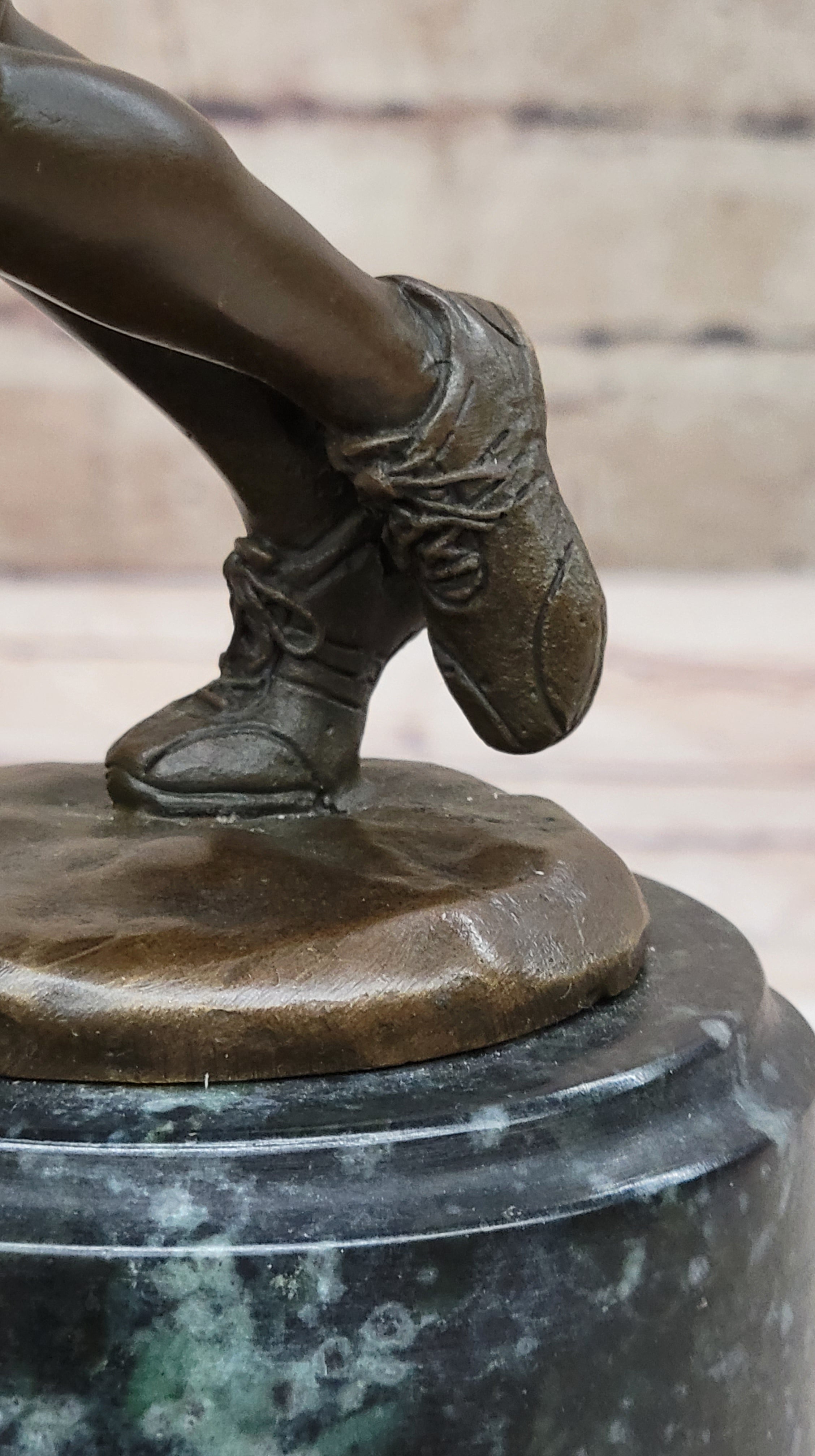 Dressed in a typical basketball uniform – a jersey, shorts, and high-top sneakers – the player's form is rendered with meticulous detail. The bronze sculpture, crafted with precision and care, is a testament to the artist's commitment to capturing the dynamic nature of the sport. The use of the "Lost Wax Method" ensures that every nuance and detail is faithfully reproduced, resulting in a lifelike representation.