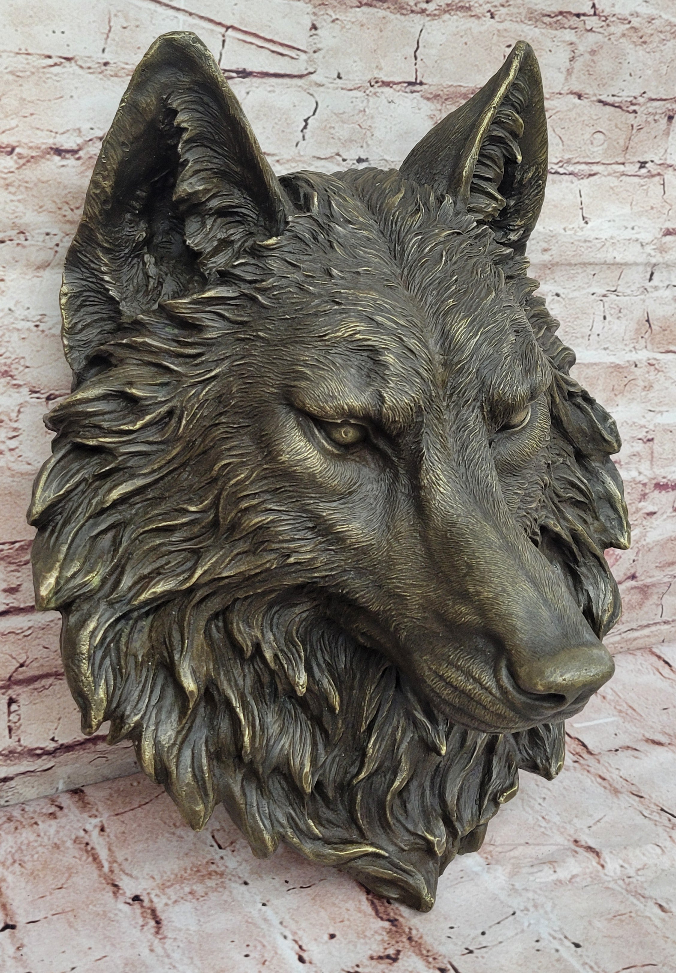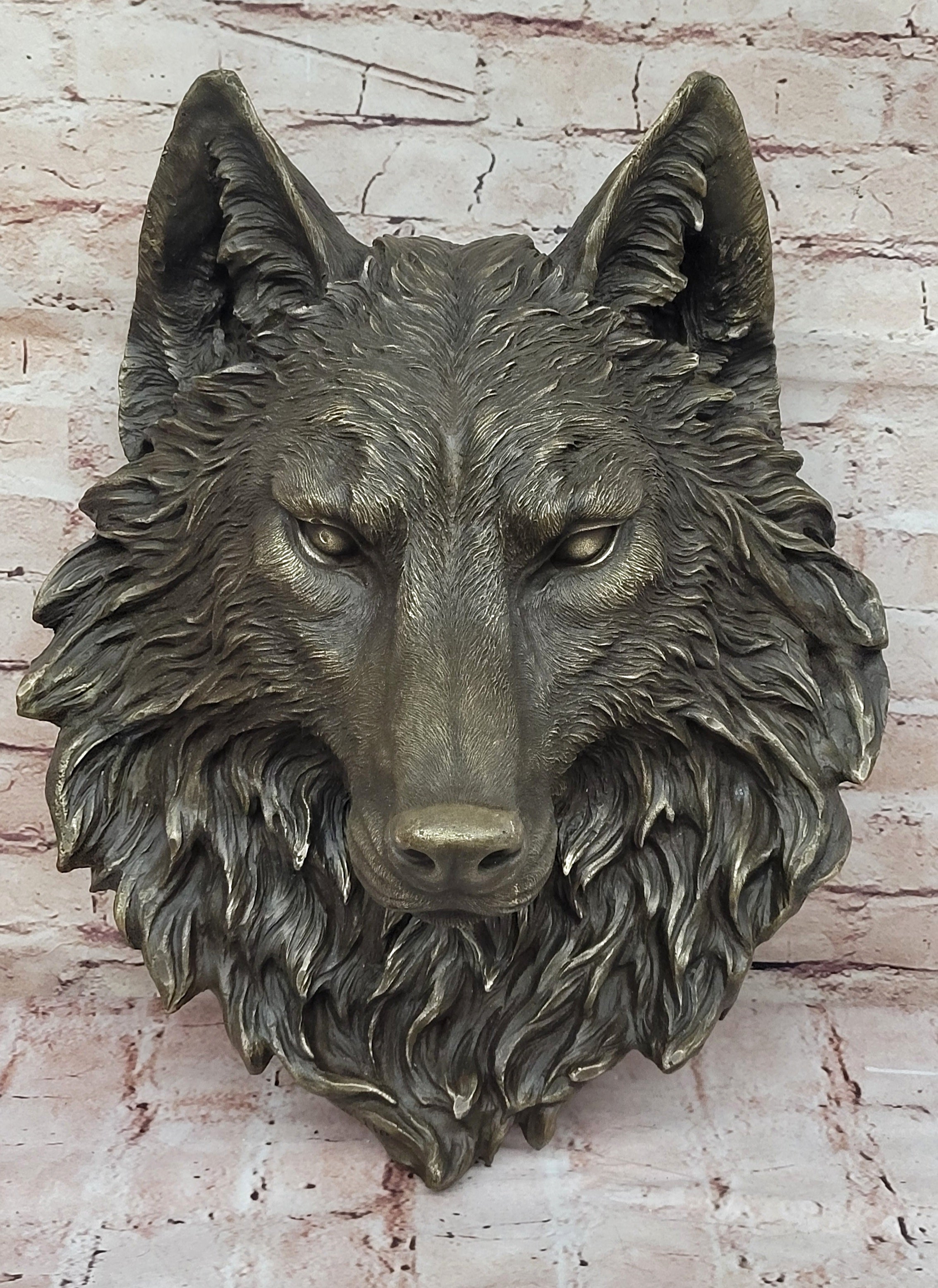 Bronze Wolf Head Sculpture – Detailed Wall-Mounted Wildlife Art Decor Milo Original