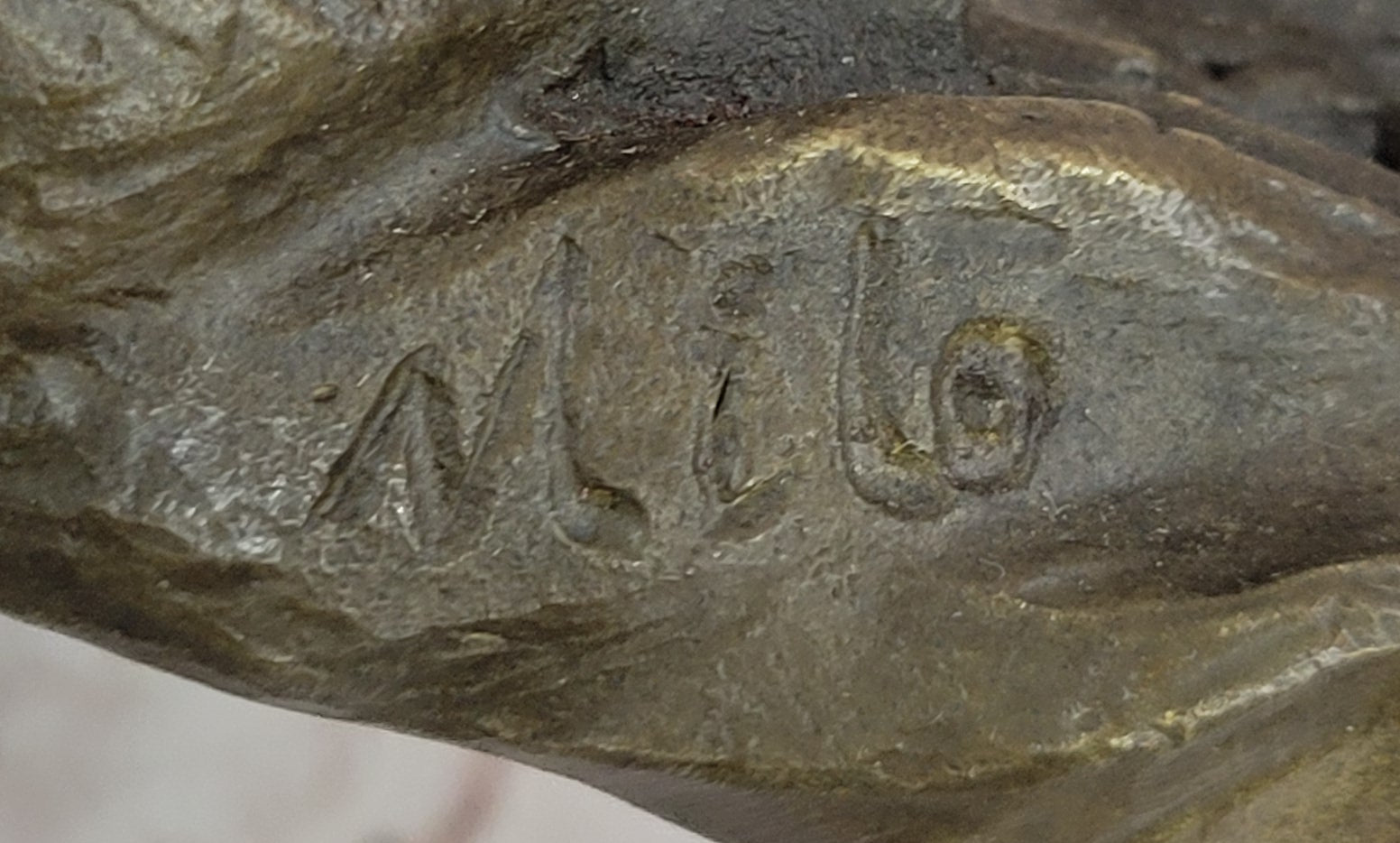 This handmade bronze sculpture was crafted using the time-honored lost-wax casting method, ensuring that every feature of the wolf's commanding presence is meticulously preserved. Finished with a rich brown patina, it exudes both rustic charm and durability. Mounted proudly on your wall, this sculpture invites admiration for its fine craftsmanship and nature-inspired elegance. The piece is signed by the renowned artist Milo, ensuring its authenticity and artistic value.