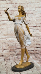 The sculpture features a multi-color cold paint finish, enhancing the intricate details of the figure and adding depth to her flowing attire. The subtle transparency effect of the dress, combined with the rich patina, creates a stunning contrast, emphasizing the beauty and refinement of the piece.