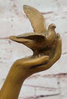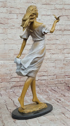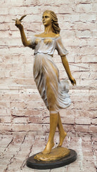 Bronze Woman with Bird Sculpture Statue – Flowing Dress Figurine