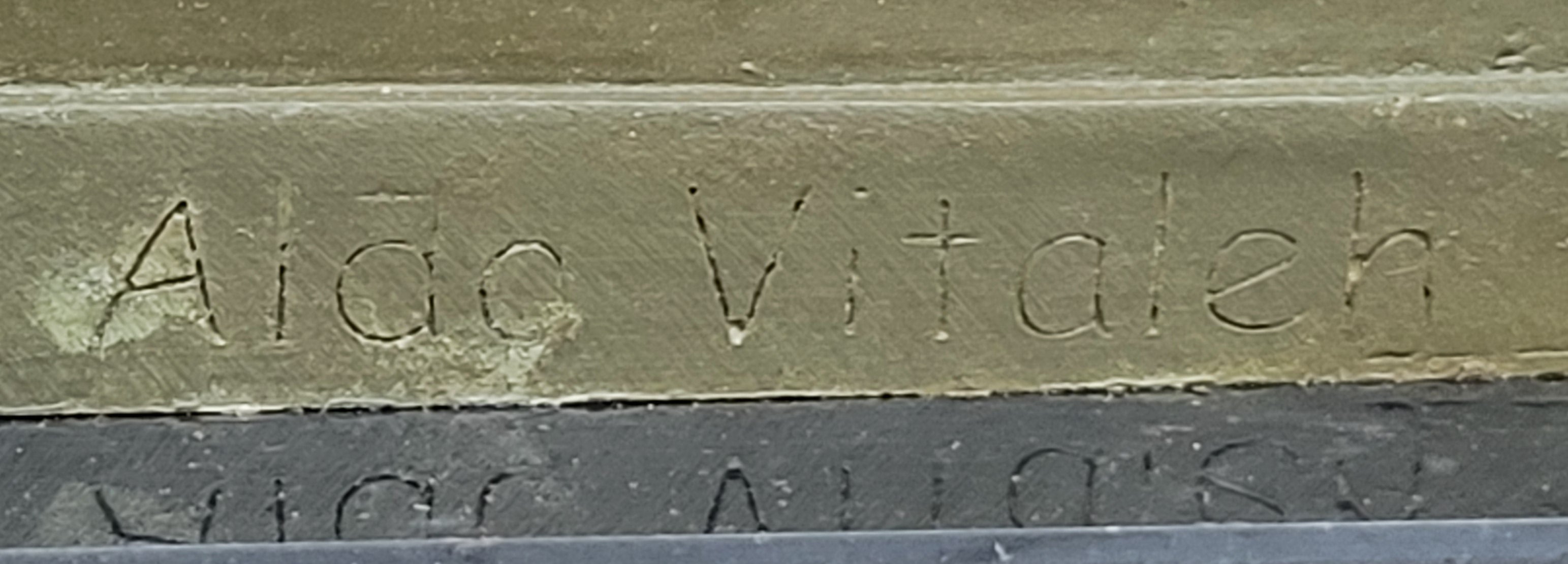 Mounted on a sleek black marble base, this signed artwork bears the signature of Aldo Vitaleh, ensuring its authenticity and collectible value. Whether displayed as a centerpiece or part of a curated collection, this sculpture offers a timeless blend of myth, beauty, and fine artistry.Bronze Dimensions with Marble Base: Height 7" X Width 8"