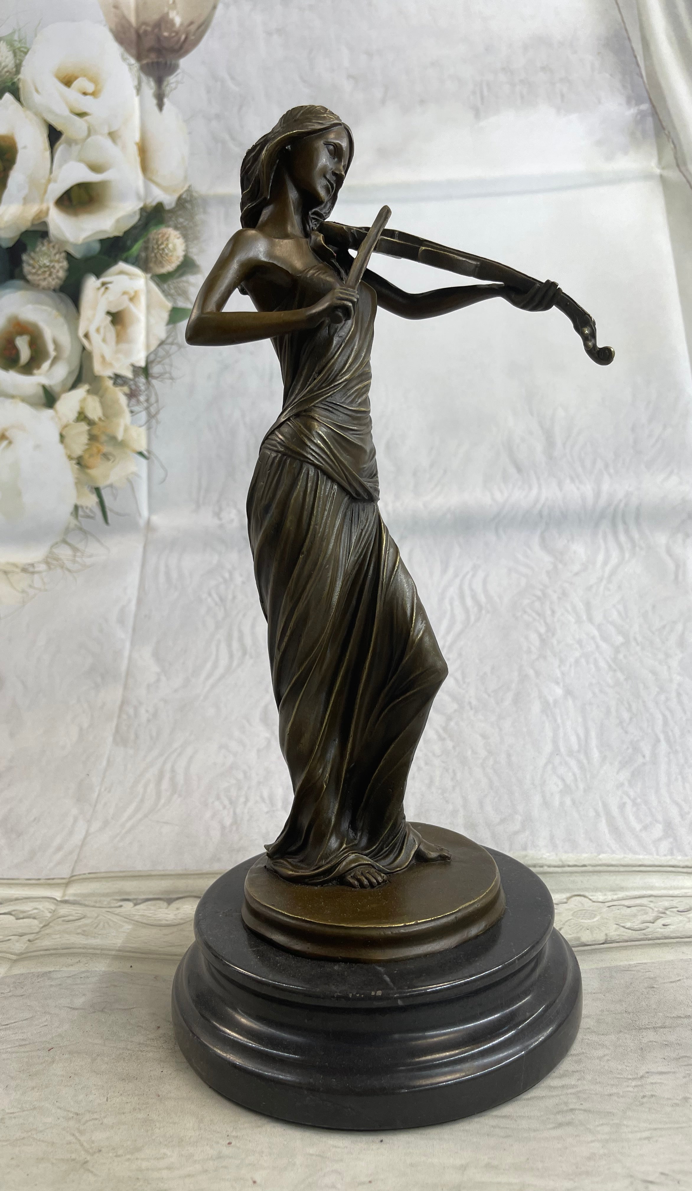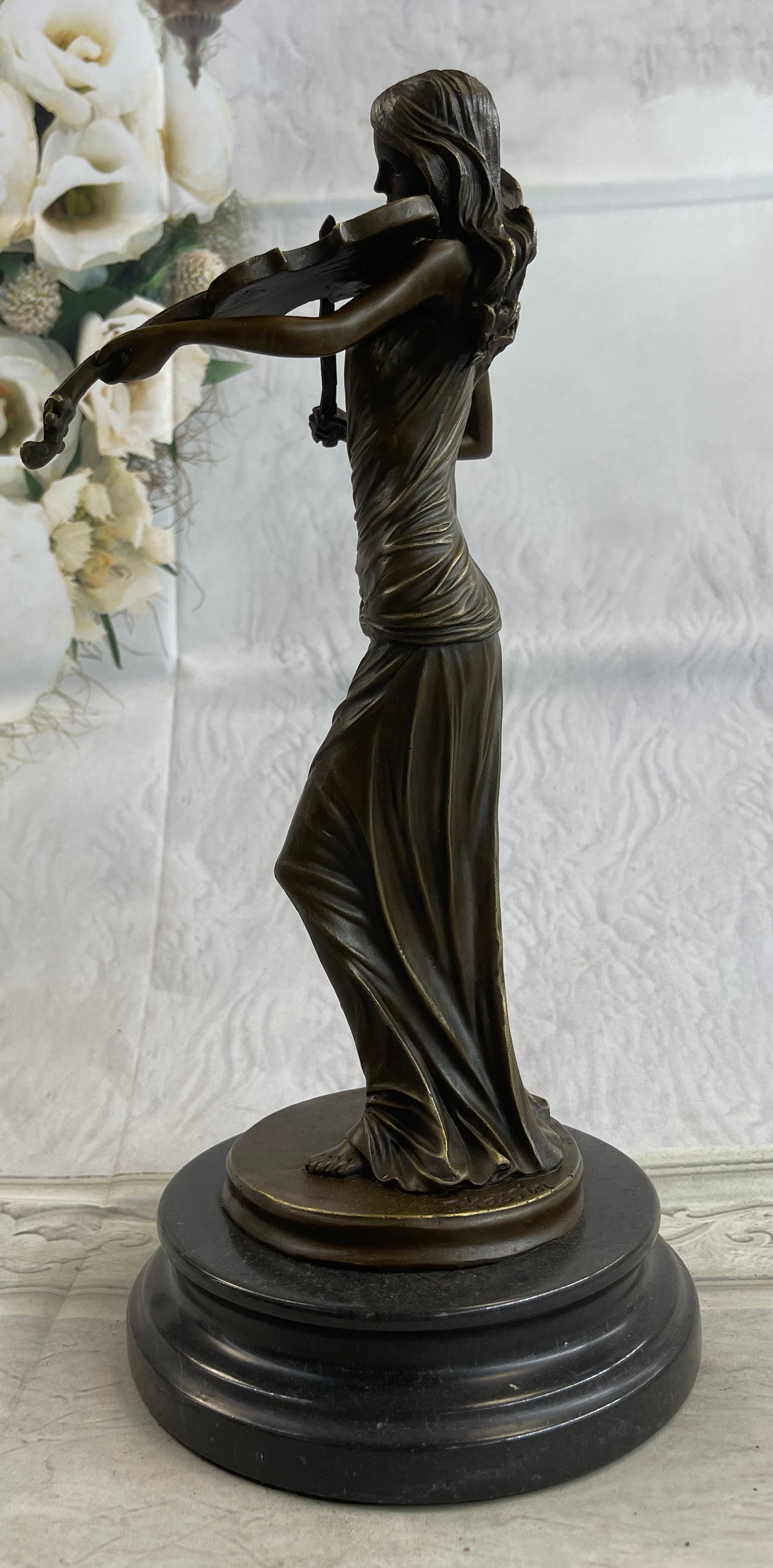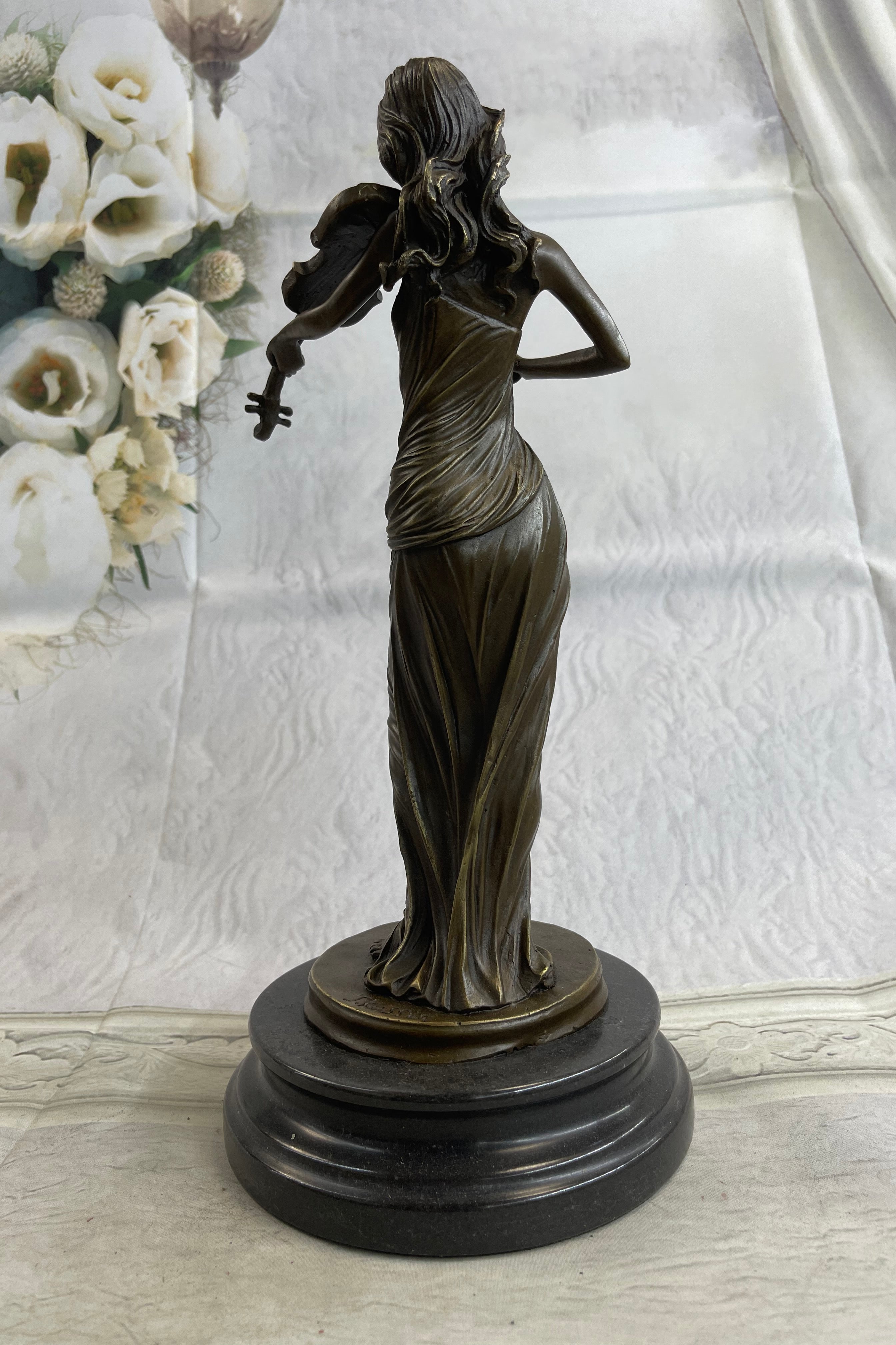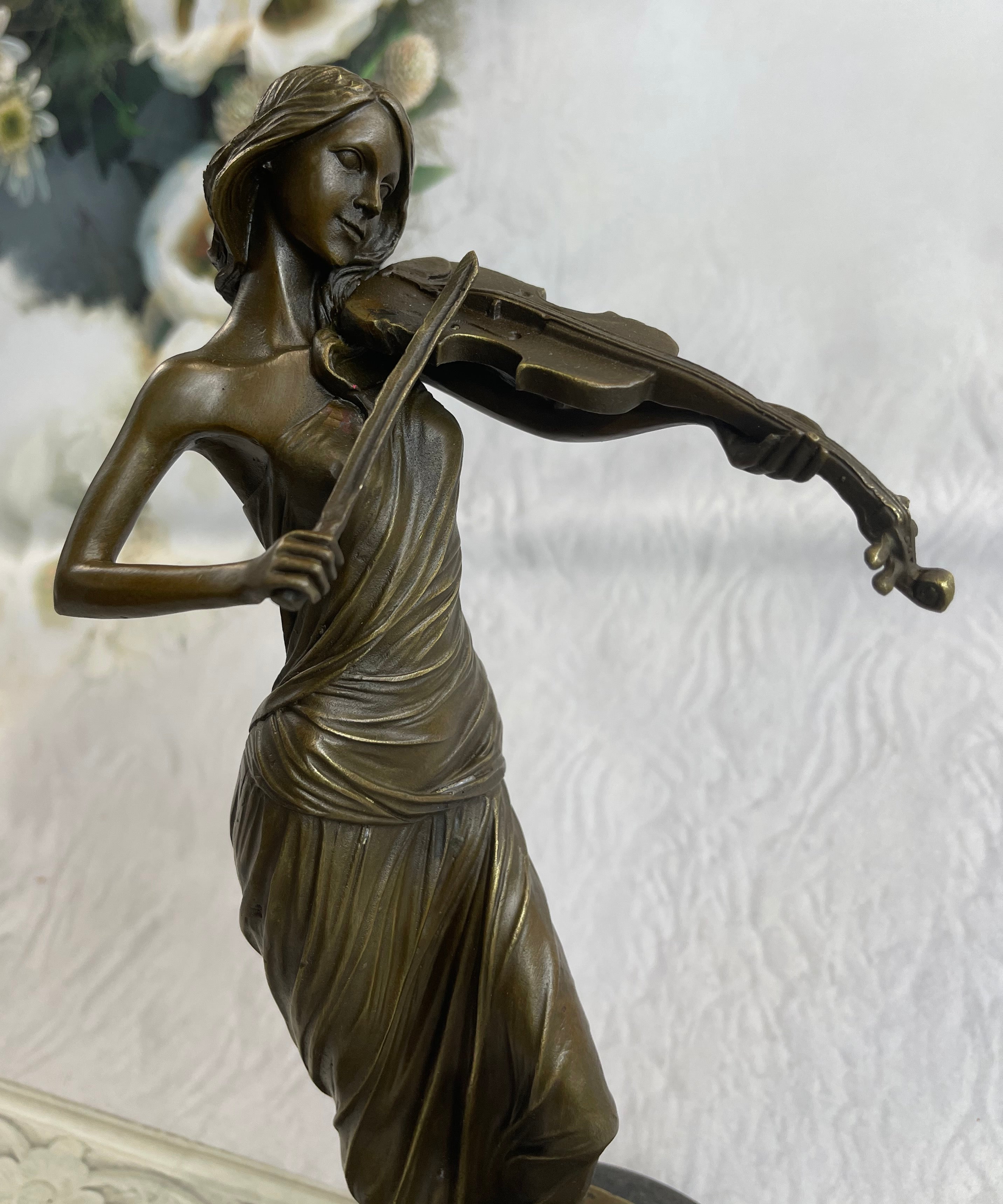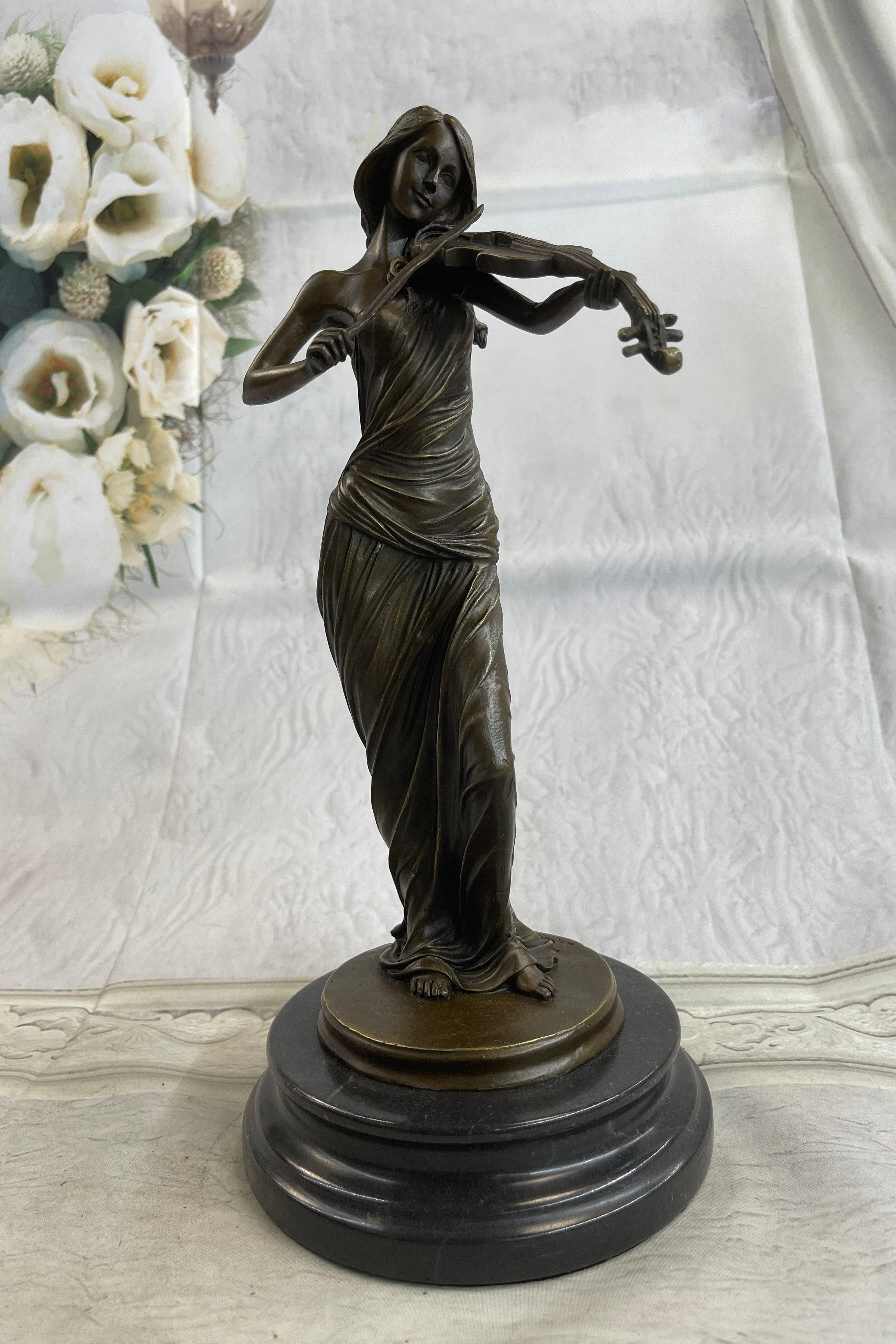 Crafted with meticulous detail using the lost wax method, this sculpture captures the essence of the musician's passion and talent, from the graceful curves of her figure to the intricate lines of her violin. Resting on a black marble base, the sculpture exudes a sense of tranquility and sophistication, inviting viewers to be transported by the beauty of the moment.