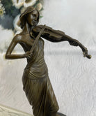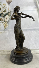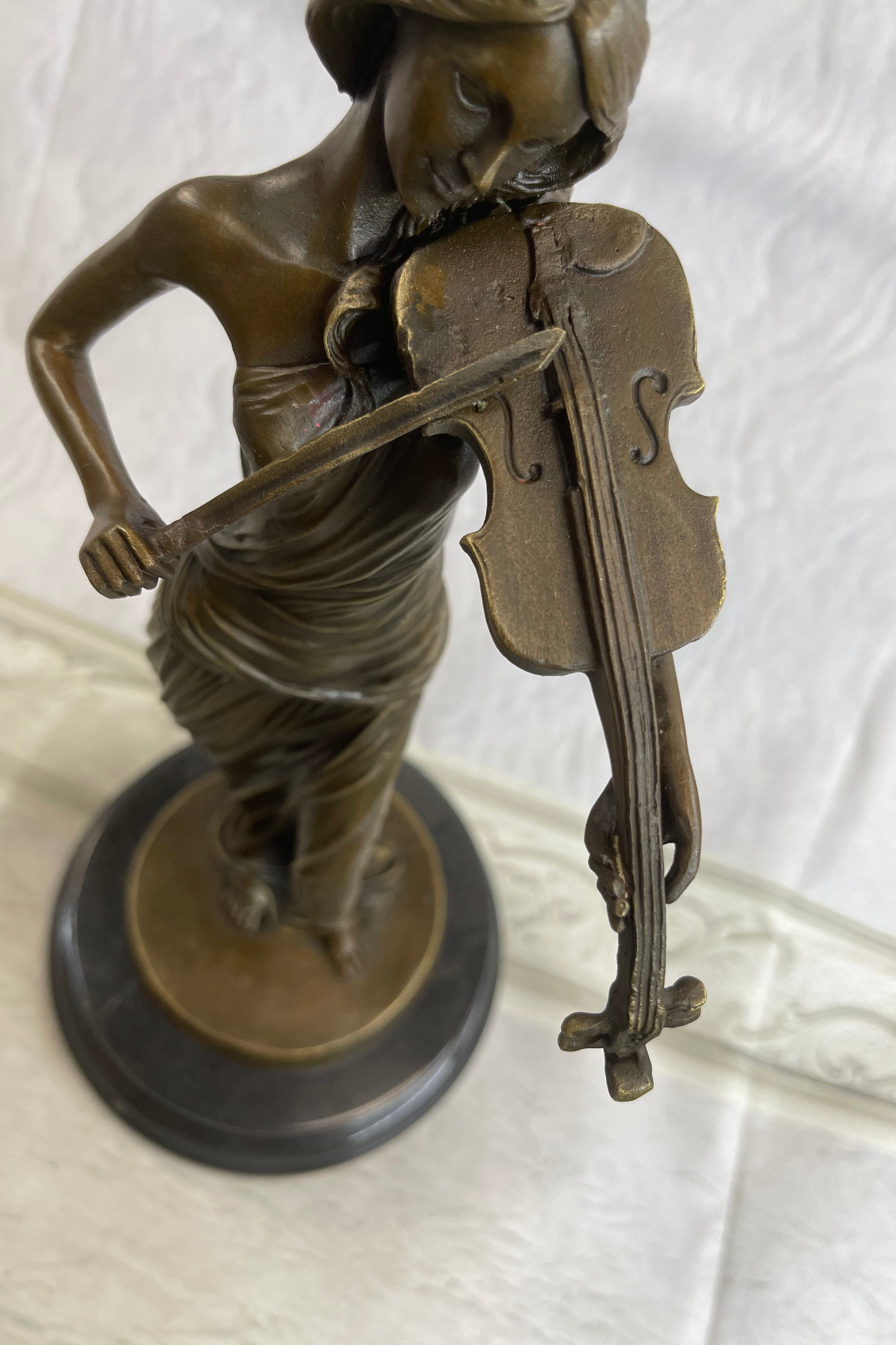 Brown Color Patina Bronze Sculpture Violin Player Viola Musician Marble Figurine