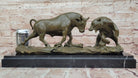 Mounted on a polished black marble base, this piece is both elegant and powerful—a perfect office centerpiece, boardroom statement, or gift for a stock market enthusiast.Bronze Dimensions with Marble Base: Height 8" X Width 16.5"