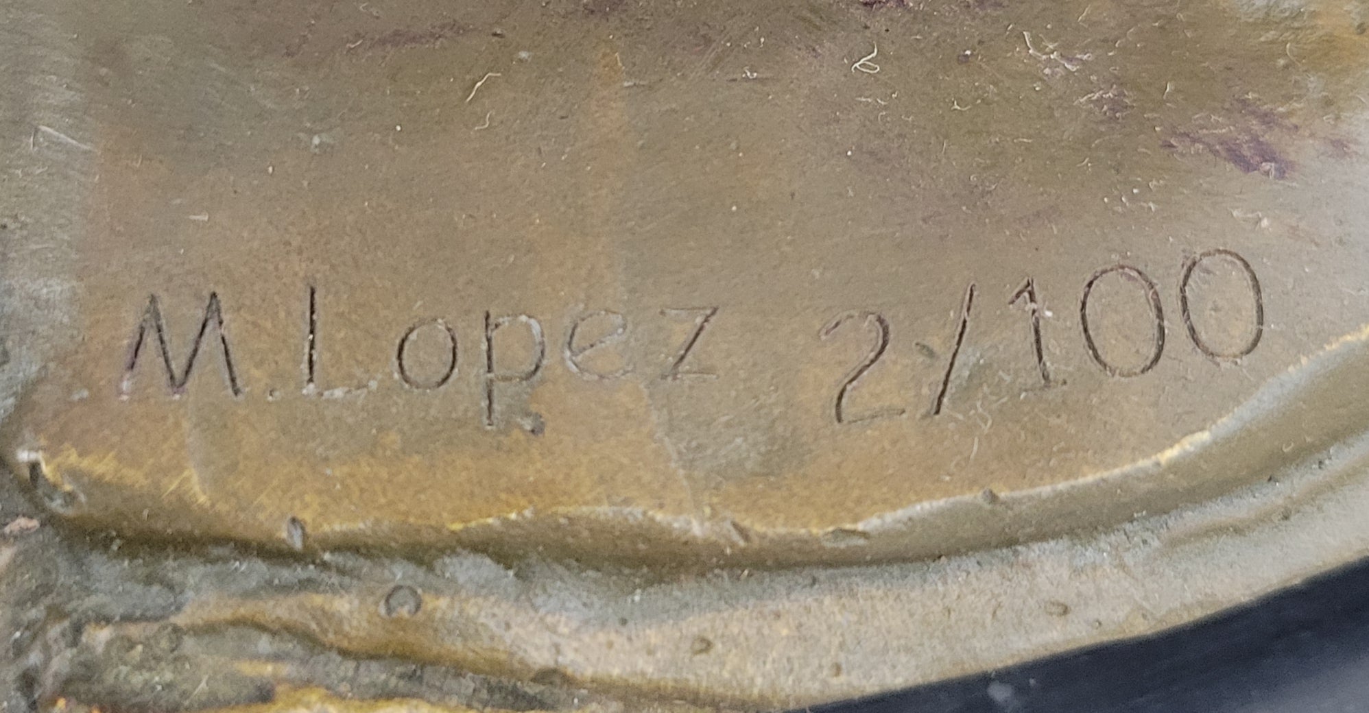 This Limited Edition Bull and Bear bronze sculpture by Miguel Lopez also known as Milo is a striking representation of the financial market's eternal battle between optimism and pessimism. Symbolizing the ups and downs of the stock market, this dynamic piece captures the raw power and intensity of these two iconic financial figures.
