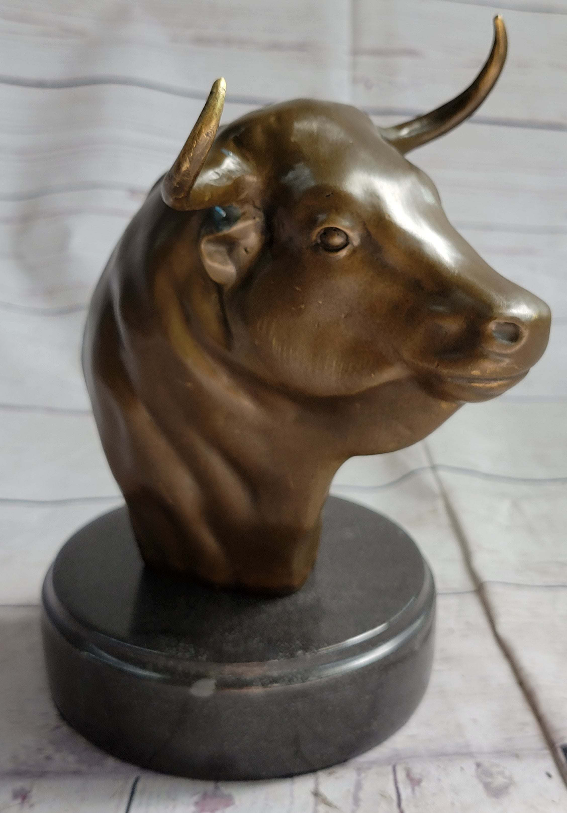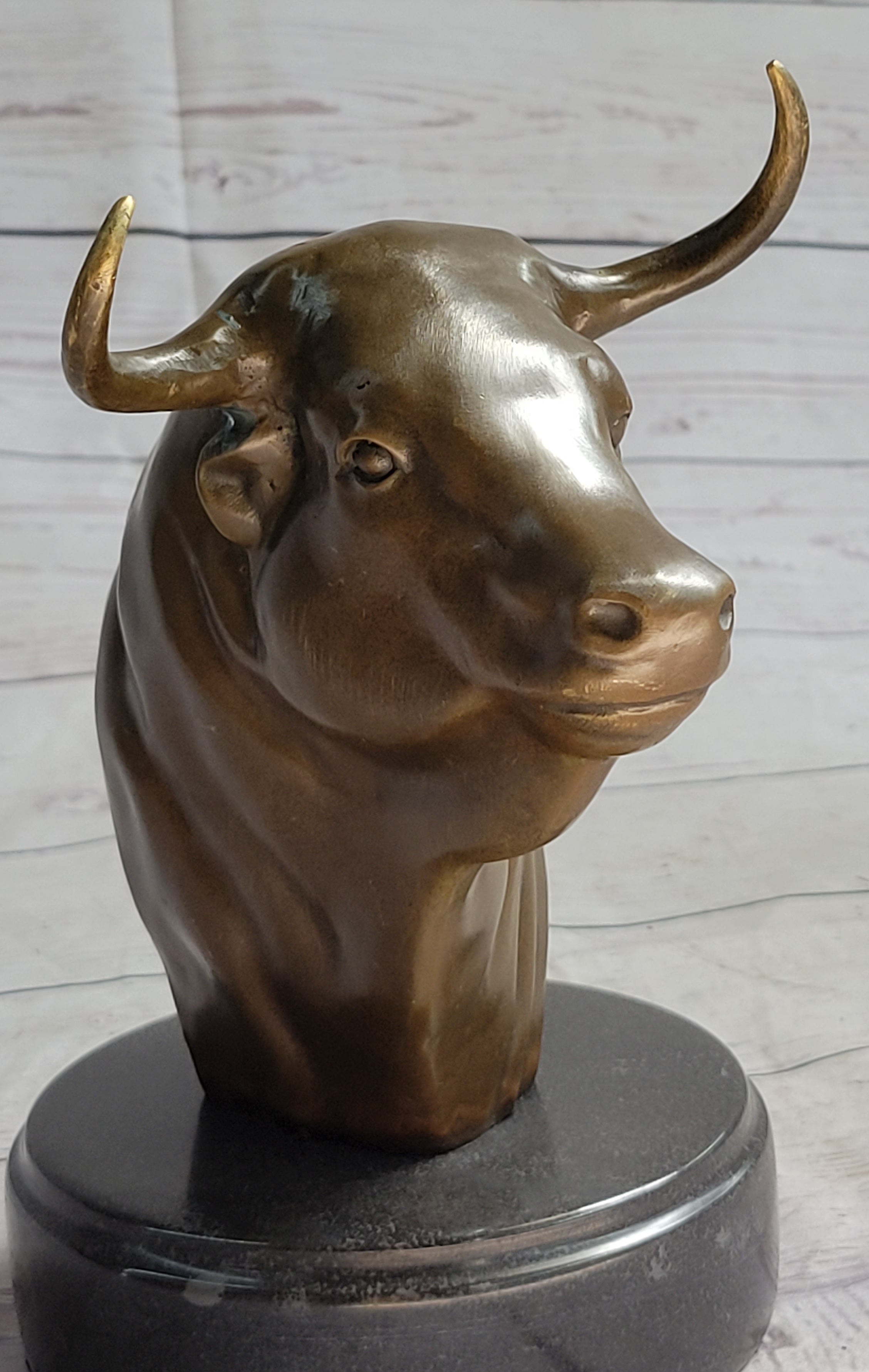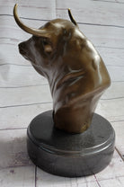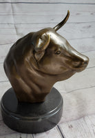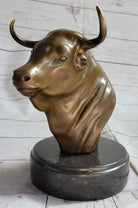 Bull Head Bronze Metal Bust Sculpture Statue Figure on Marble Base Signed Original 9" x 5.5"