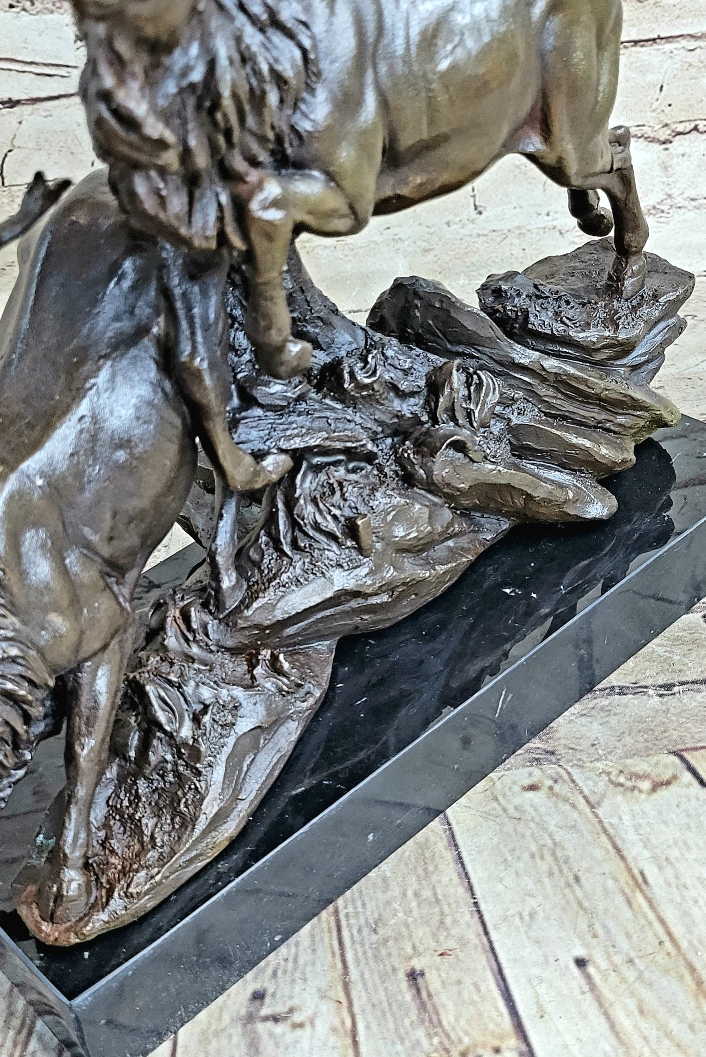Emblazoned with the signature of the esteemed sculptor Barye, this sculpture holds a place of honor among collections of animal art. It is a remarkable piece that resonates with collectors of animal sculptures and admirers of Barye's unique talent. Like all the offerings in our collection, this sculpture is meticulously hand-crafted in our own foundry, subject to rigorous quality inspections throughout the fabrication process. Utilizing the lost-wax casting technique, each sculpture is a labor of love, ensuring quality and unmatched artistry.Bronze Dimensions with Marble Base: Height 12" X Width 15"