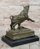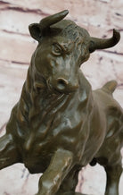 Charging Rearing Bull Bronze Sculpture on Marble Base Signed Milo