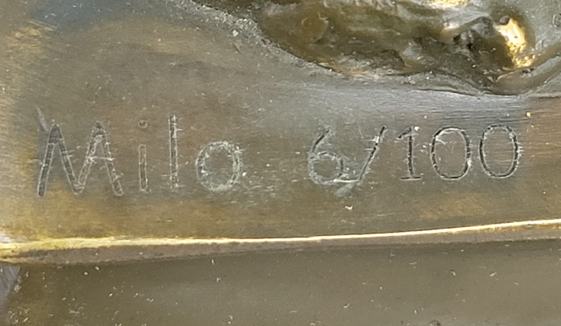 Signed and numbered by the artist Milo, this original bronze artwork is ideal for collectors, investors, and enthusiasts of fine art and financial symbolism, making it a perfect gift for business professionals, stock market traders, and lovers of powerful animal sculptures.Bronze Dimensions with Marble Base: Height 10" X Width 9"