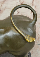 Crafted entirely from genuine bronze using the lost wax method, this sculpture showcases exceptional artistry and attention to detail. The two-tone brown patina enhances the bull’s contours and musculature, bringing a lifelike presence to the piece. The surface finish not only adds visual depth but also preserves the sculpture for generations.