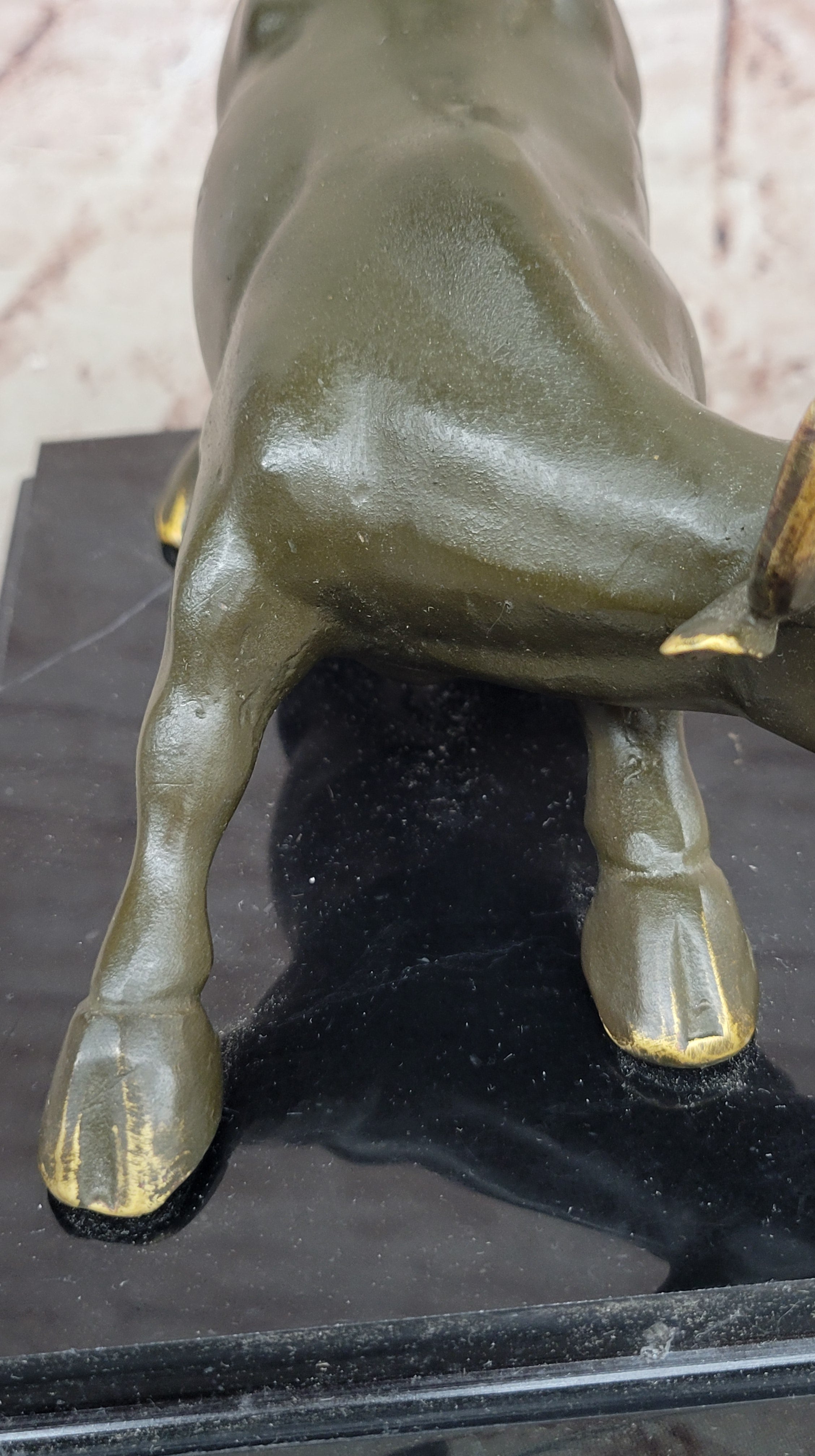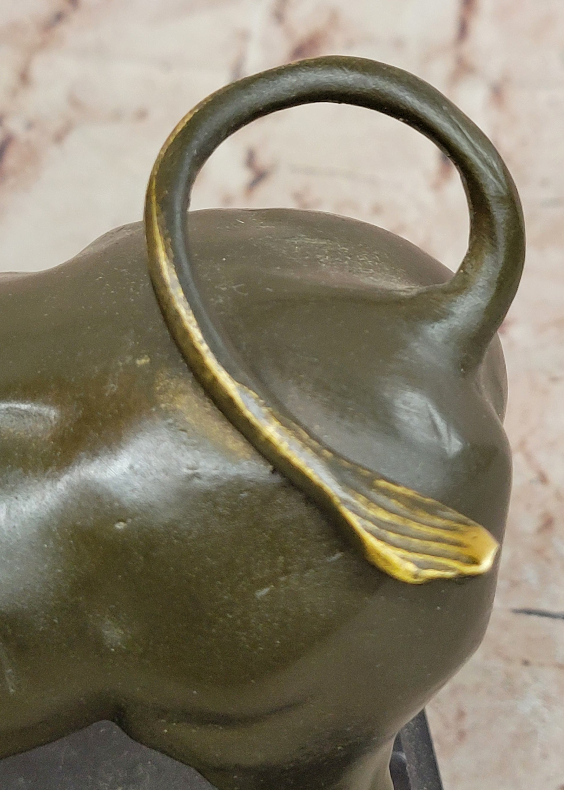 Signed by the renowned artist Milo, the statue is securely mounted on a solid black marble base, adding elegance and stability. This powerful figurine makes an inspiring addition to any office, home, or investment space, symbolizing resilience, prosperity, and the enduring spirit of ambition.Bronze Dimensions with Marble Base: Height 7" X Width 8"