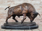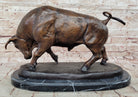 Charging Bull Bronze Statue Sculpture Lost Wax Casting Marble Base Moigniez 11" x 17"