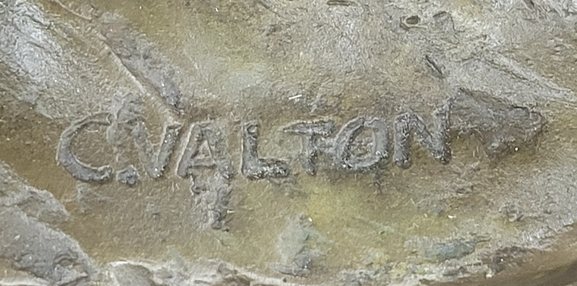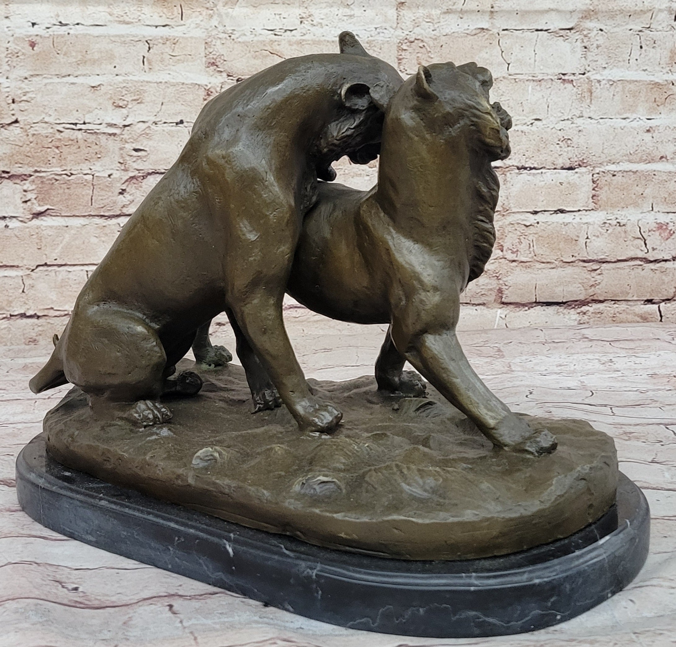 Experience the artistry of Charles Valton with this signed masterpiece titled "Preludes to Love." Crafted with precision, the Genuine Solid Bronze sculpture captures the essence of two Mountain Lions in a timeless display. Poised on an oval black marble base, the sculpture emanates elegance and sophistication. Meticulously handcrafted using the lost wax method, also referred to as hot cast, this sculpture showcases the dedication to detail and craftsmanship. The rich brown patina enhances the texture and depth of the bronze, adding warmth to the captivating scene created by Valton. Each piece is signed, ensuring its quality and adding a personal touch to this extraordinary work of art. Elevate your space with this exquisite bronze sculpture, a testament to Charles Valton's skill and the enduring allure of wildlife art. Whether displayed in a curated art collection or as a standalone piece, "Preludes to Love" invites admiration for its beauty and the mastery of the lost wax method, making it a cherished addition to any connoisseur's repertoire.