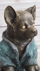 Chihuahua Puppy Dog Wearing Blue Sweater Bronze Metal Figurine Sculpture Decor