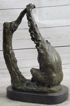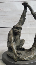 Chimpanzee Ape Chimp Gorilla Monkey Bronze Sculpture Statue Figure Marble Base