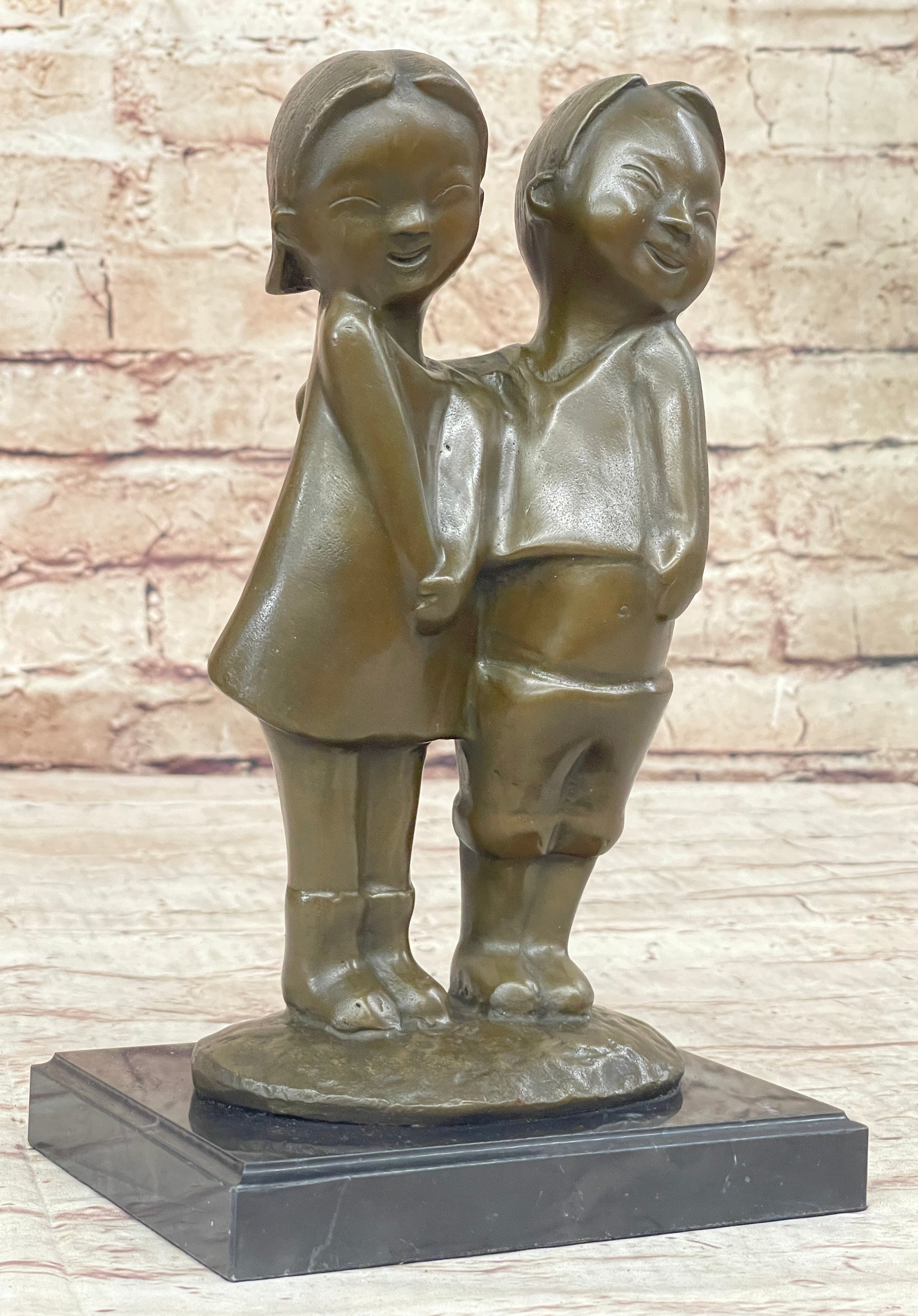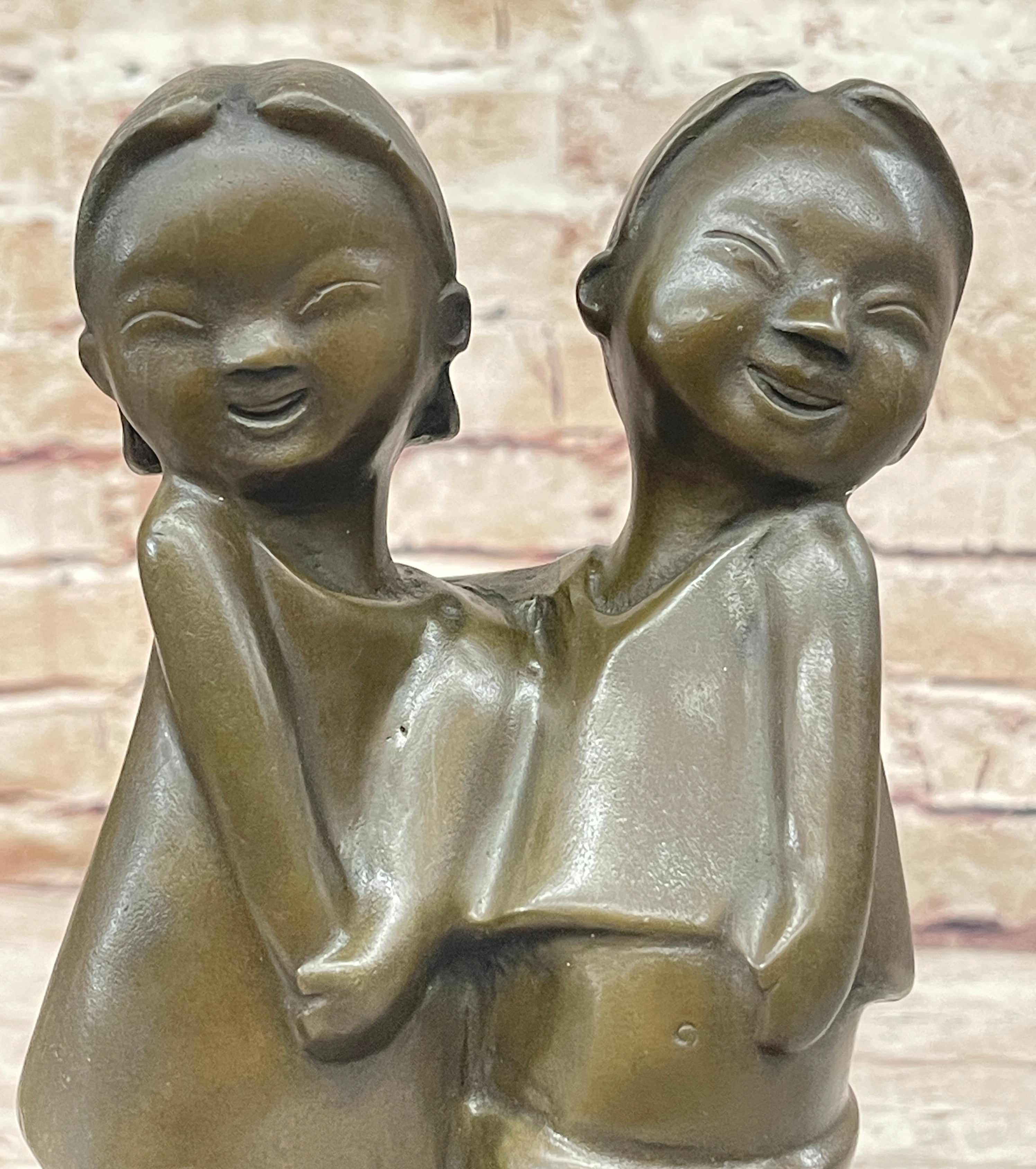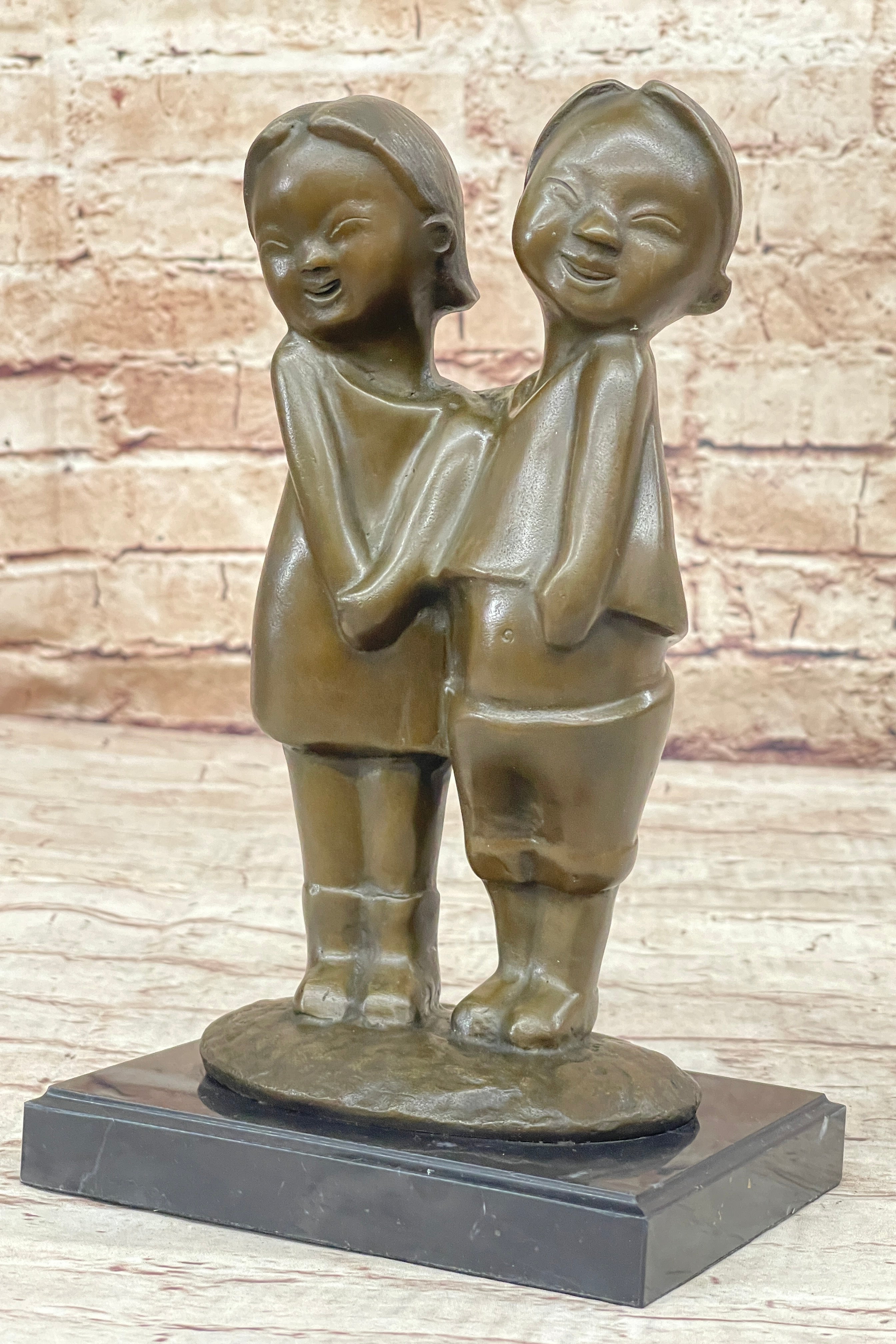 This endearing figurine showcases the innocence and playfulness of children, making it a perfect addition to any home or art collection. The expressive smiles on their faces exude happiness and warmth, bringing a touch of joy and serenity to any space. The bronze material ensures the longevity of this exquisite piece, allowing you to cherish the cherished memories it represents for years to come.