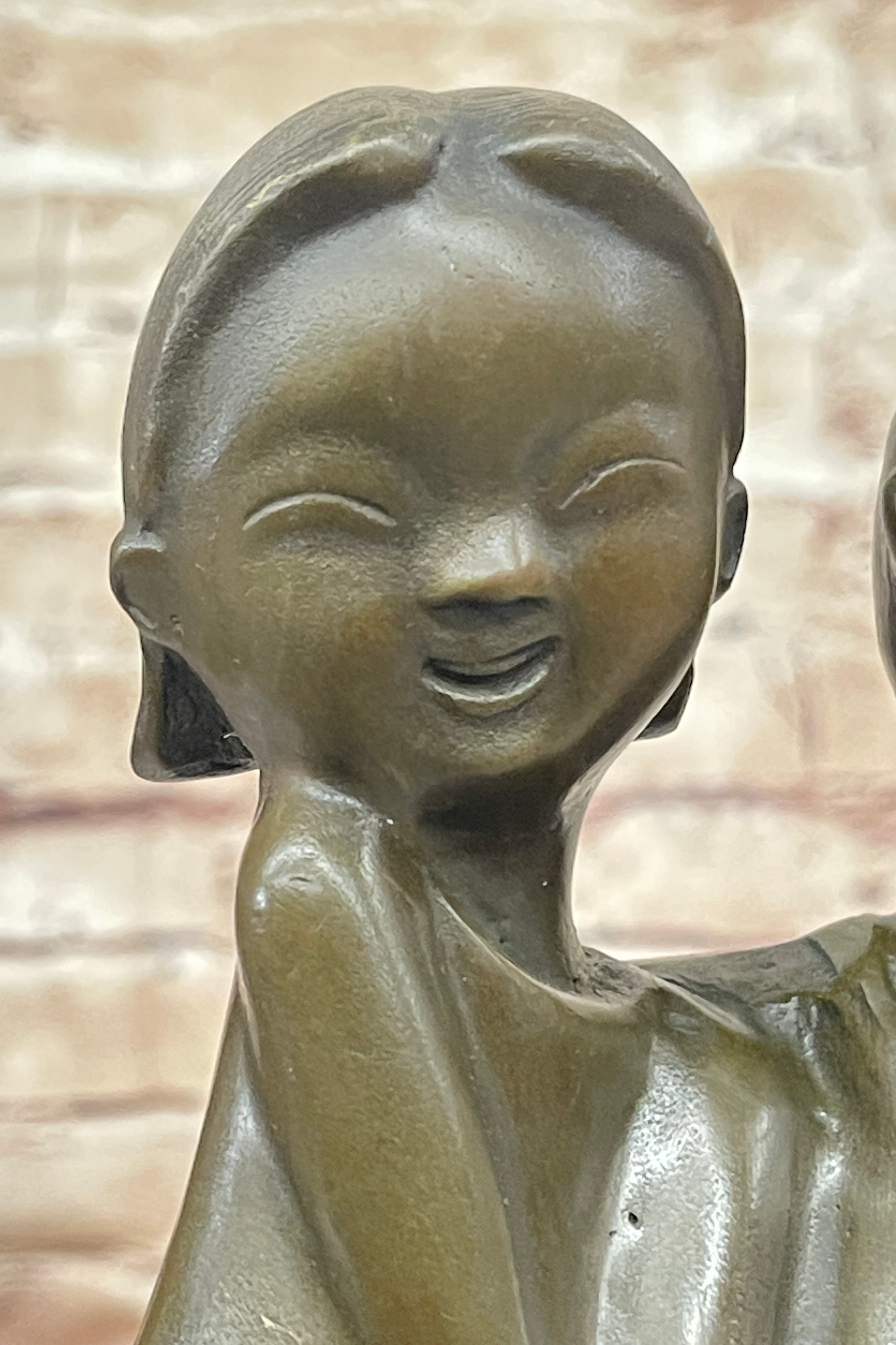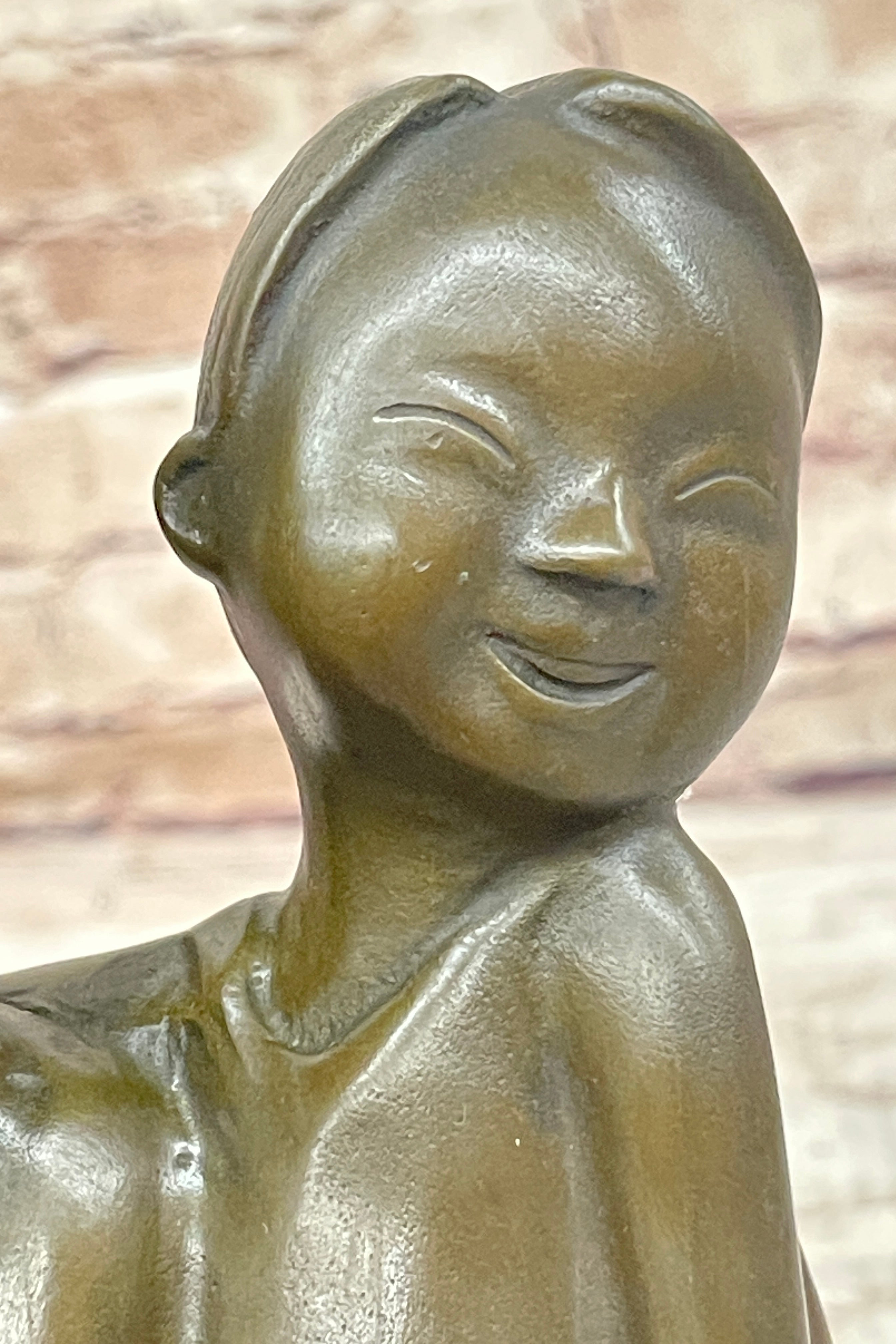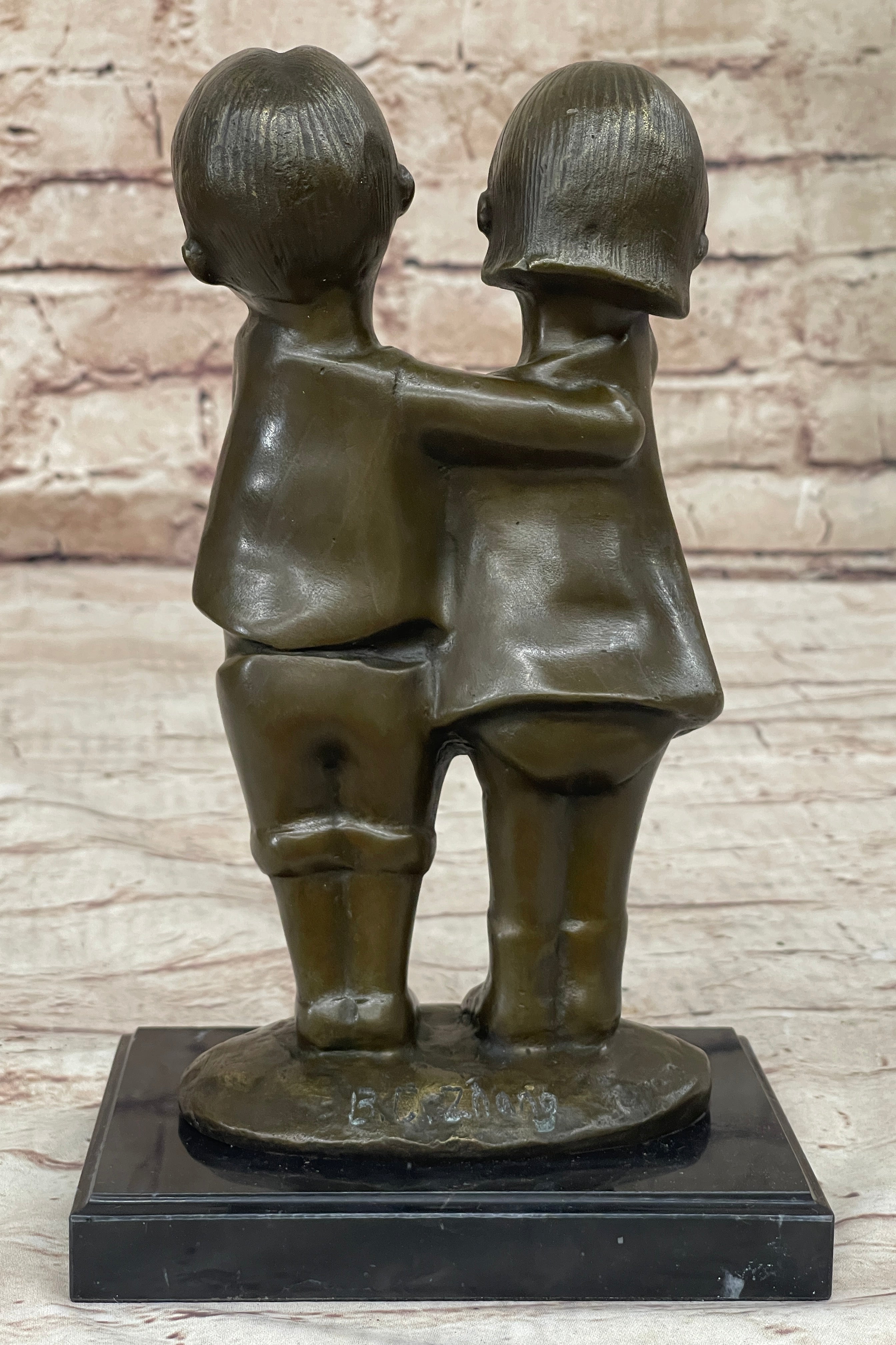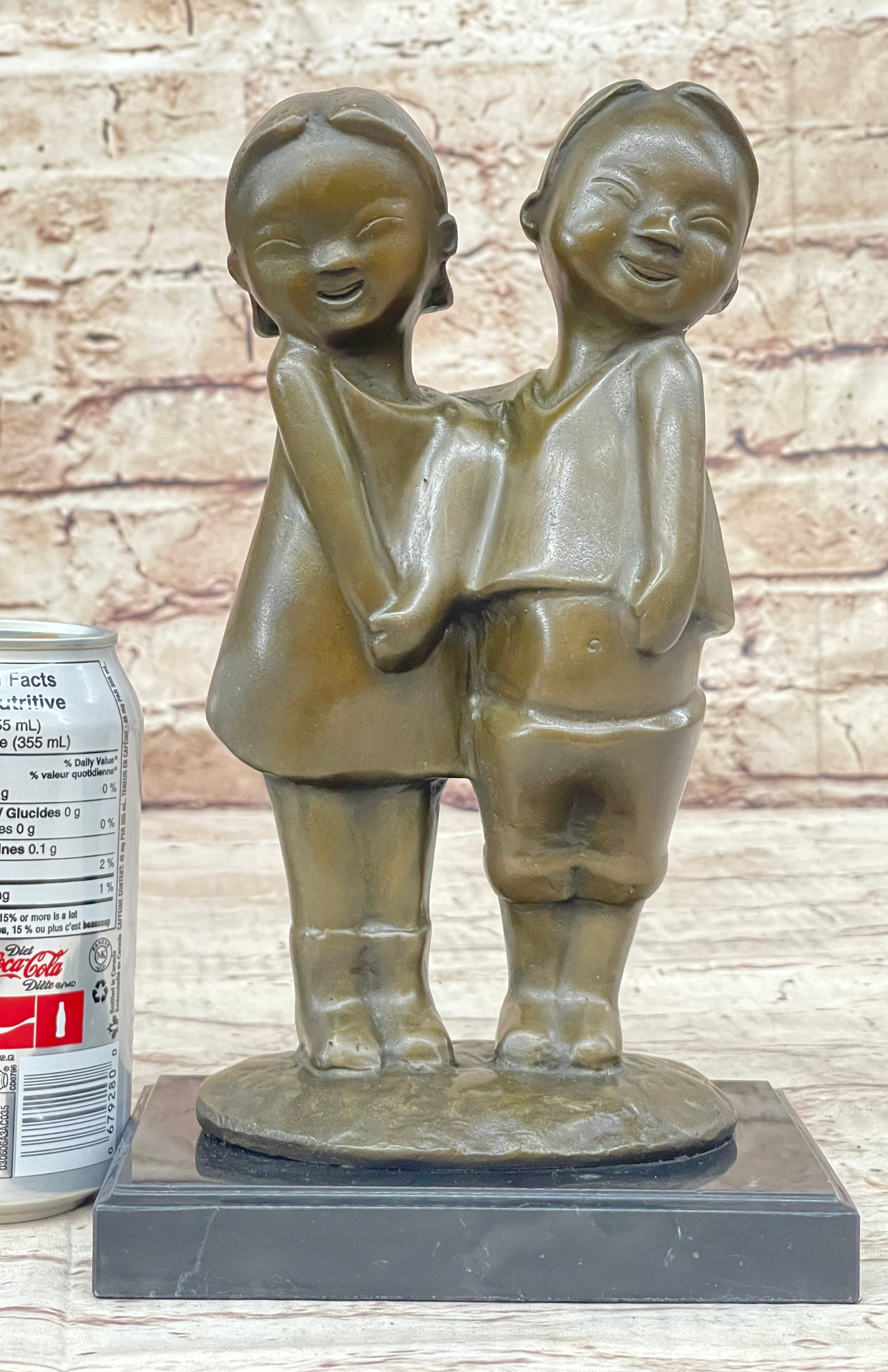 This endearing figurine showcases the innocence and playfulness of children, making it a perfect addition to any home or art collection. The expressive smiles on their faces exude happiness and warmth, bringing a touch of joy and serenity to any space. The bronze material ensures the longevity of this exquisite piece, allowing you to cherish the cherished memories it represents for years to come.