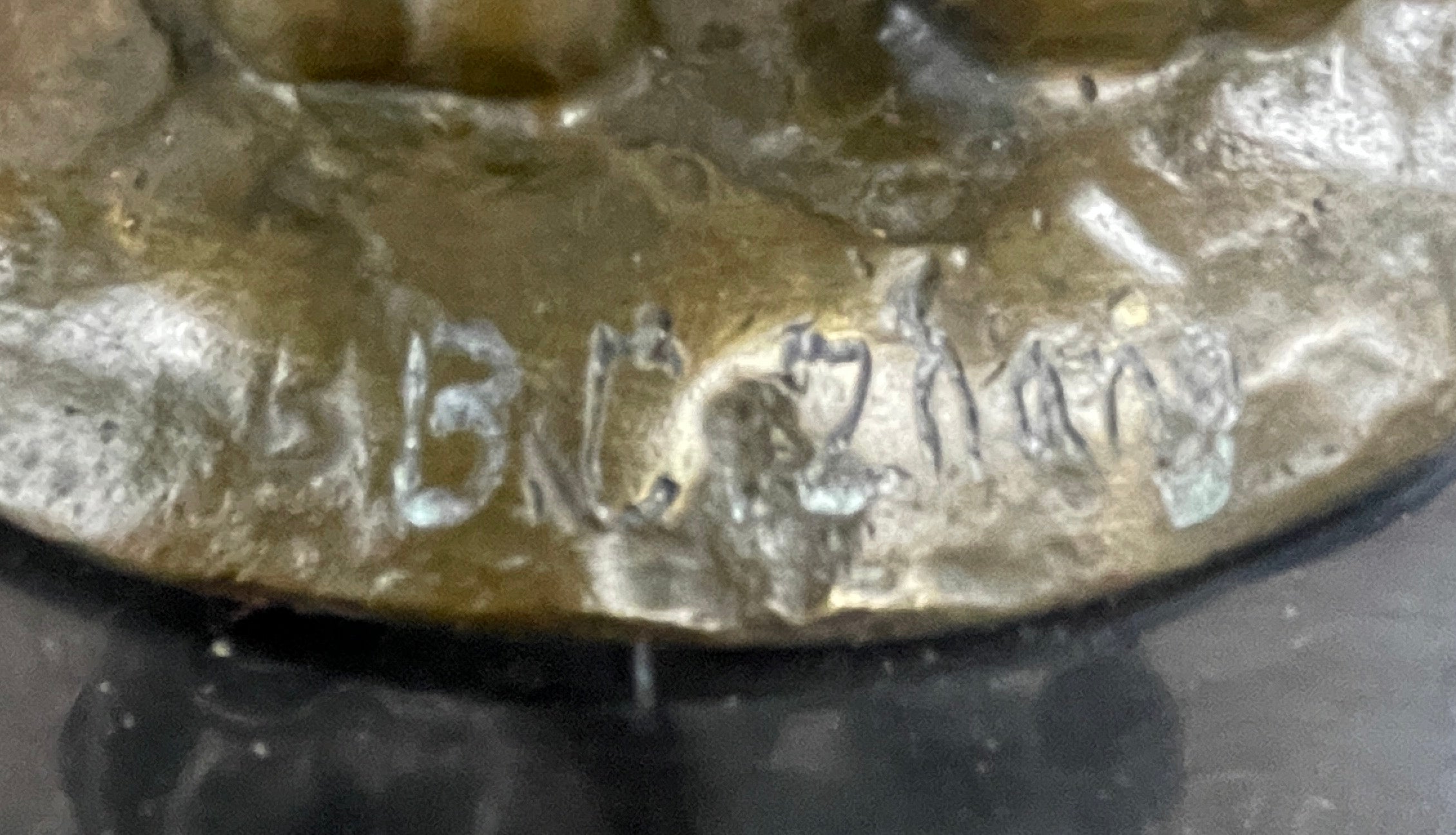 Celebrate the essence of family and the beauty of childhood with this heartfelt bronze sculpture. Whether displayed on a mantle, shelf, or as a centerpiece, this hand-made statue of Oriental children will be a delightful conversation starter and a cherished heirloom for generations to come. Embrace the emotional connection depicted in this artwork and bring a touch of cultural richness and love to your living space with this exceptional piece by B.C. Zhang.Bronze Dimensions with Marble Base: Height 9.5" X Width 5.5"