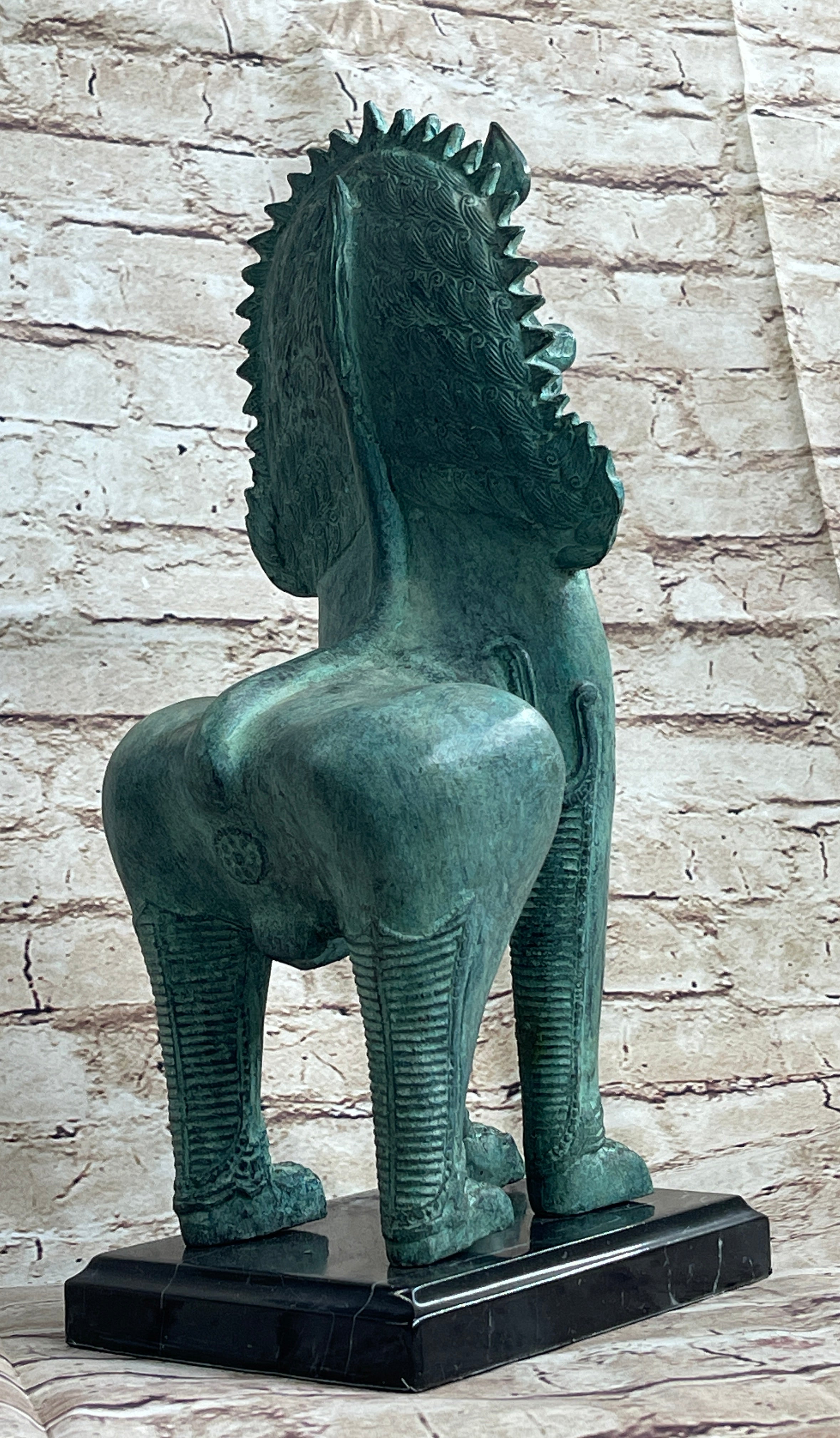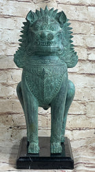 Chinese Foo Dog Guardian Lion Bronze Sculpture Statue Signed Handmade Art 13" x 6"