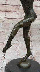 his stunning bronze Art Deco dancer sculpture captures the elegance and energy of movement with remarkable detail. The female dancer stands gracefully on one foot atop a smooth marble base, her arms extended outward in perfect balance. Every curve of her form exudes grace and rhythm, celebrating the timeless artistry of dance.