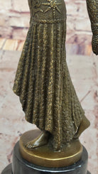 Chiparus Art Deco Bronze Dancer Sculpture – Elegant Figurine with Detailed Gown on Marble Base