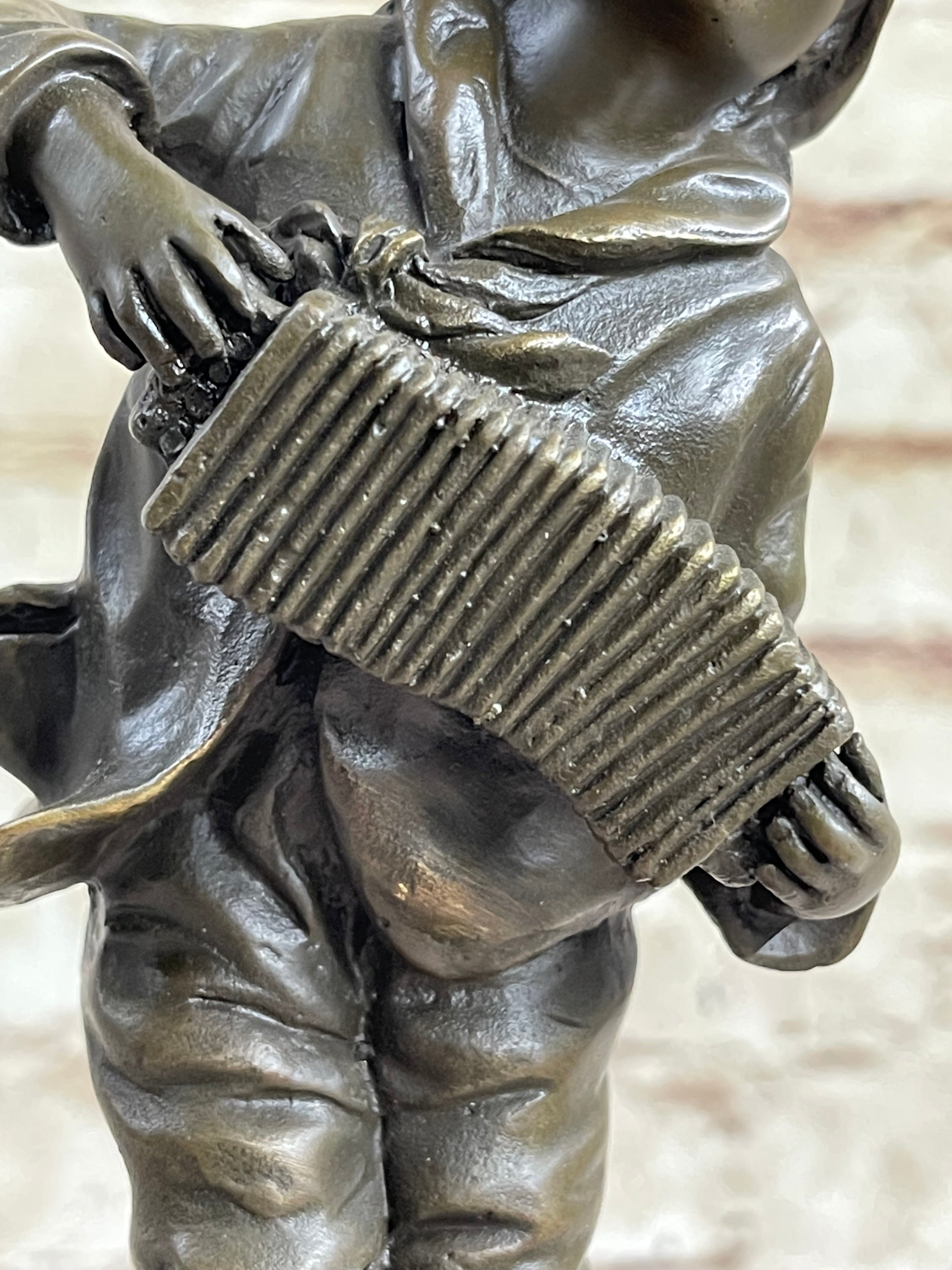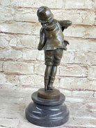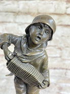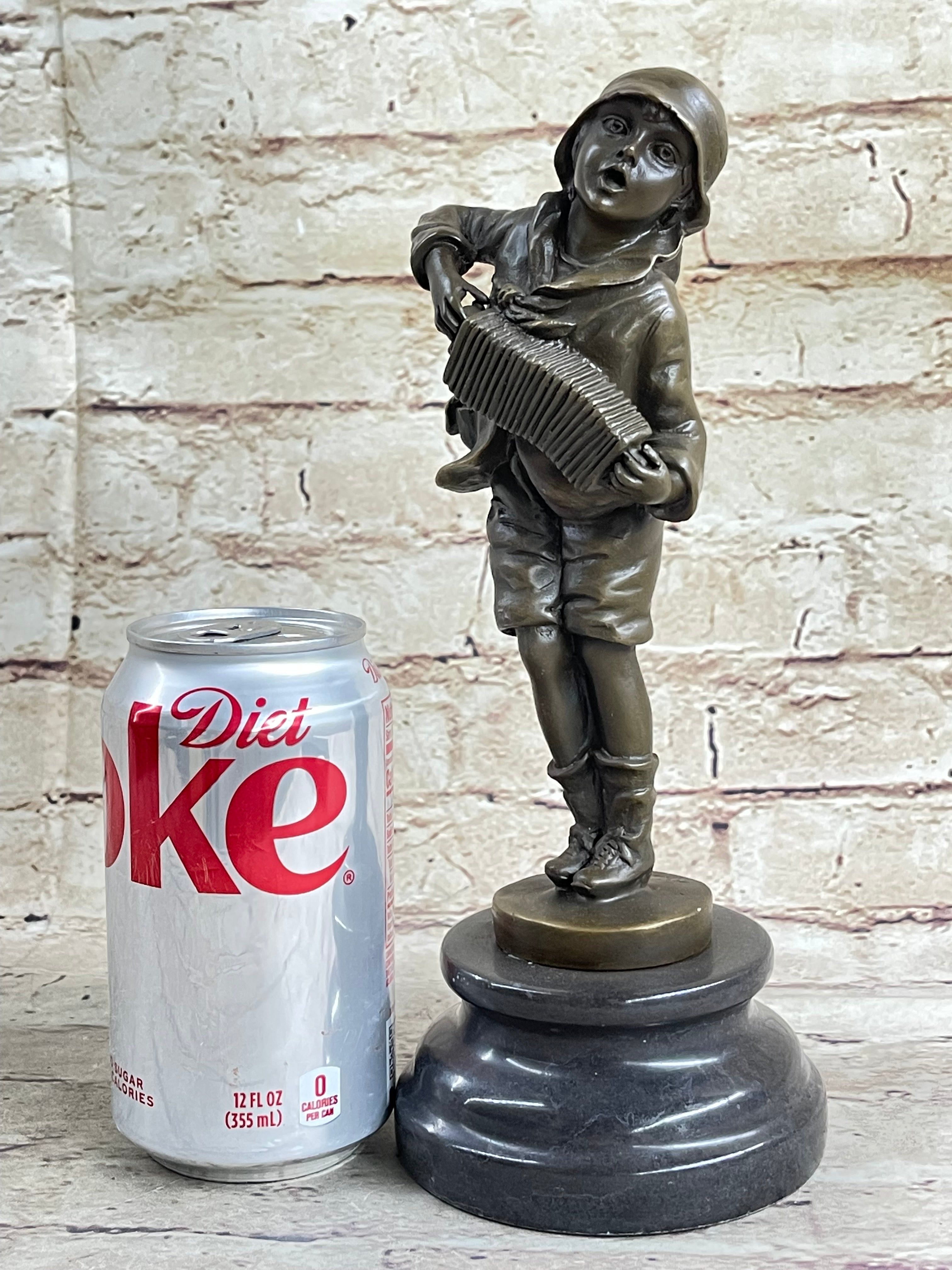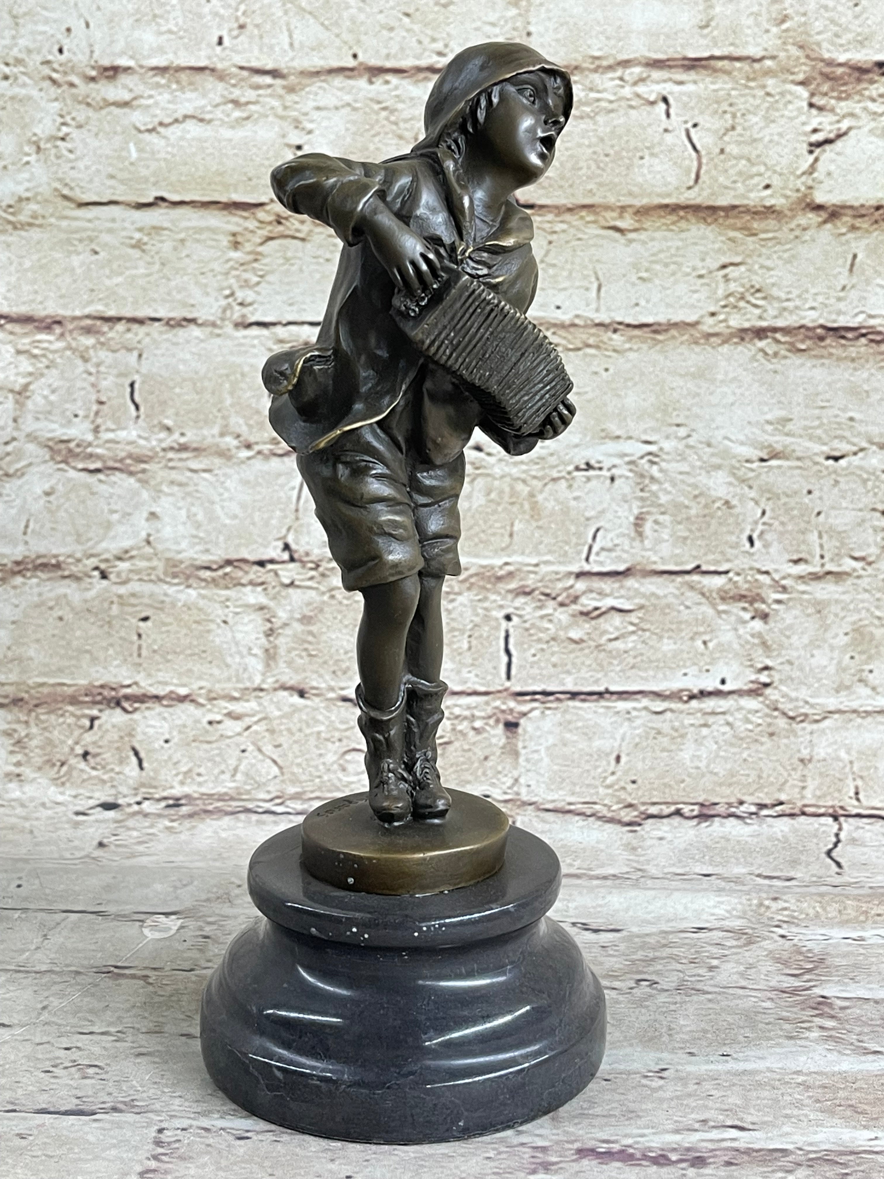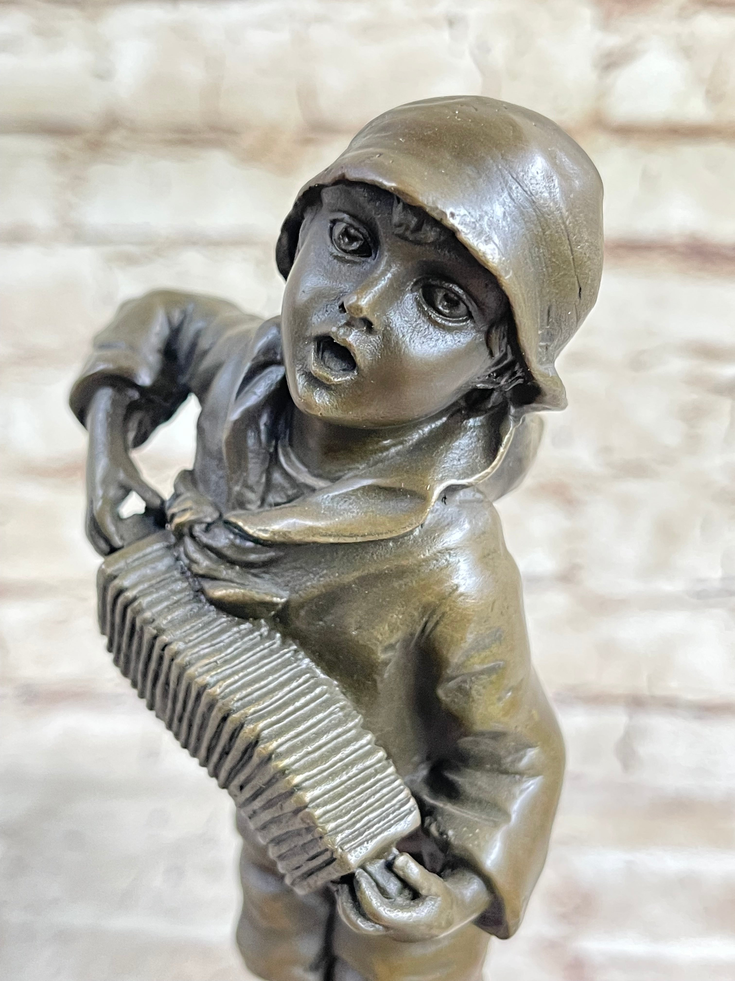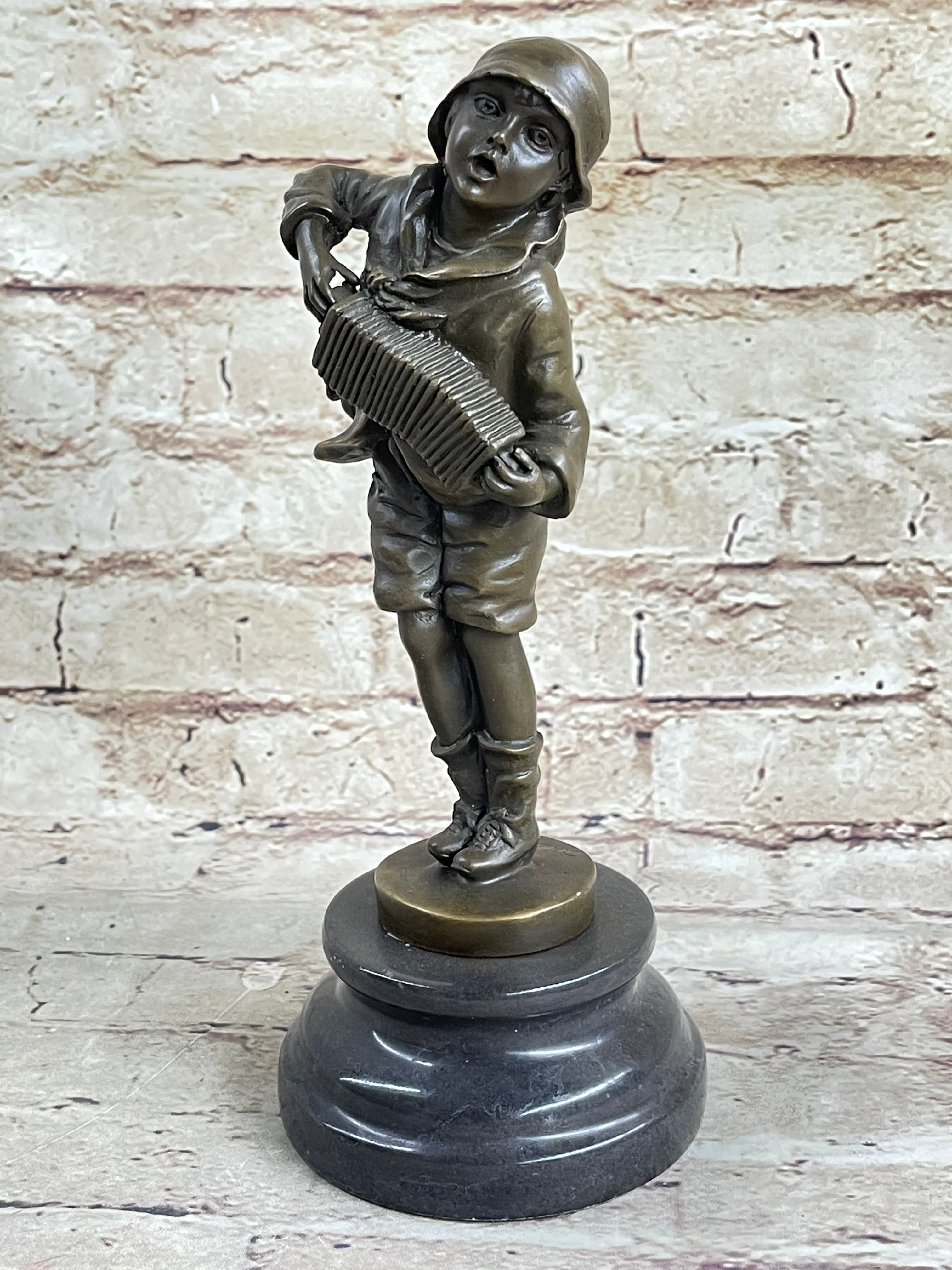 Child Boy Playing Accordion Bronze Statue Sculpture Figure 10" x 4"