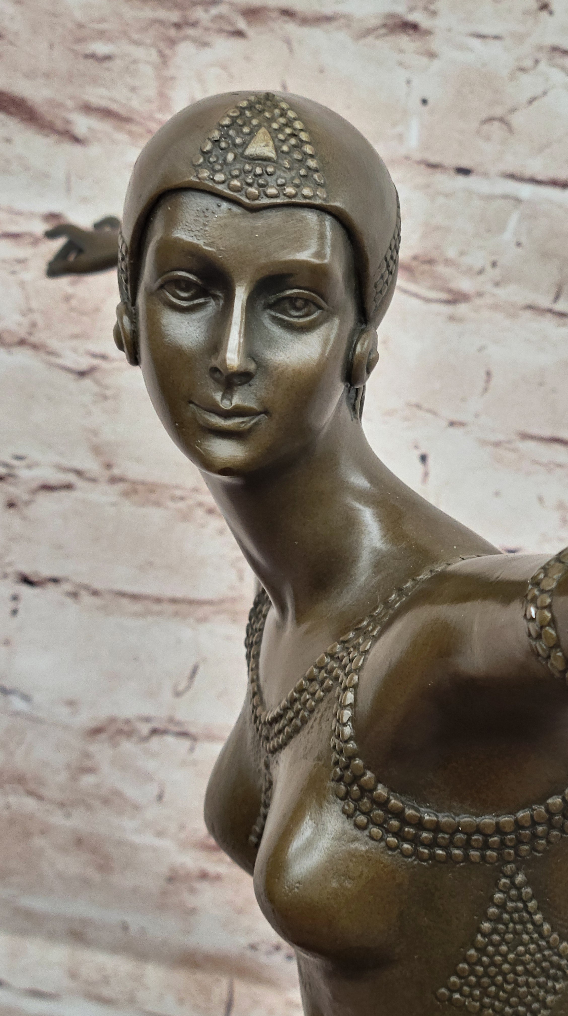 The sculpture bears the signature of Chiparus at its base, attesting to its quality and reverence for the original design. Cast in Europe using the renowned "Lost Wax Method," this piece is a faithful recast of the original work. Its precise attention to detail is evident in the accurate positioning of the head, torso, and hands—elements often lost in poor reproductions that rely on artist renditions rather than original molds.