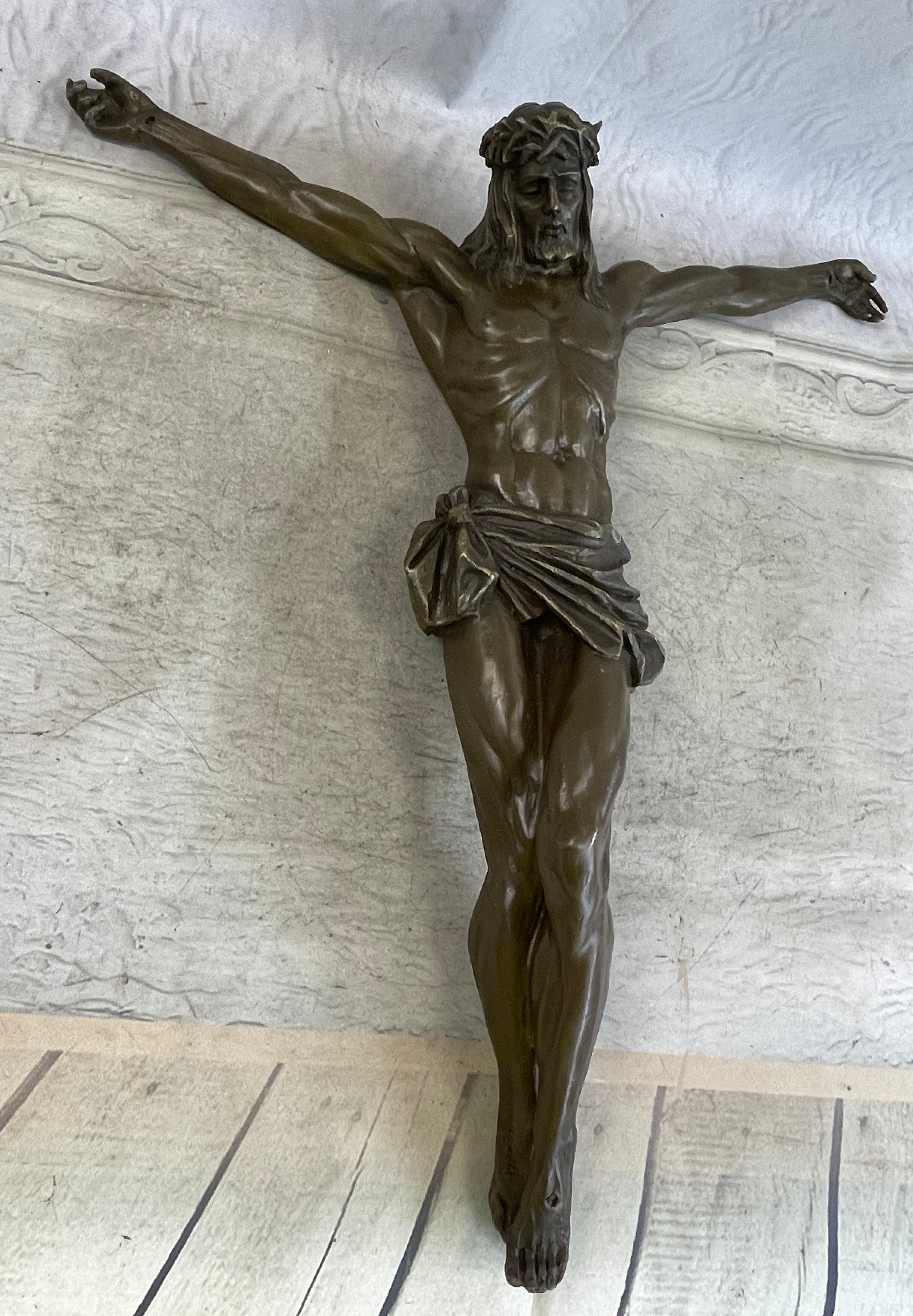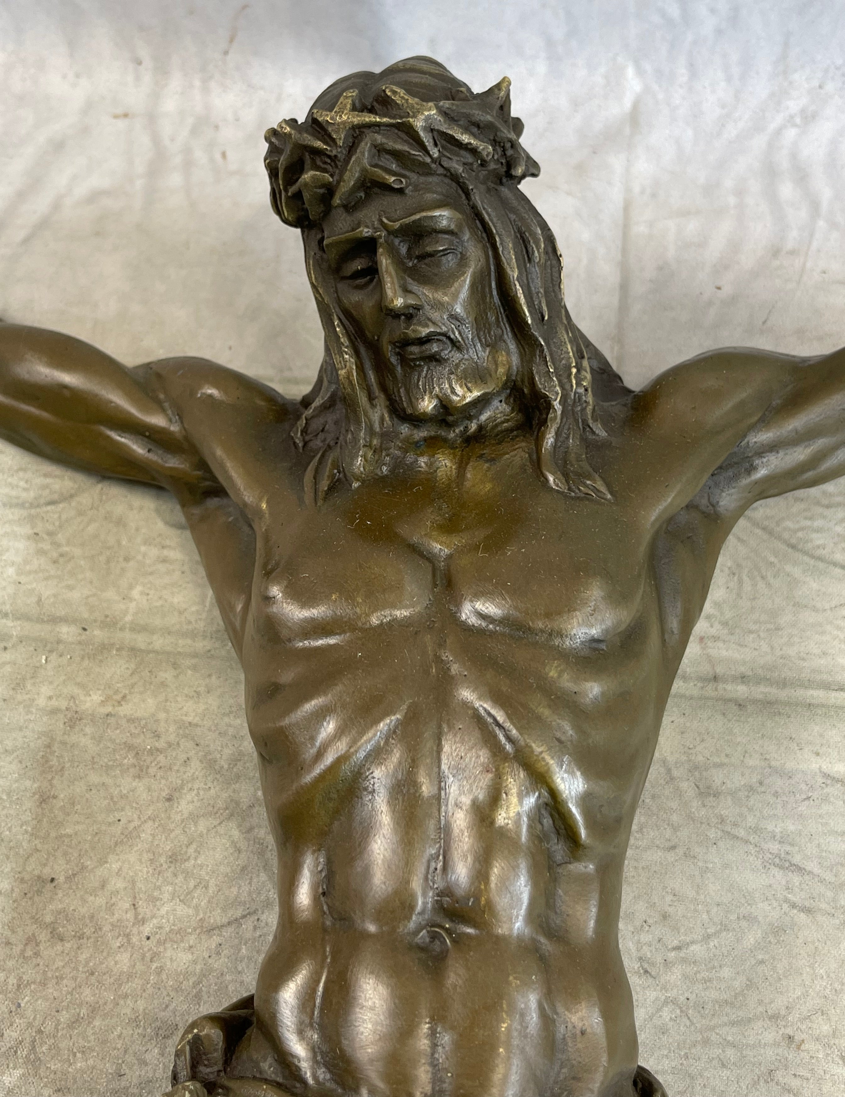 As a valuable addition to any collection, this bronze sculpture carries immense meaning and serves as a constant reminder of the profound sacrifice and unconditional love of Christ. Whether displayed in a personal sanctuary, sacred space, or as a focal point of admiration, it evokes a sense of reverence and invites a deeper connection to one's faith.