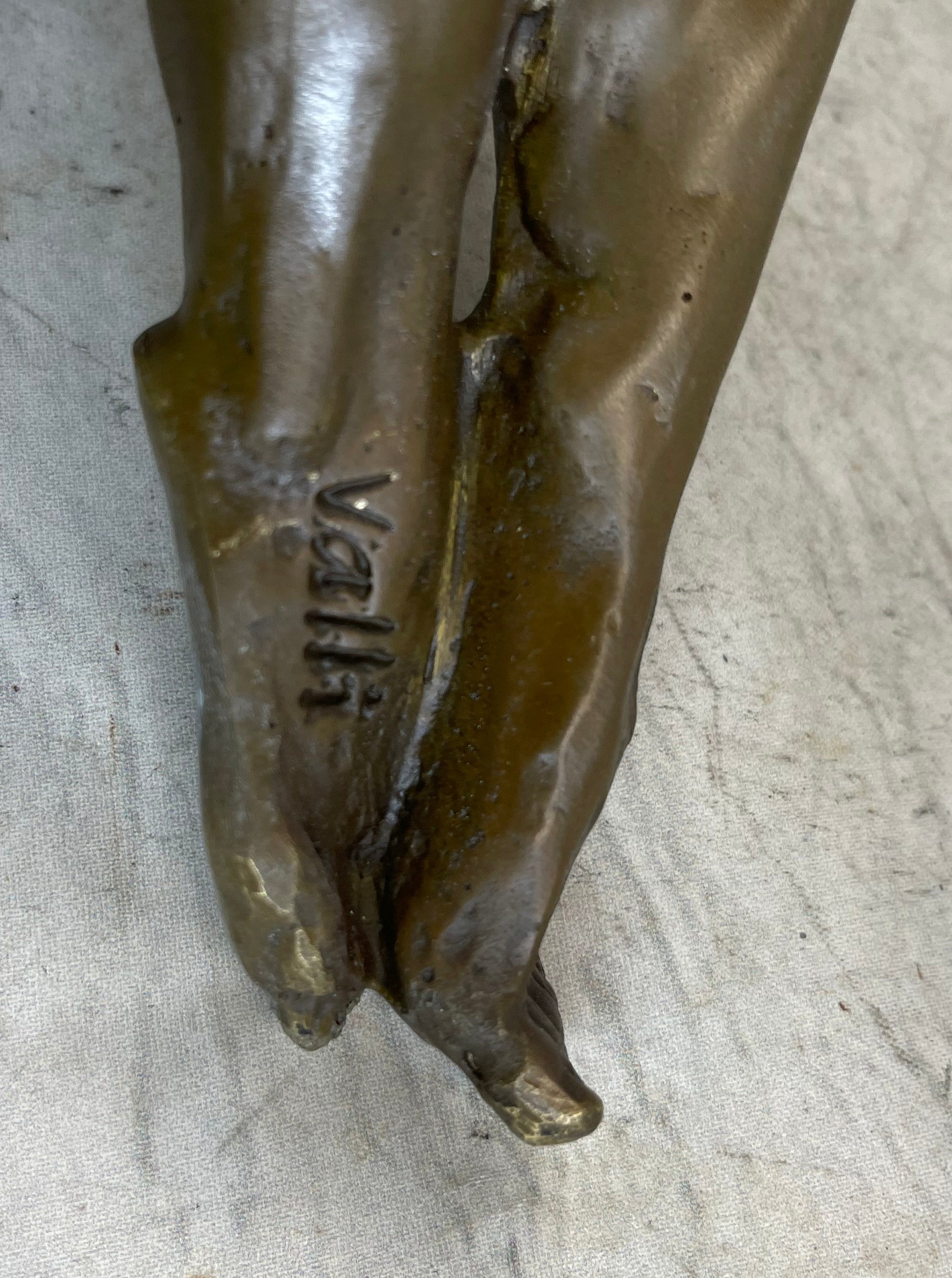 This extraordinary sculpture is signed by the talented artist Valli, a testament to the authenticity and artistic merit of the piece. Owning this sculpture not only brings beauty and elegance into your surroundings but also serves as a symbol of faith, grace, and the enduring power of redemption.