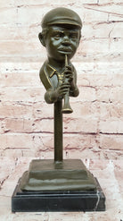 Clarinet Player Bronze Sculpture – Jazz Musician Figurine on Marble Base