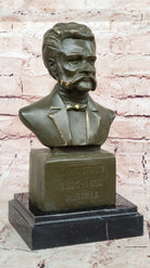 Set atop a polished black marble base, the statue is both sturdy and elegant, making it an ideal display piece for music lovers, art collectors, or anyone with an appreciation for European history. Whether placed in a study, library, or music room, this bronze bust serves as a striking focal point and a meaningful celebration of artistic legacy.Bronze Dimensions with Marble Base: Height 10" x Width 5.5"