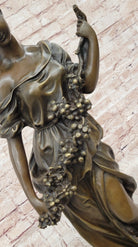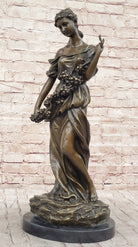 Classical Woman Harvesting Grapes Wine Bronze Sculpture Statue French Art Decor