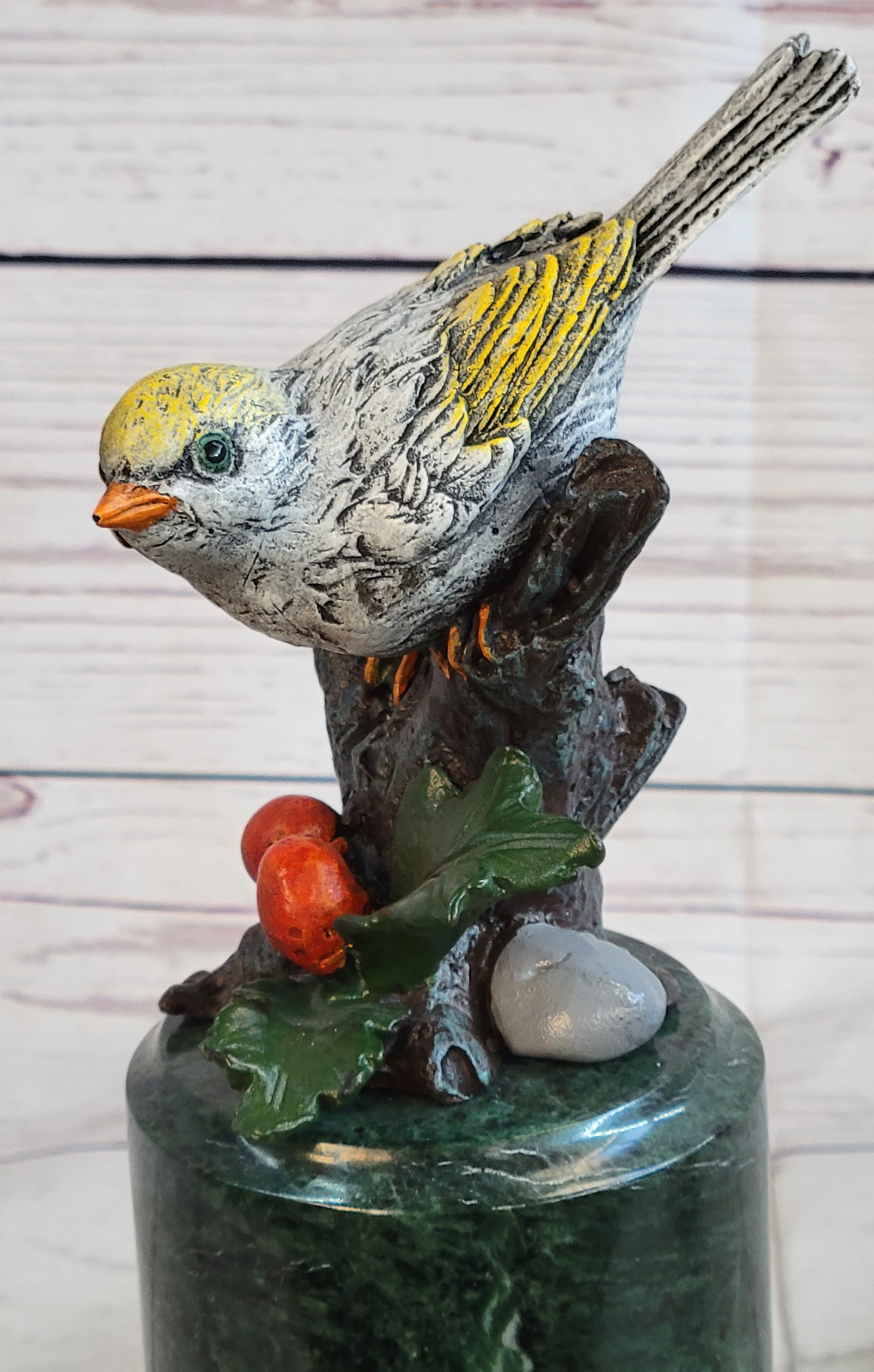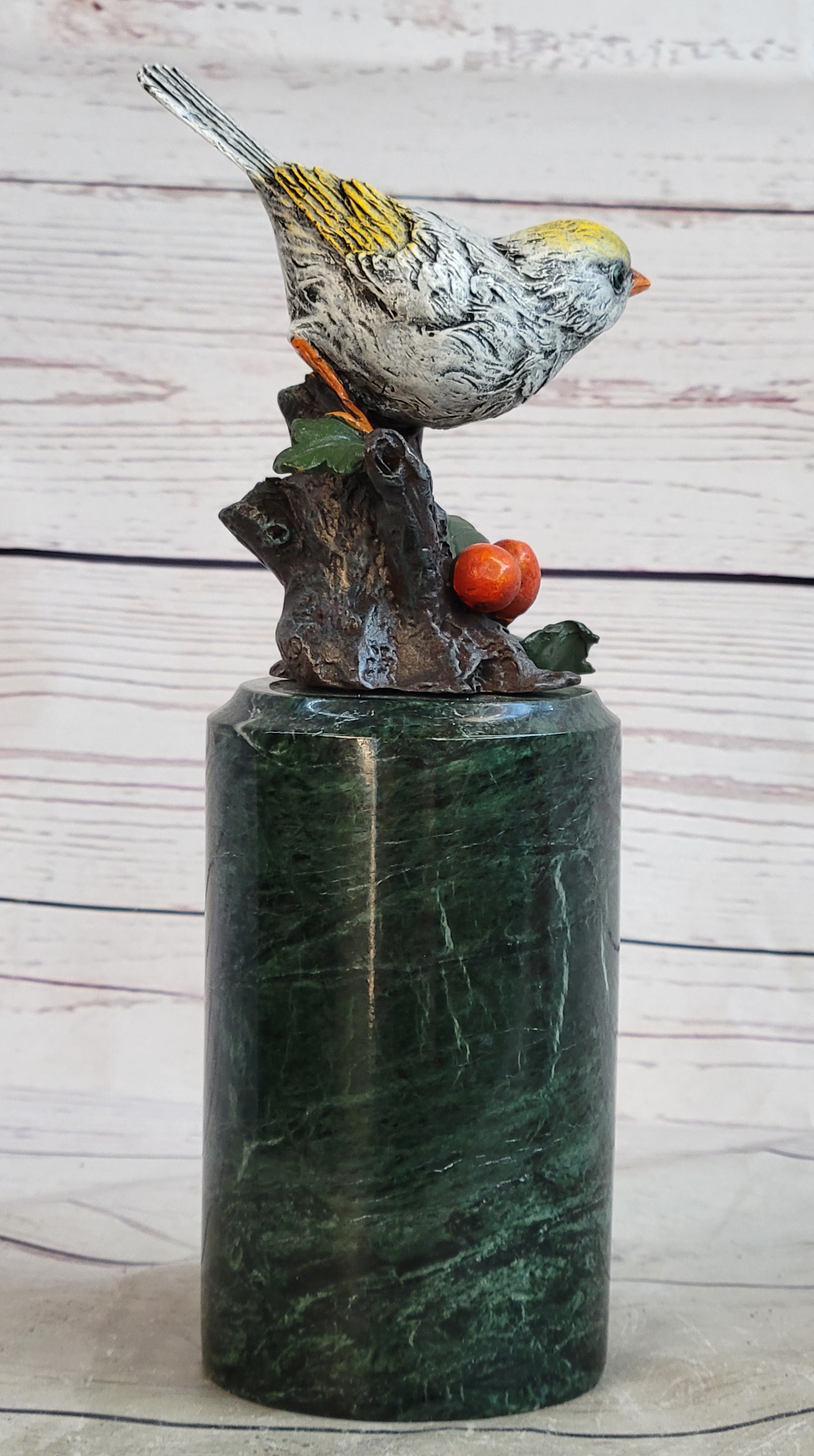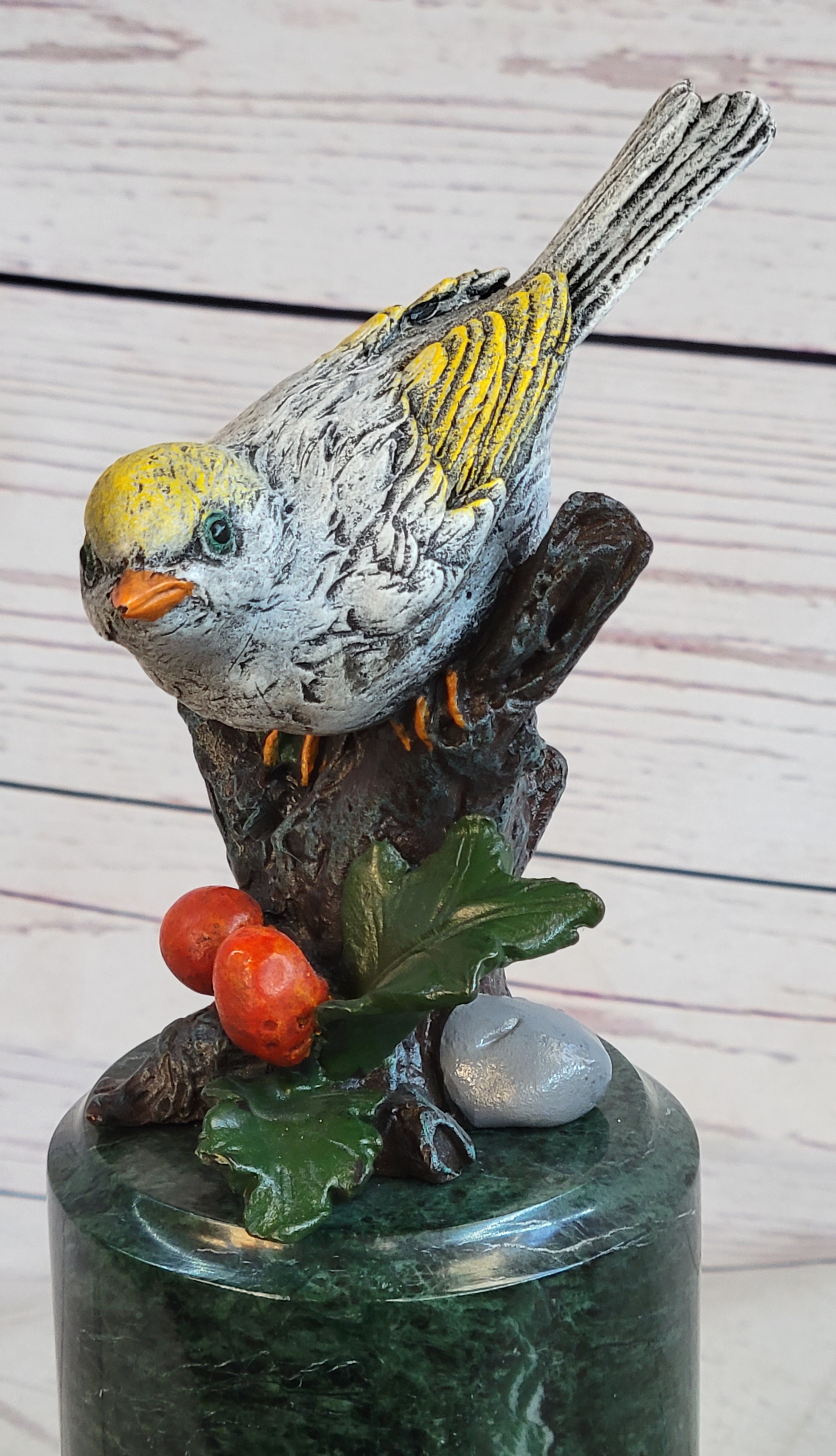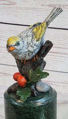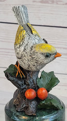 Colorful Finch Goldfinch Song Bird Bronze Metal Sculpture Statue Figure on Marble Base