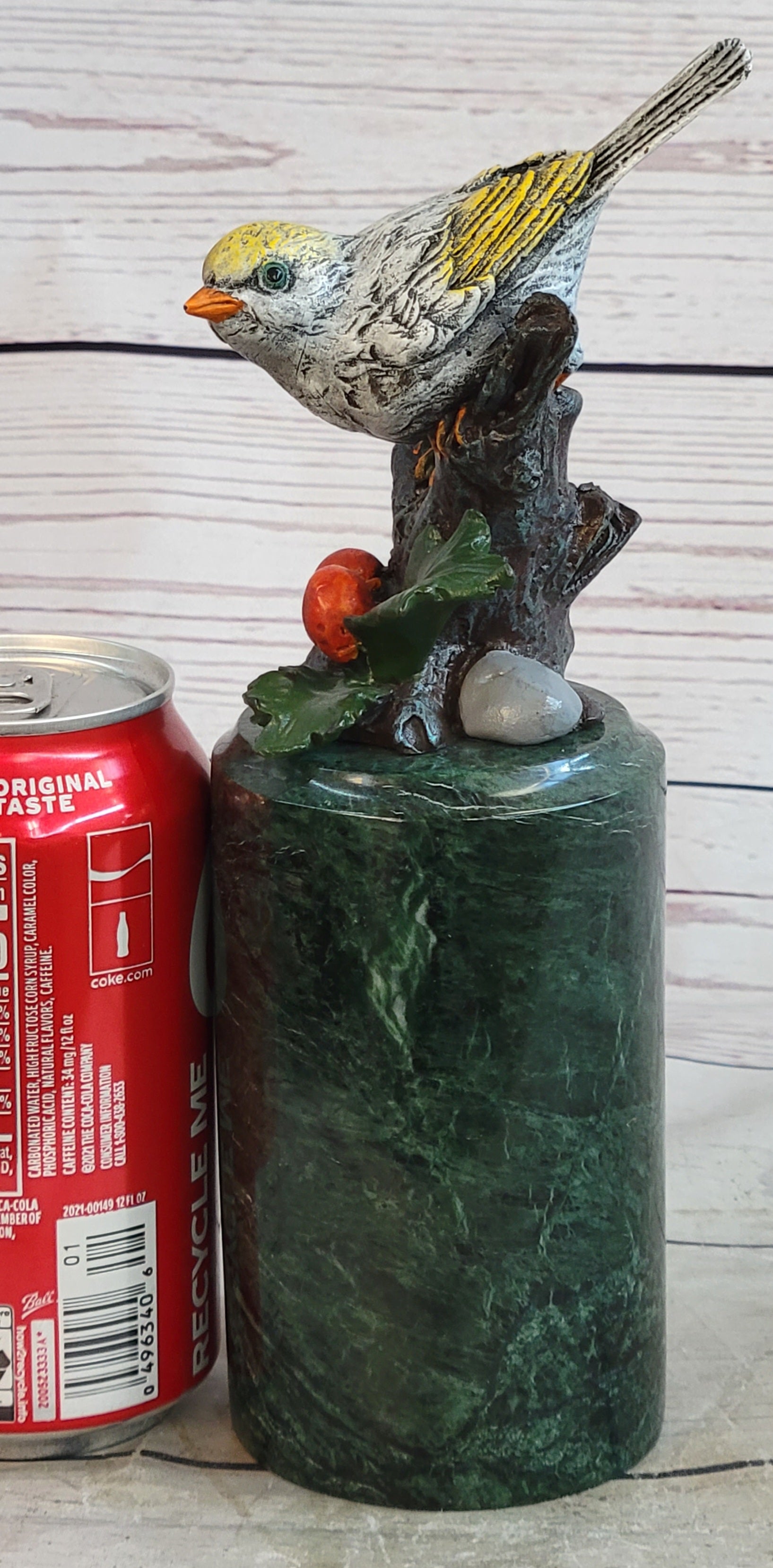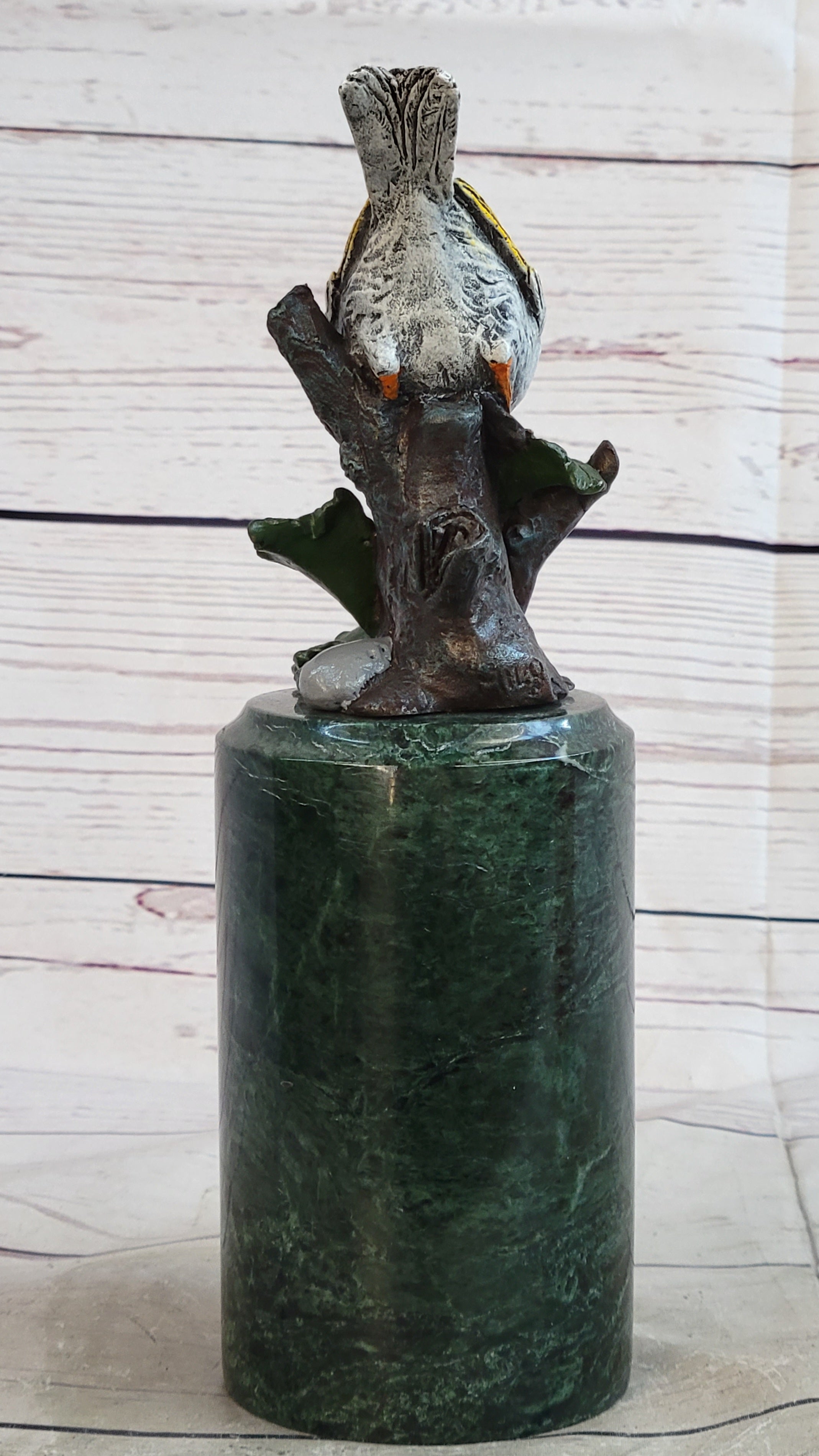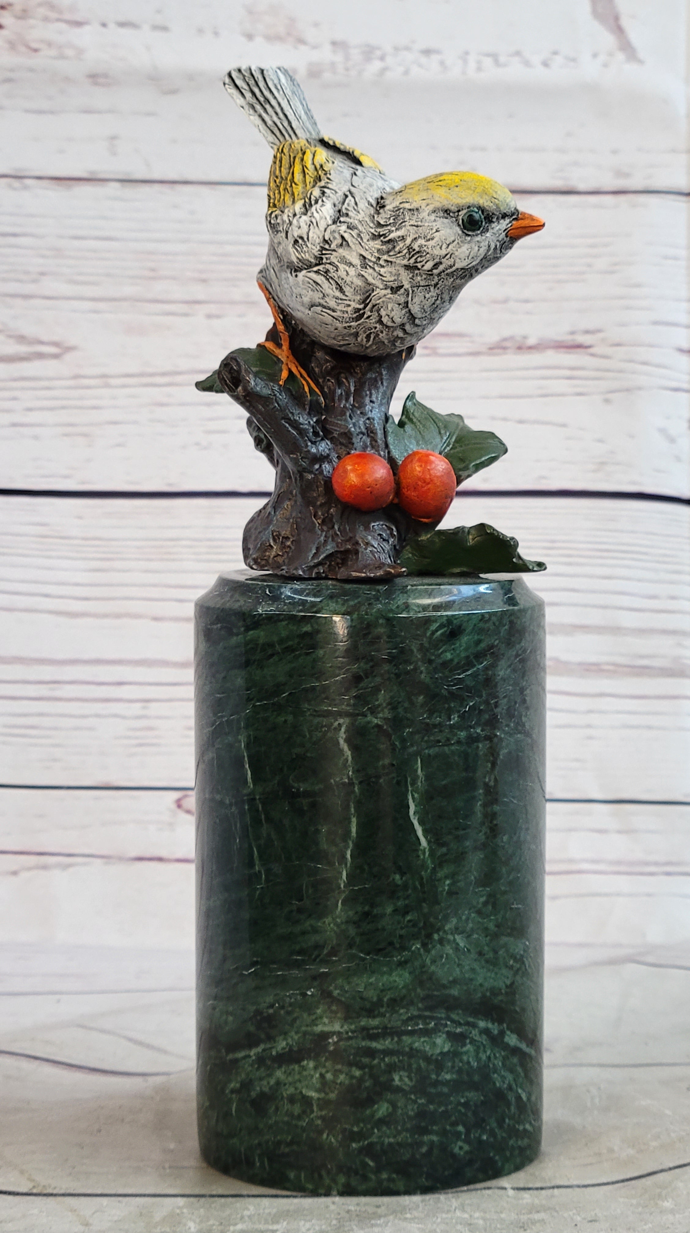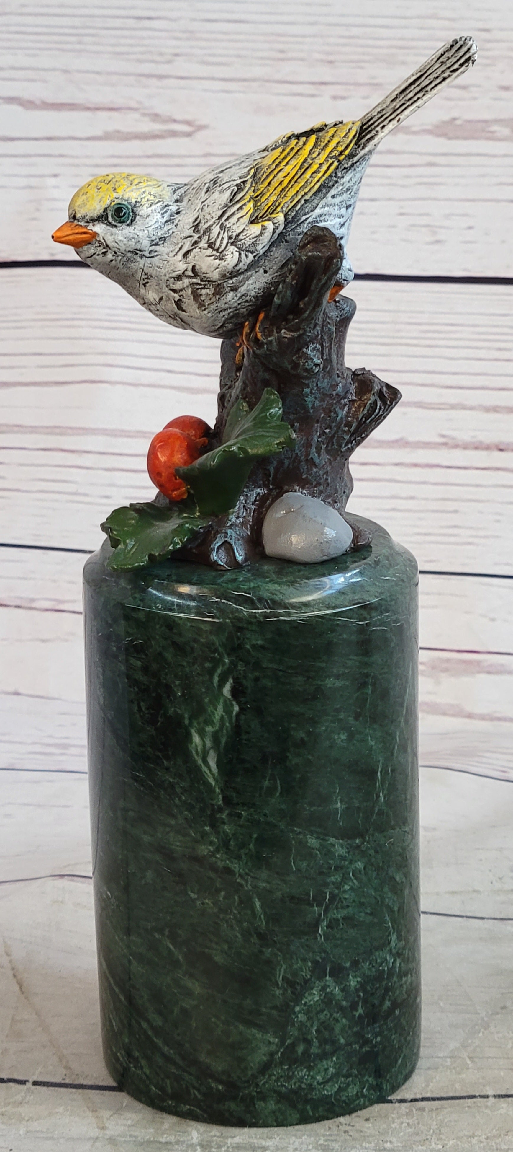 Colorful Finch Goldfinch Song Bird Bronze Metal Sculpture Statue Figure on Marble Base