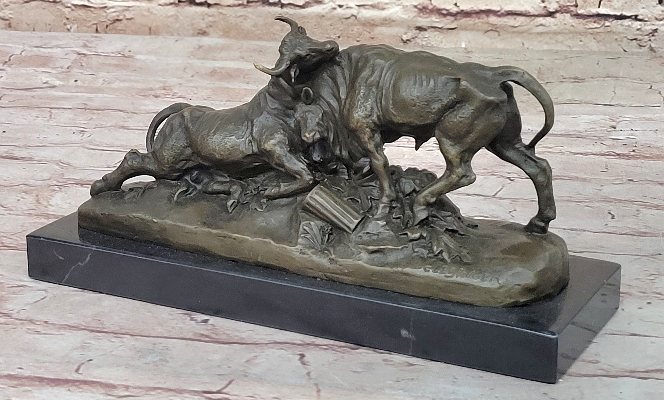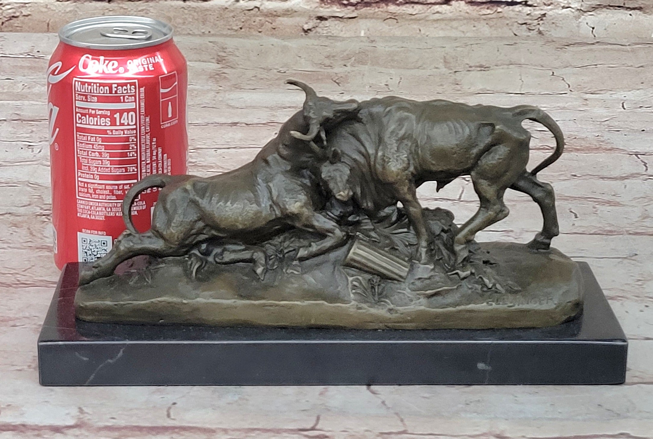 COMBAT DE TAUREAUX by Clesinger Bulls Fighting Bronze Statue Sculpture 5" x 10"