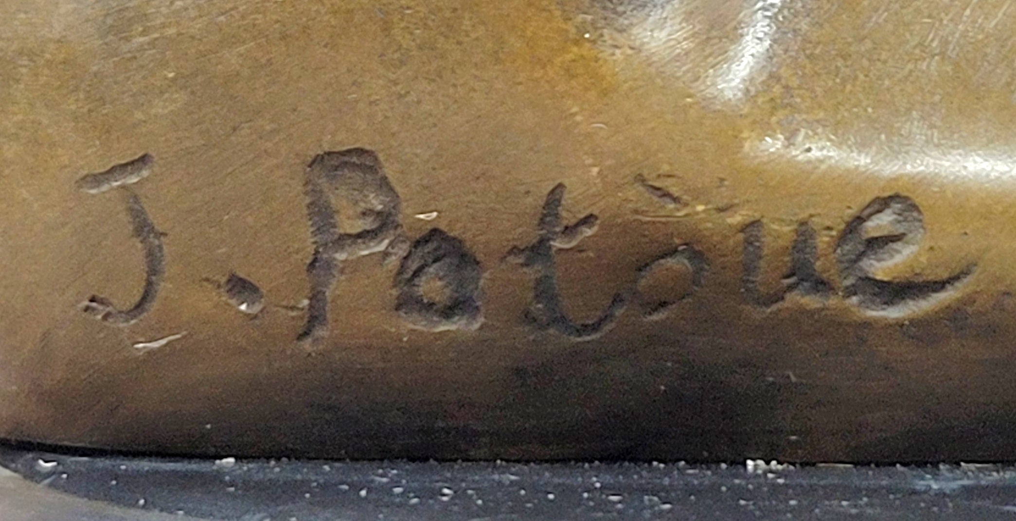 This collector edition piece is not only a work of art but a collector's treasure. Signed by renowned artist Jean Patou, the sculpture is part of a numbered series, ensuring its exclusivity and value. Whether displayed in a gallery or a personal collection, it will undoubtedly serve as a centerpiece, evoking admiration for its craftsmanship and the remarkable elegance of the human form in motion.Bronze Dimensions with Marble Base :Height 6" X Width 7"