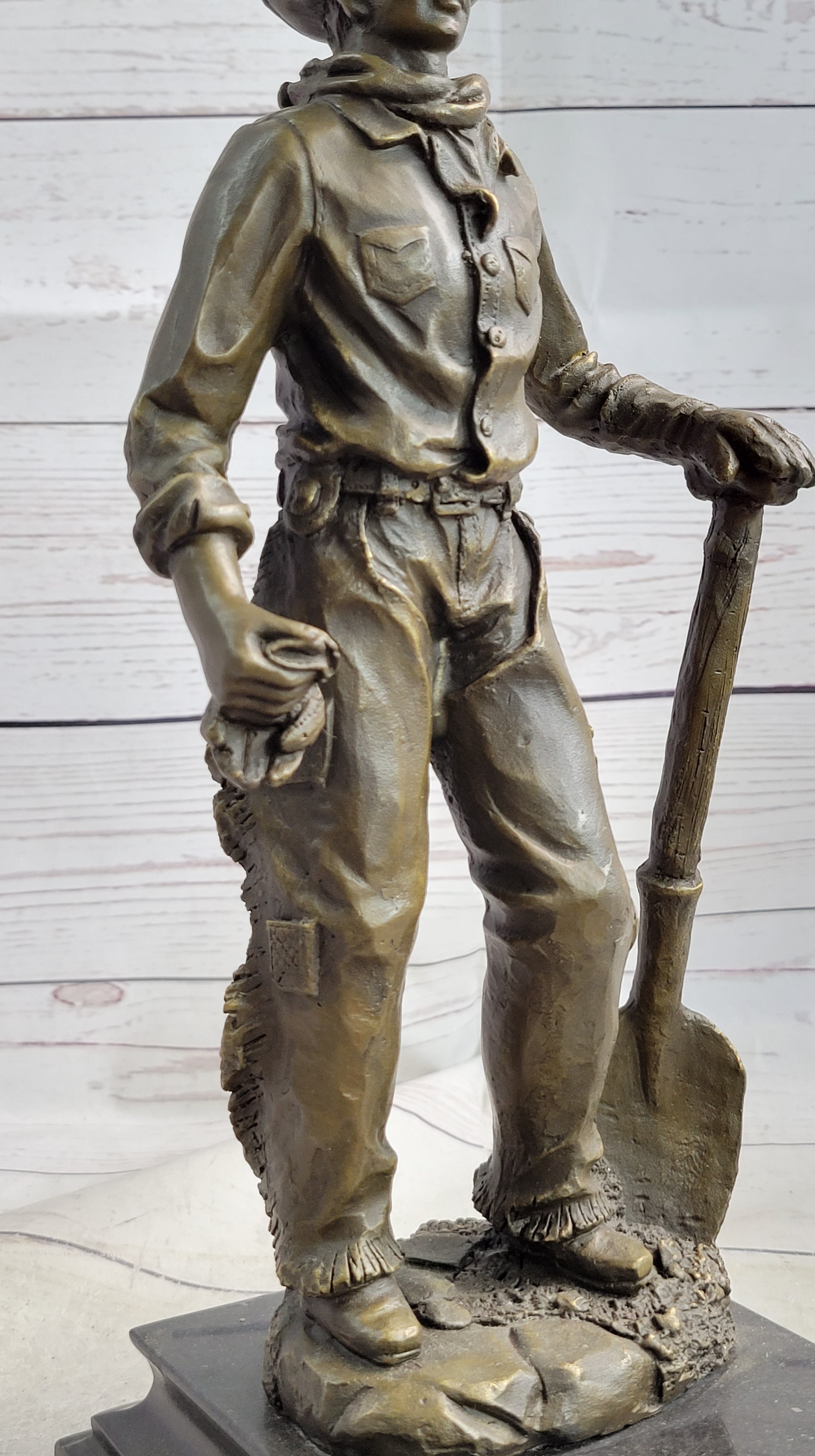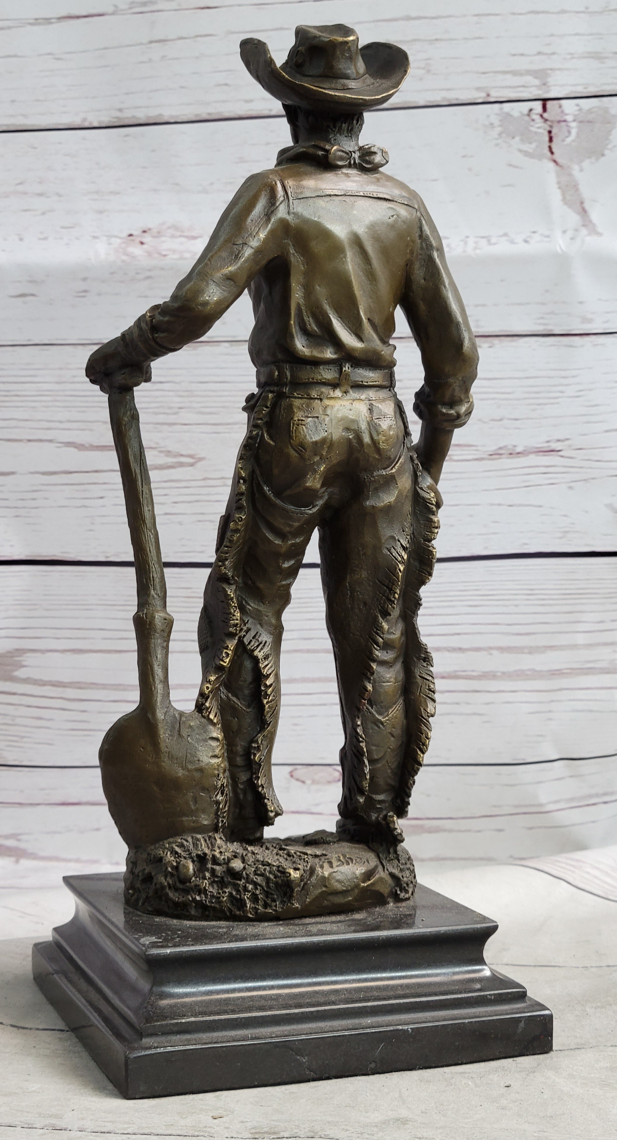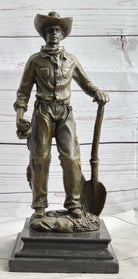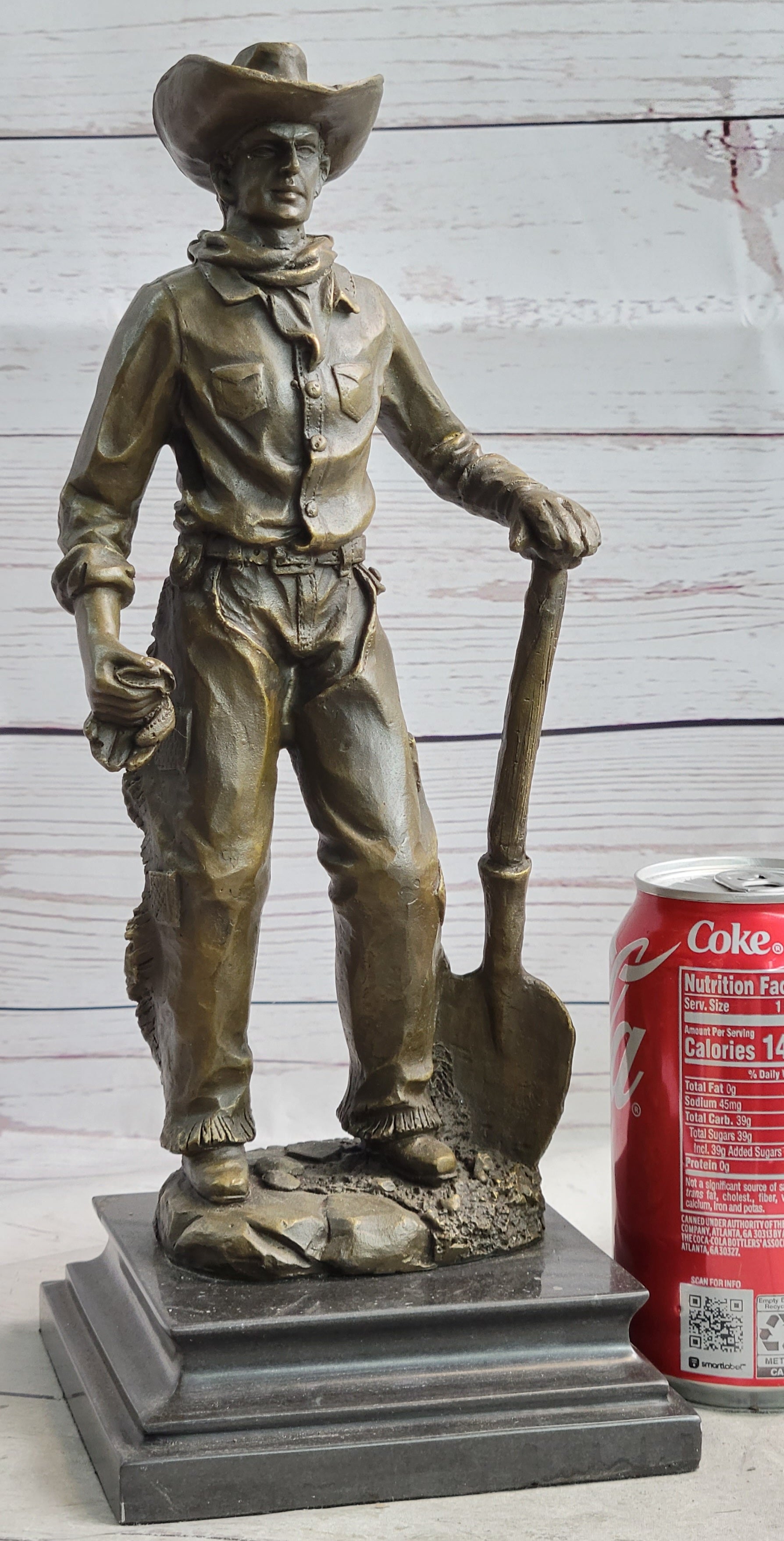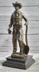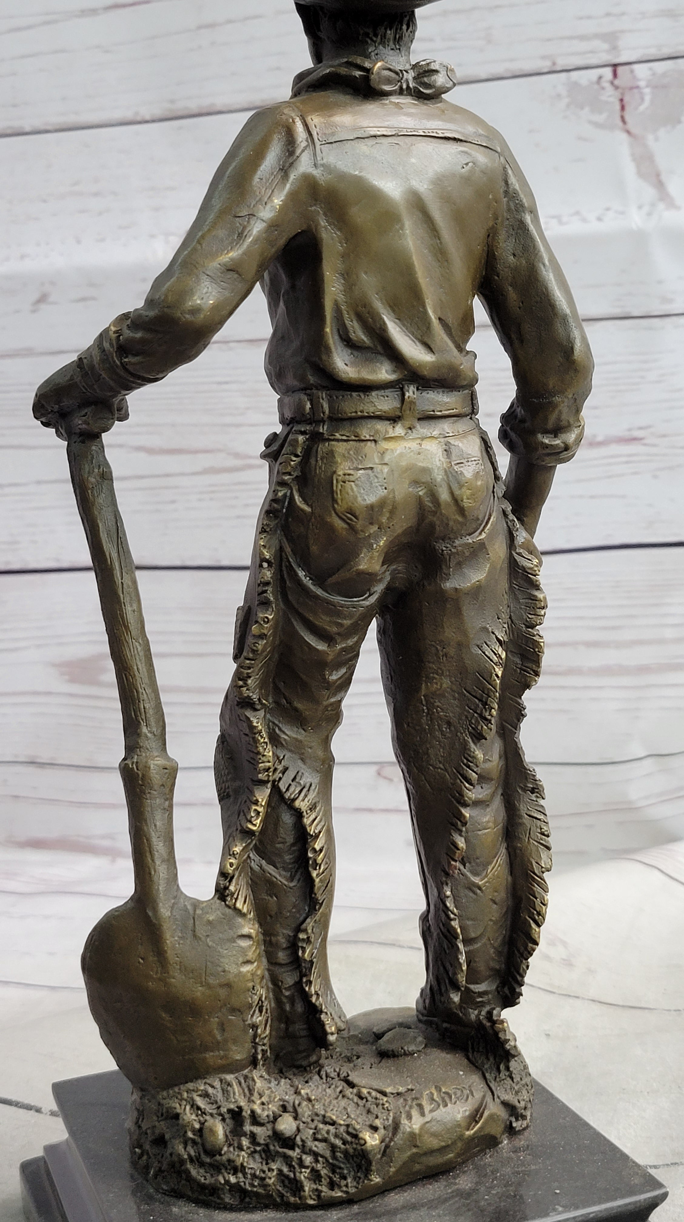 Cowboy in Chaps Holding Shovel Bronze Statue Sculpture Figure Country Western 12" x 5"