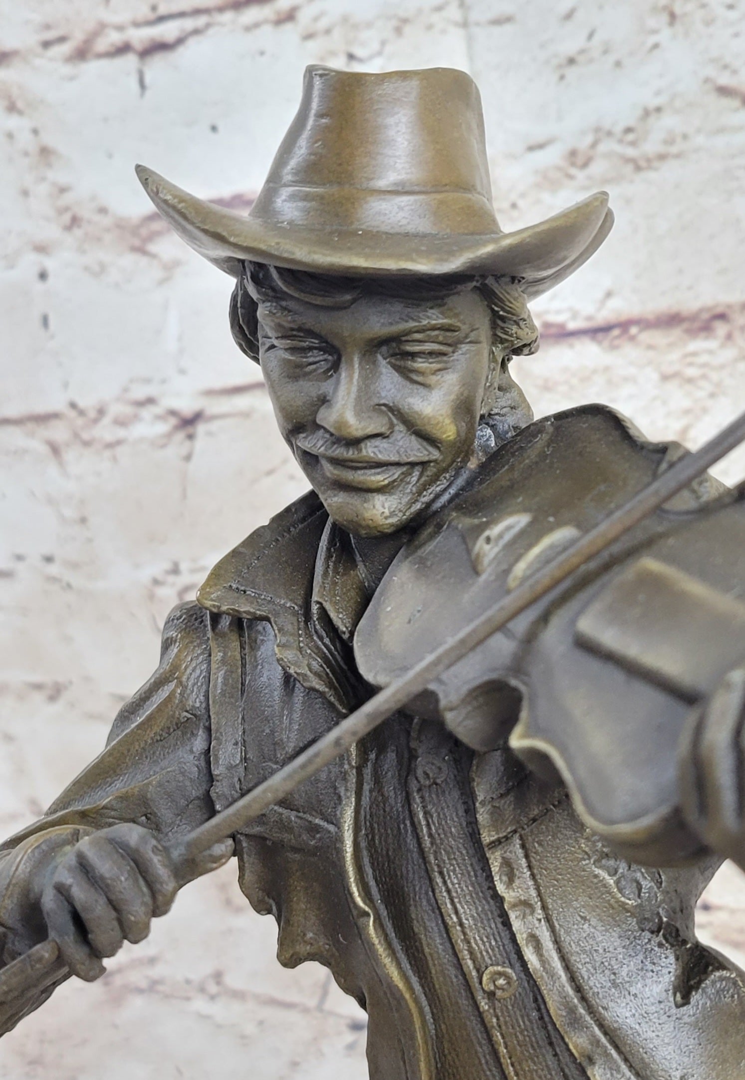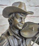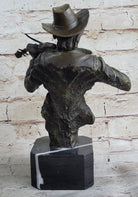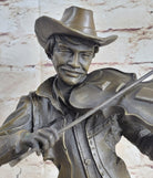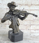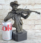 Cowboy Playing Violin Fiddle Music Bronze Sculpture Marble Statue Figurine