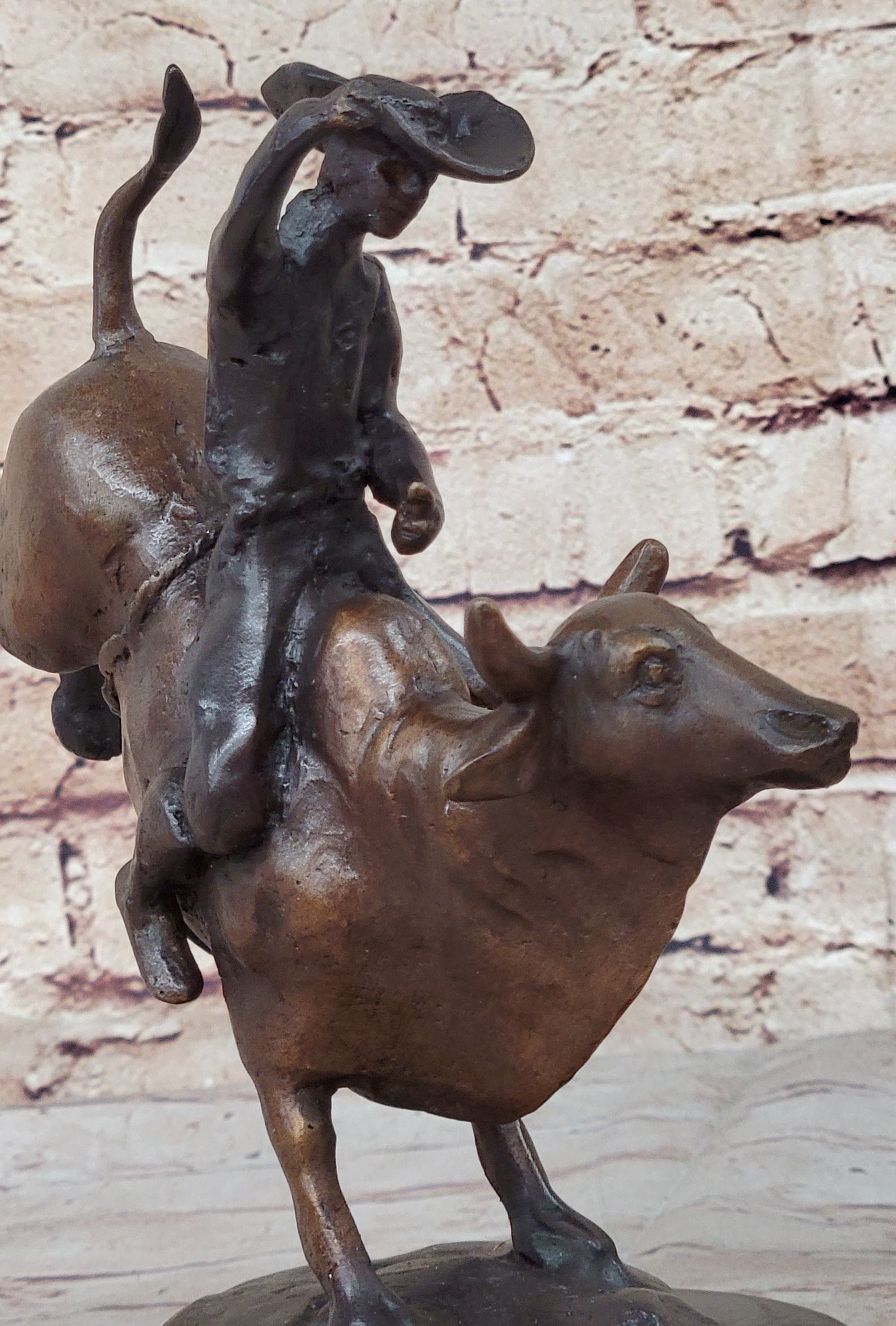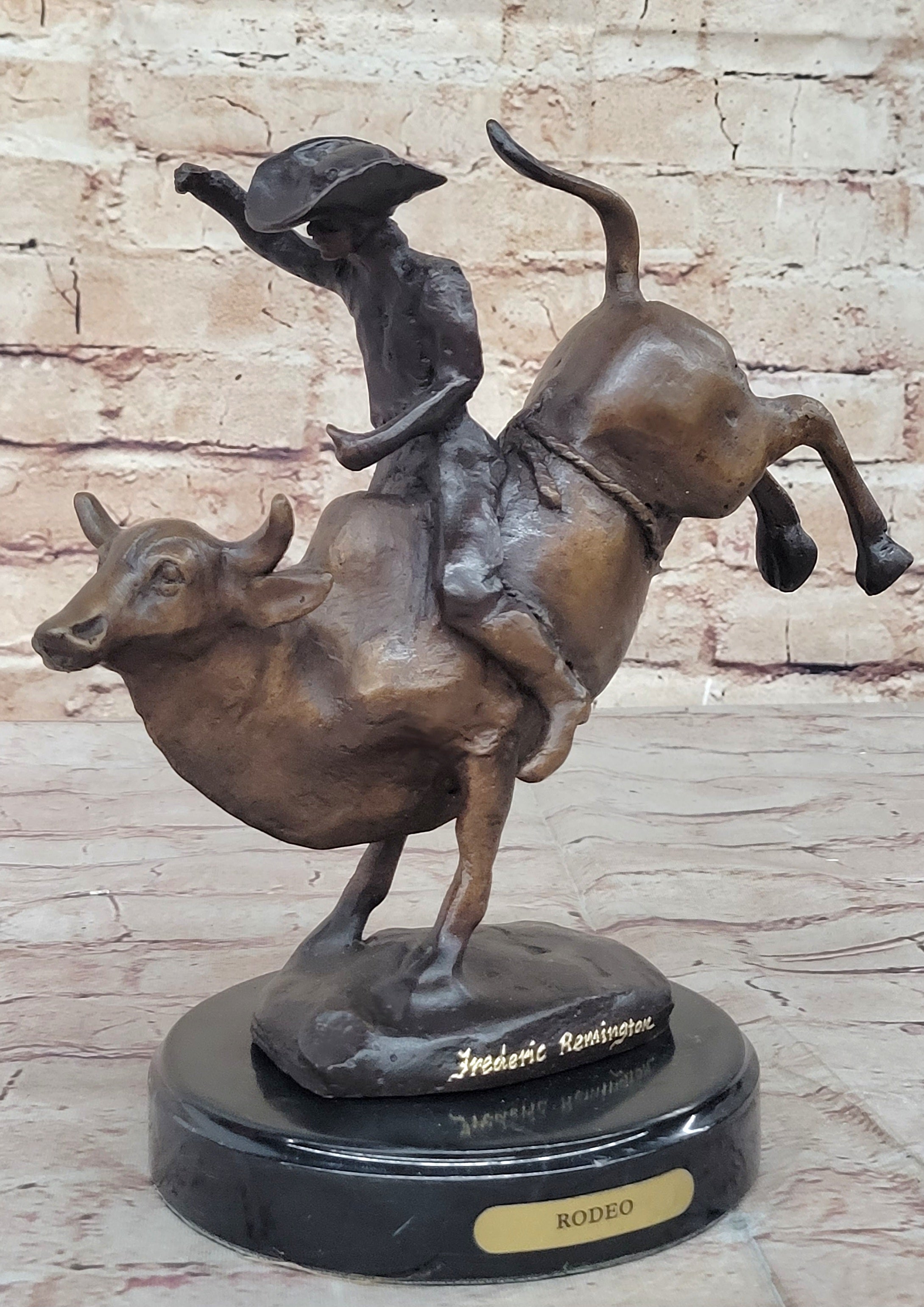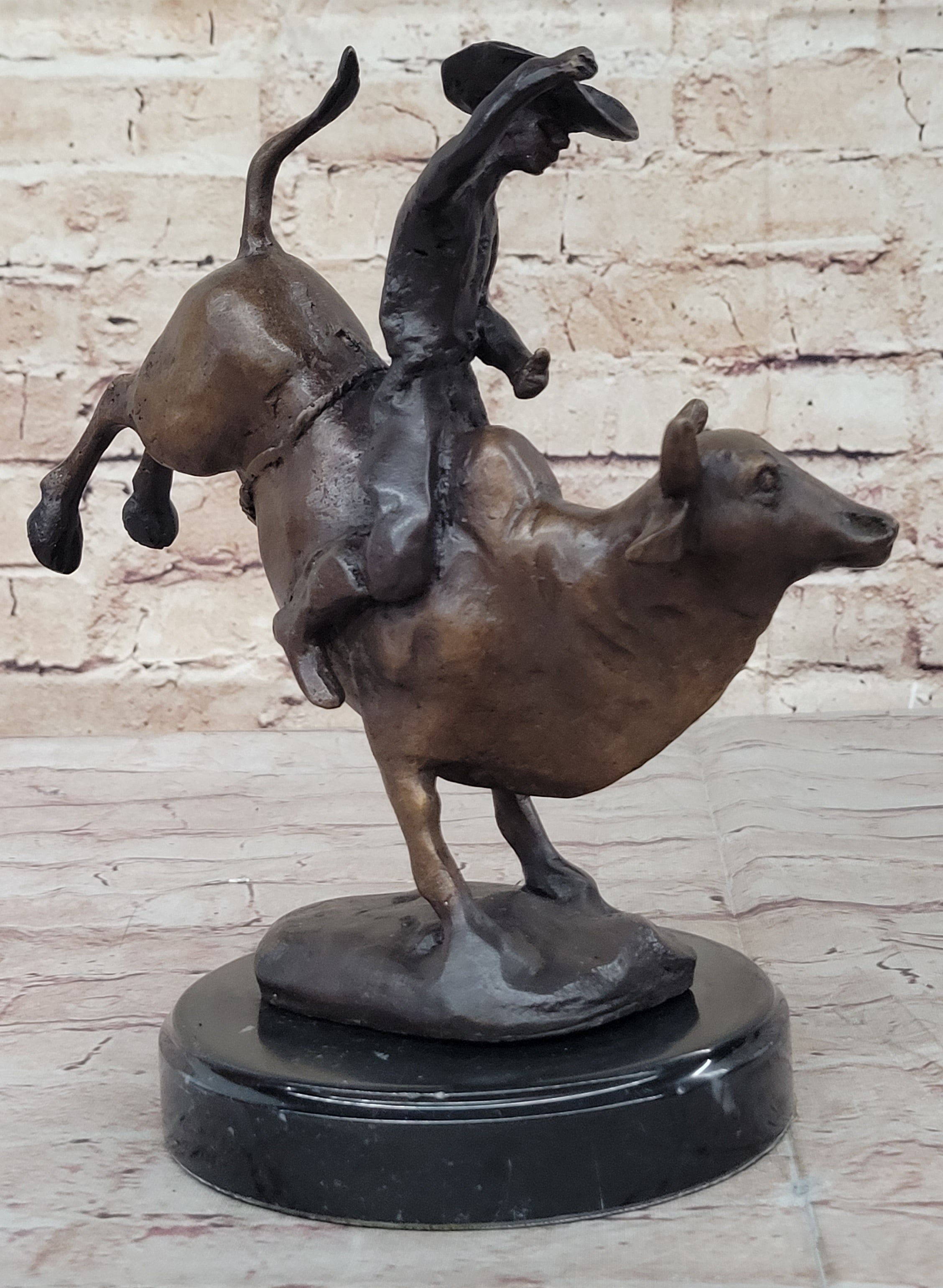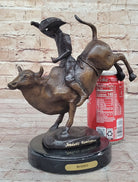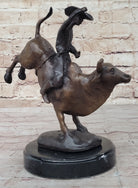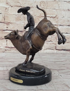RODEO Bull Rider Cowboy Bronze Statue Sculpture Marble Base Western Decor 9" x 9"