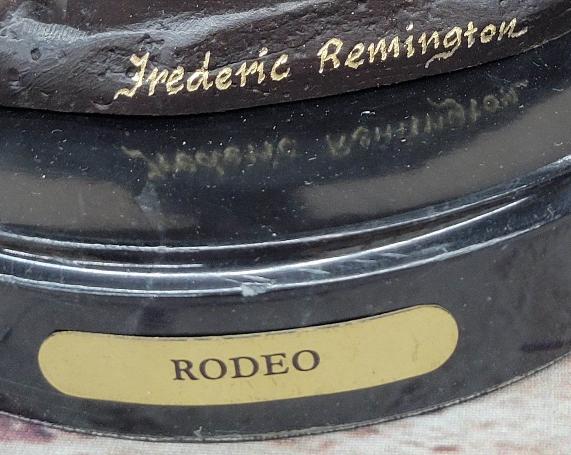 Mounted on a sleek black marble base, this artwork makes for a striking display of courage and strength. It is an ode to the spirit of the rodeo and a reminder of the enduring battle between man and nature.Bronze Dimensions with Marble Base: Height 9" x Width 9"