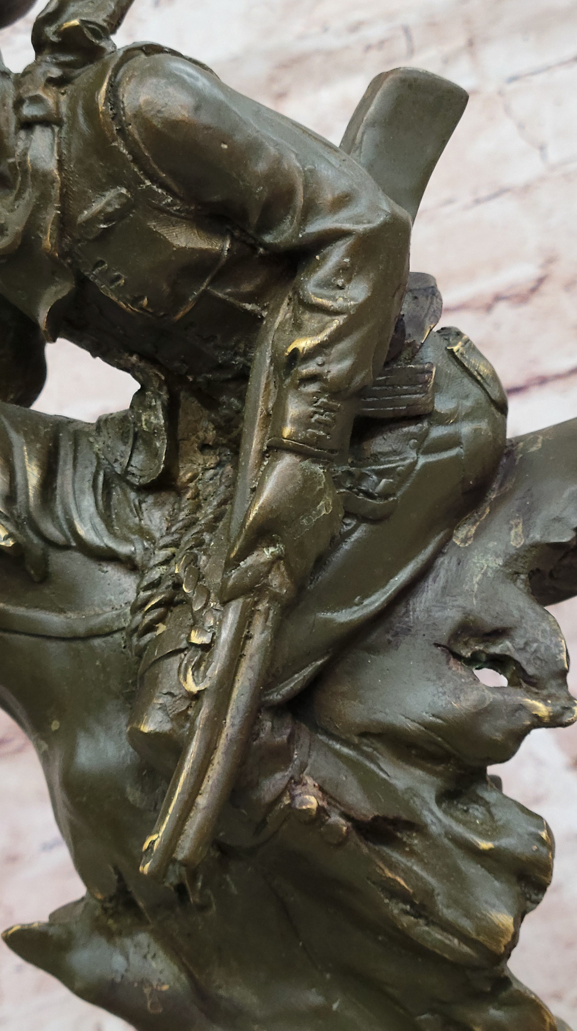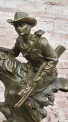Cowboy with Rifle on Rearing Horse Bronze Sculpture - Wild West Equestrian Art