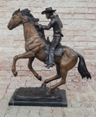 Cowboy with Rope on Horseback Country Western Bronze Sculpture Statue Frederic Remington