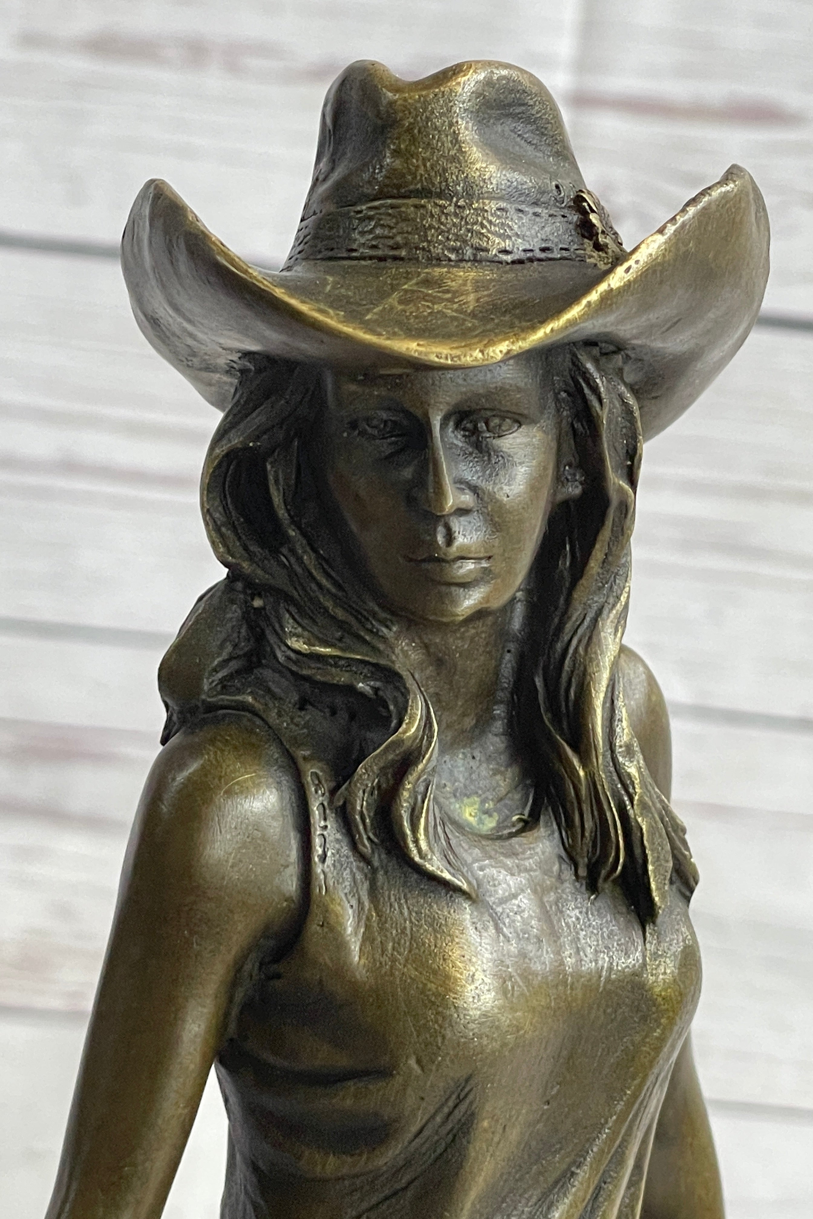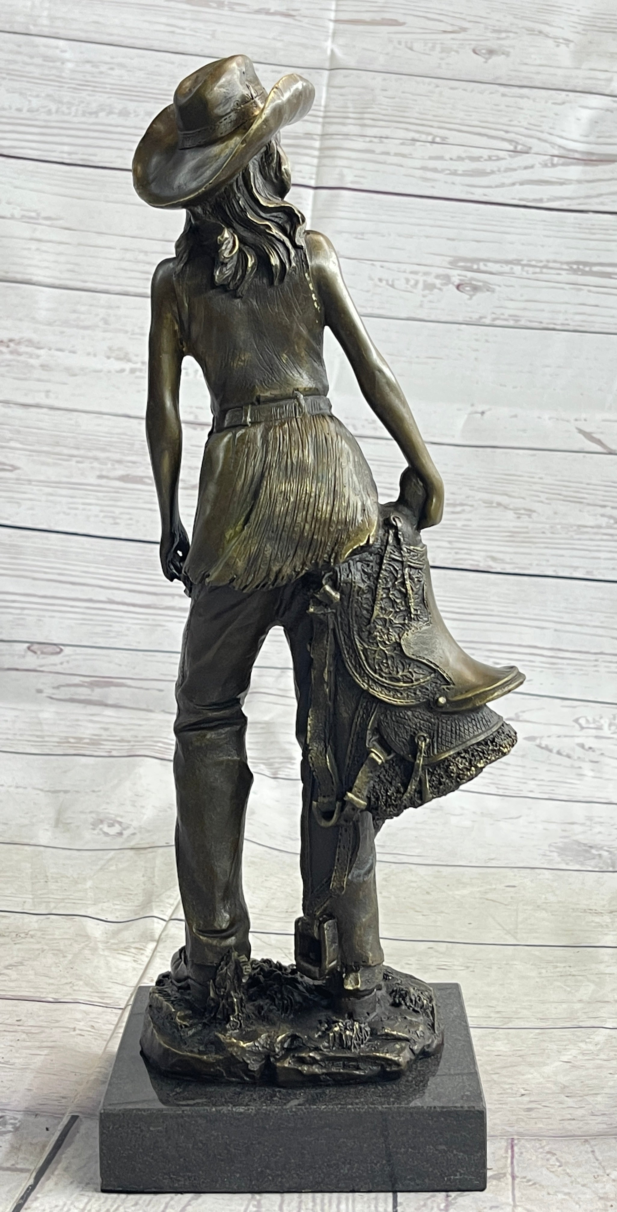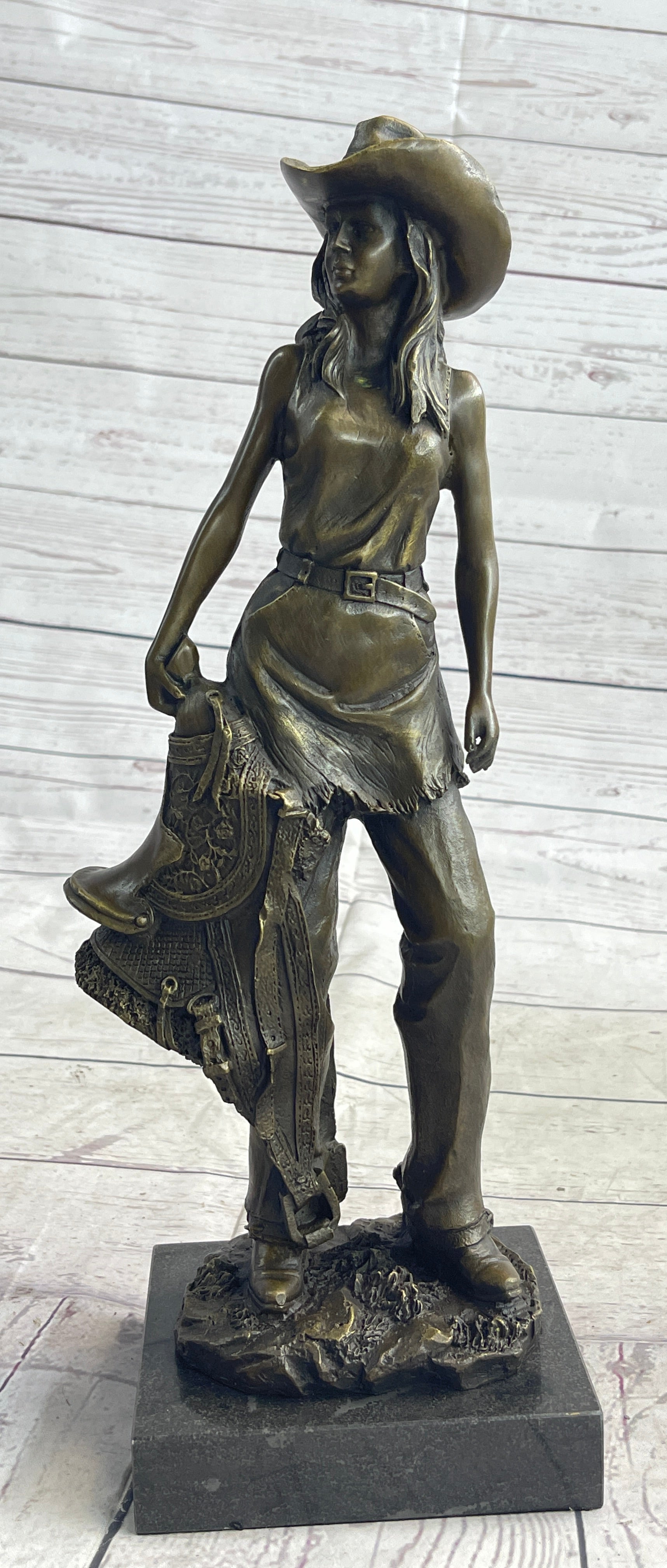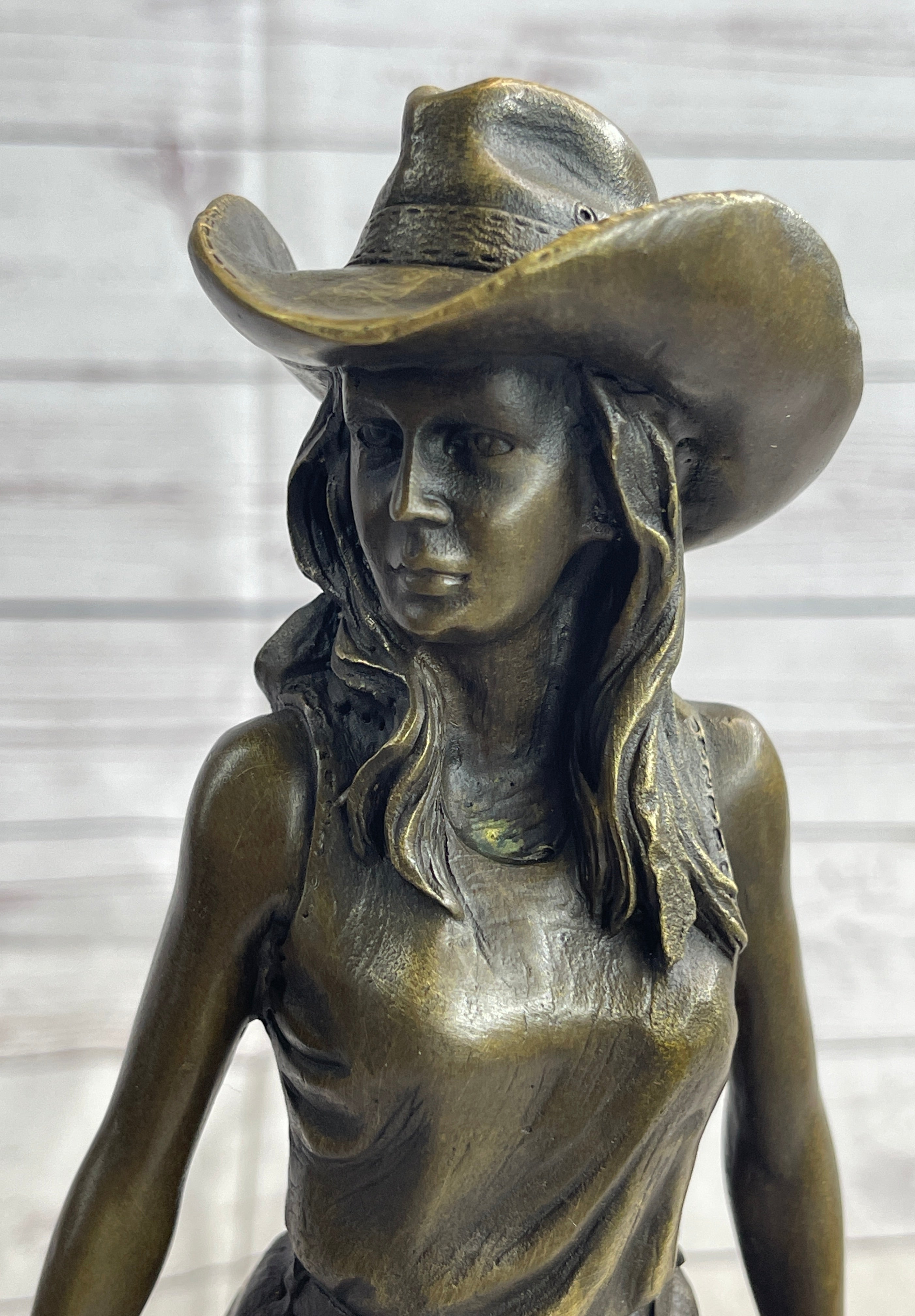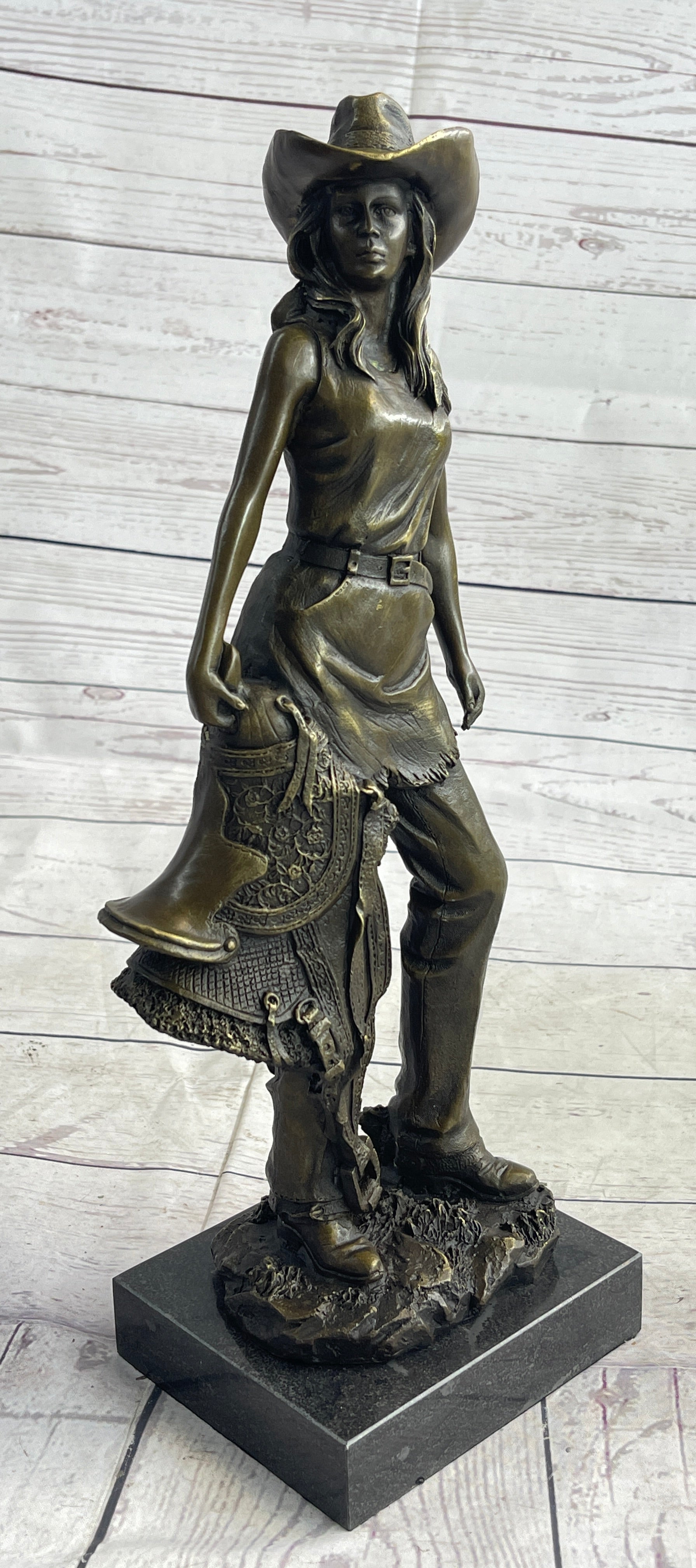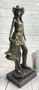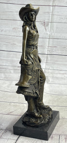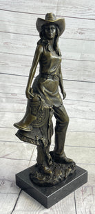 Cowgirl Female Cowboy Bronze Statue Sculpture Figure Western Art 15" x 6"