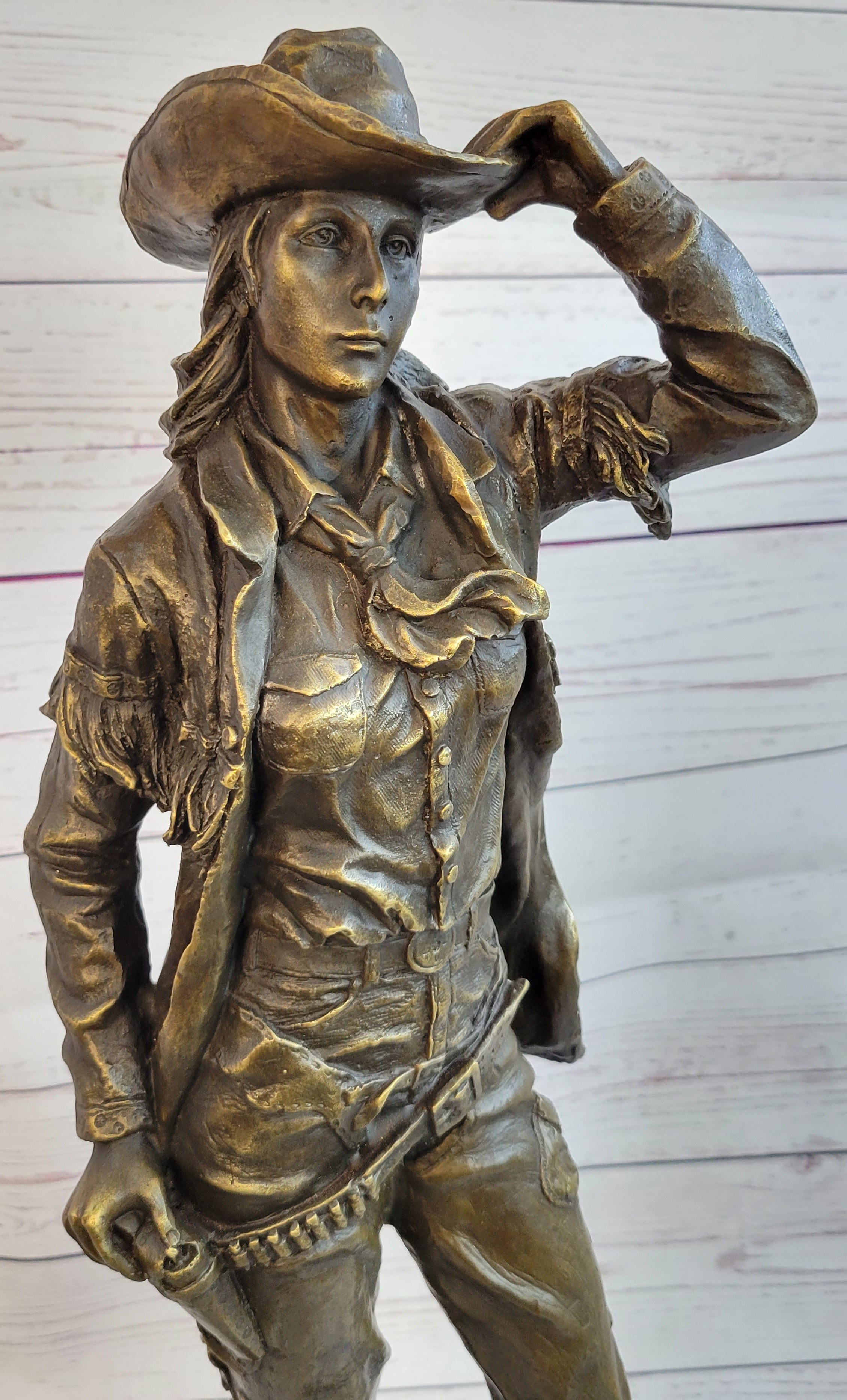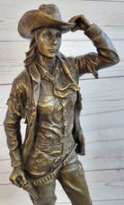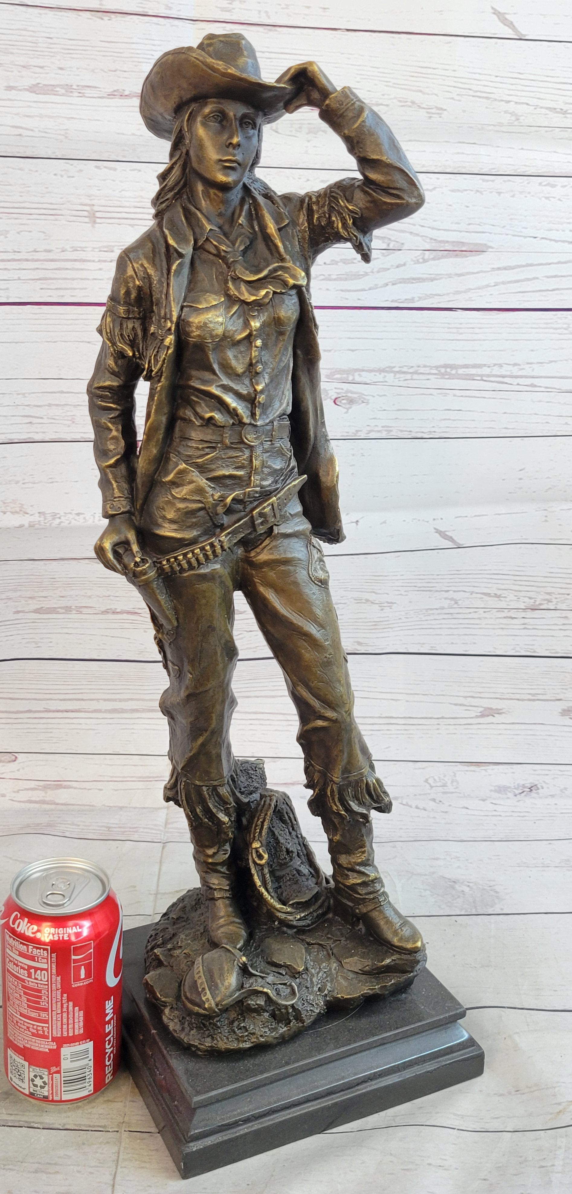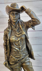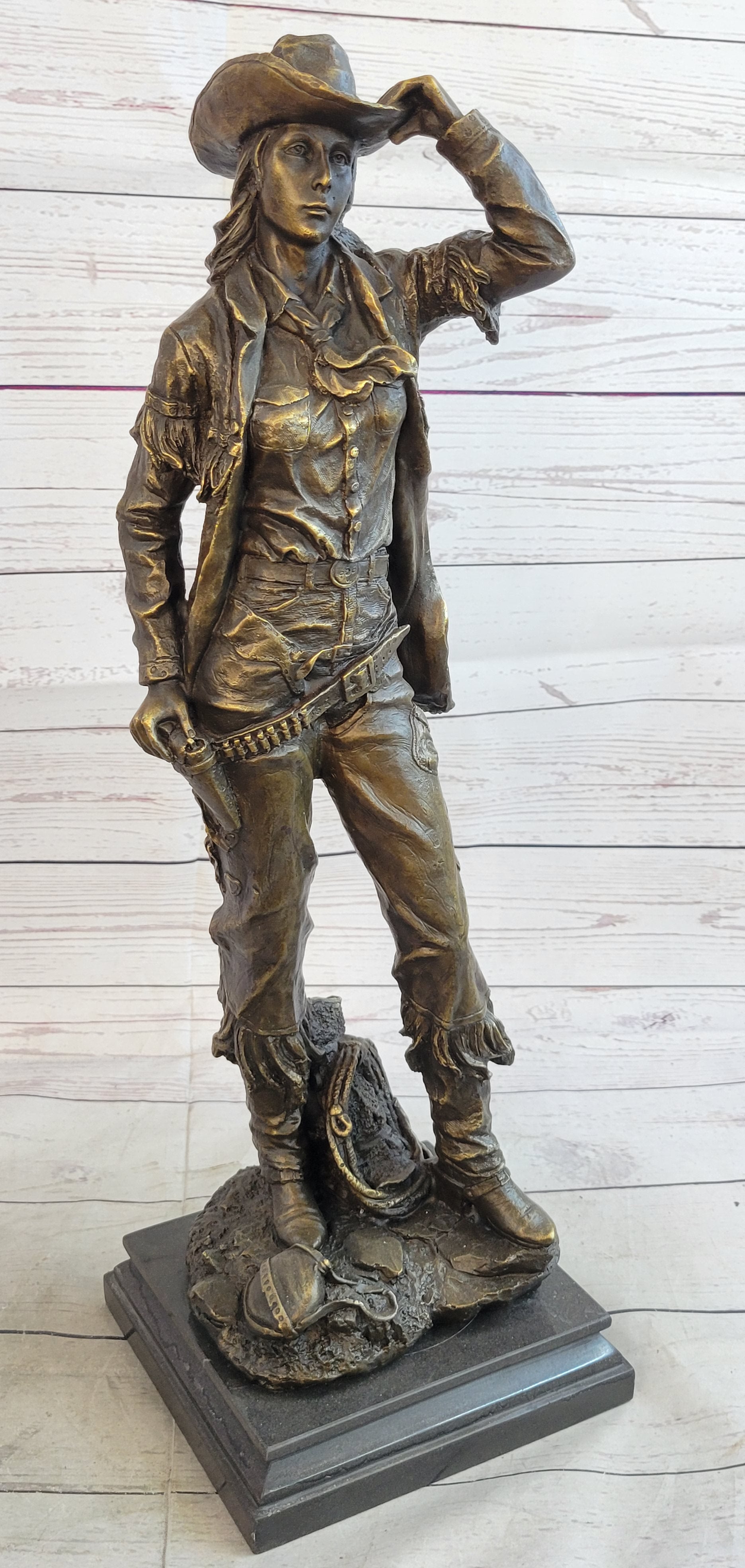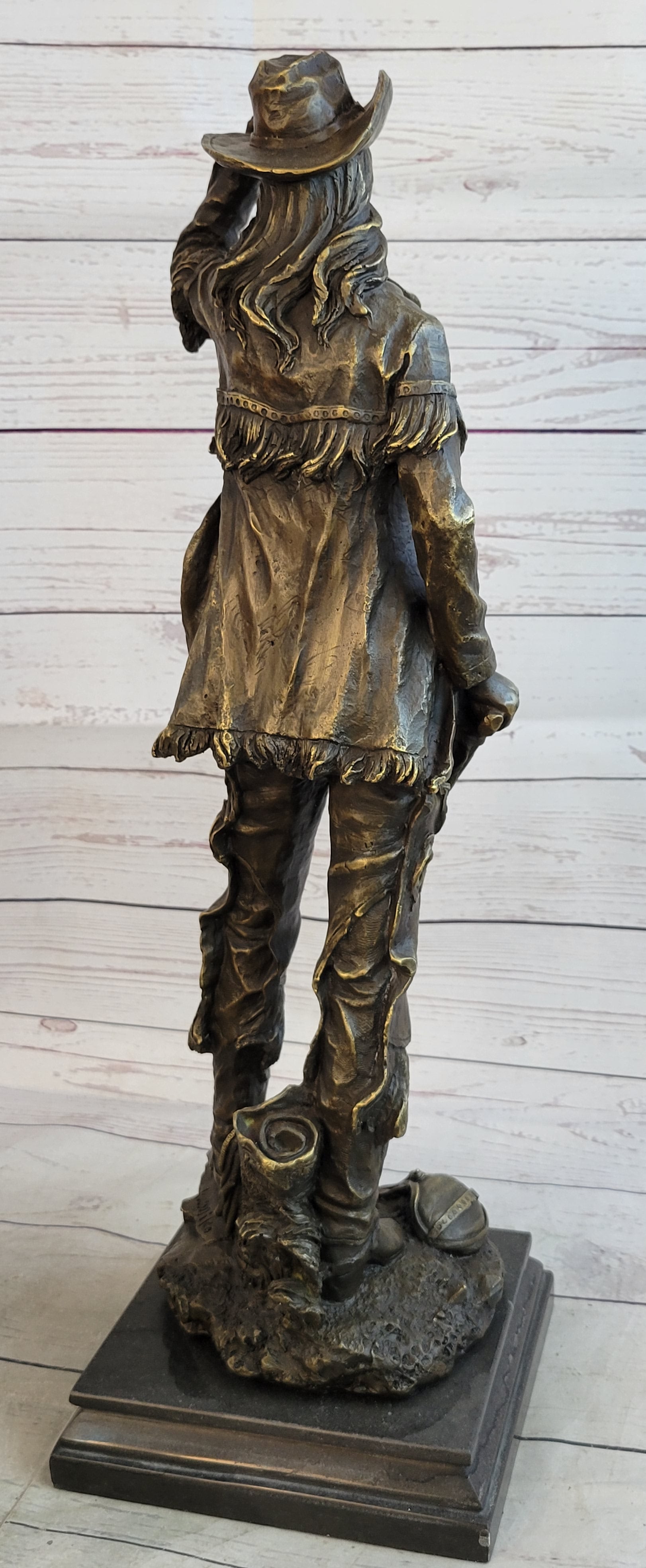 Cowgirl Female Cowboy Bronze Statue Sculpture Western Country Figure 22" X 7"
