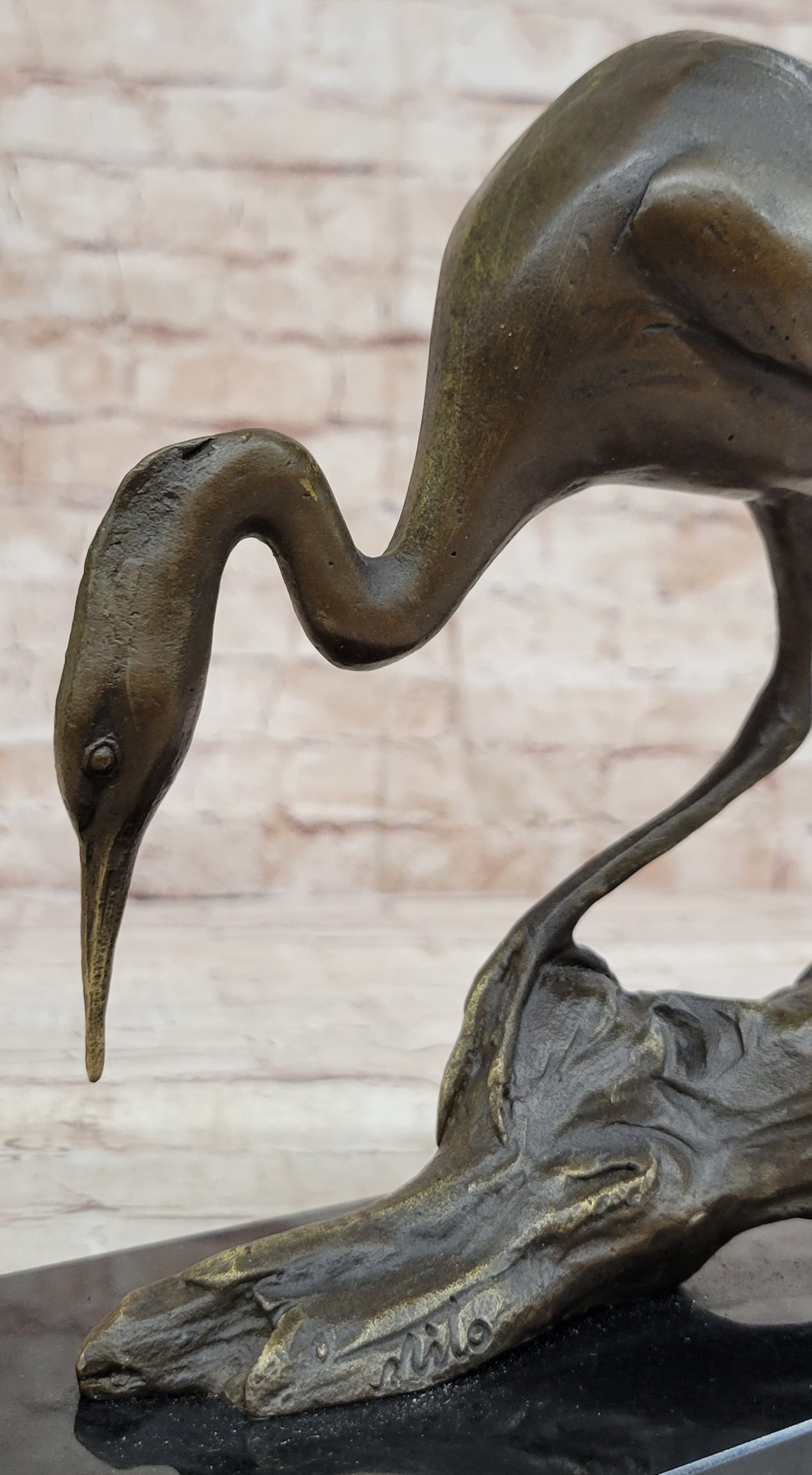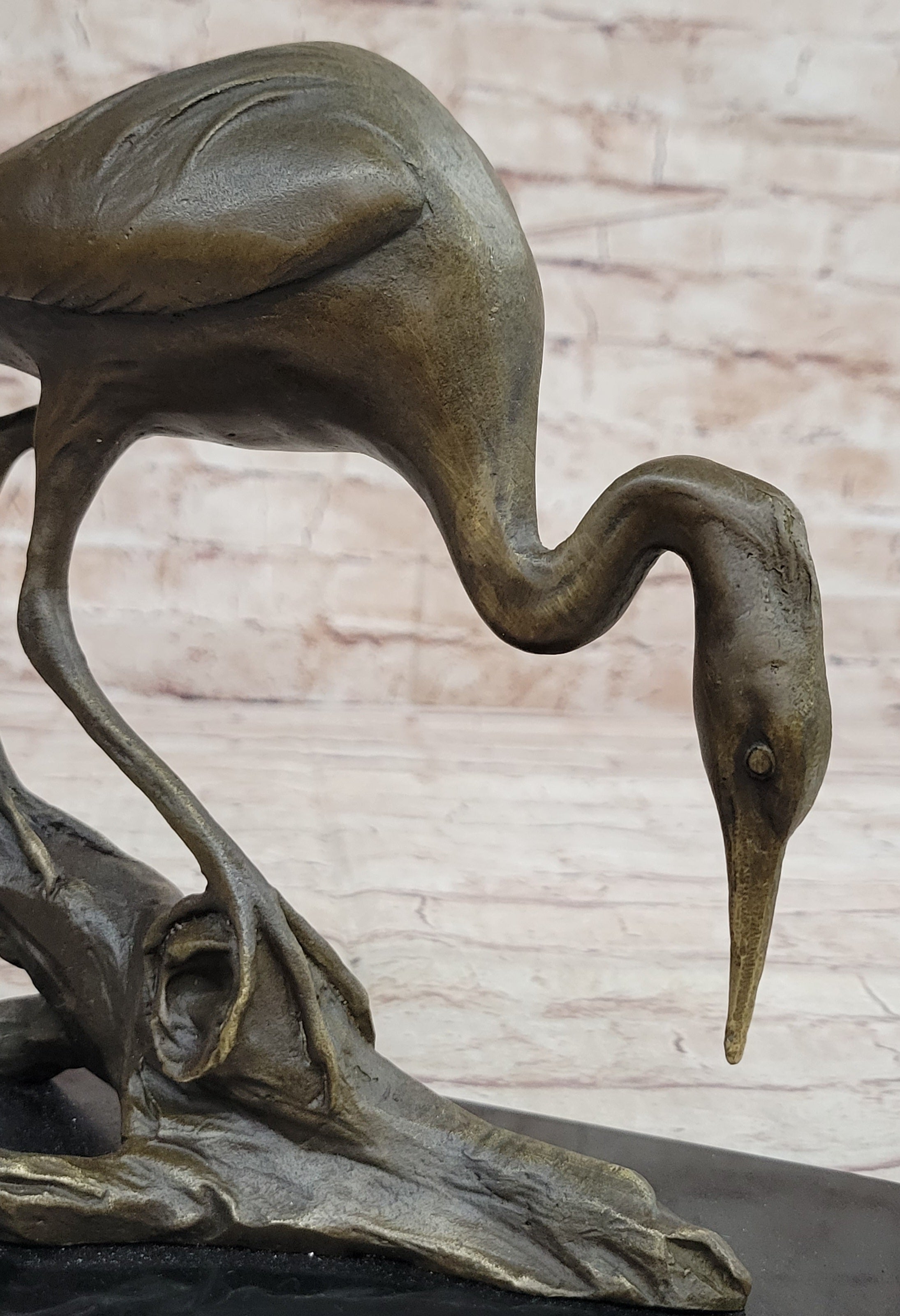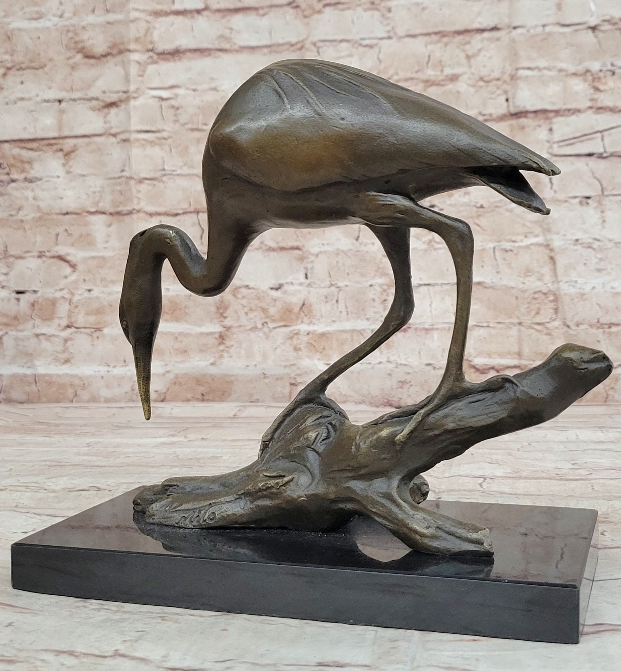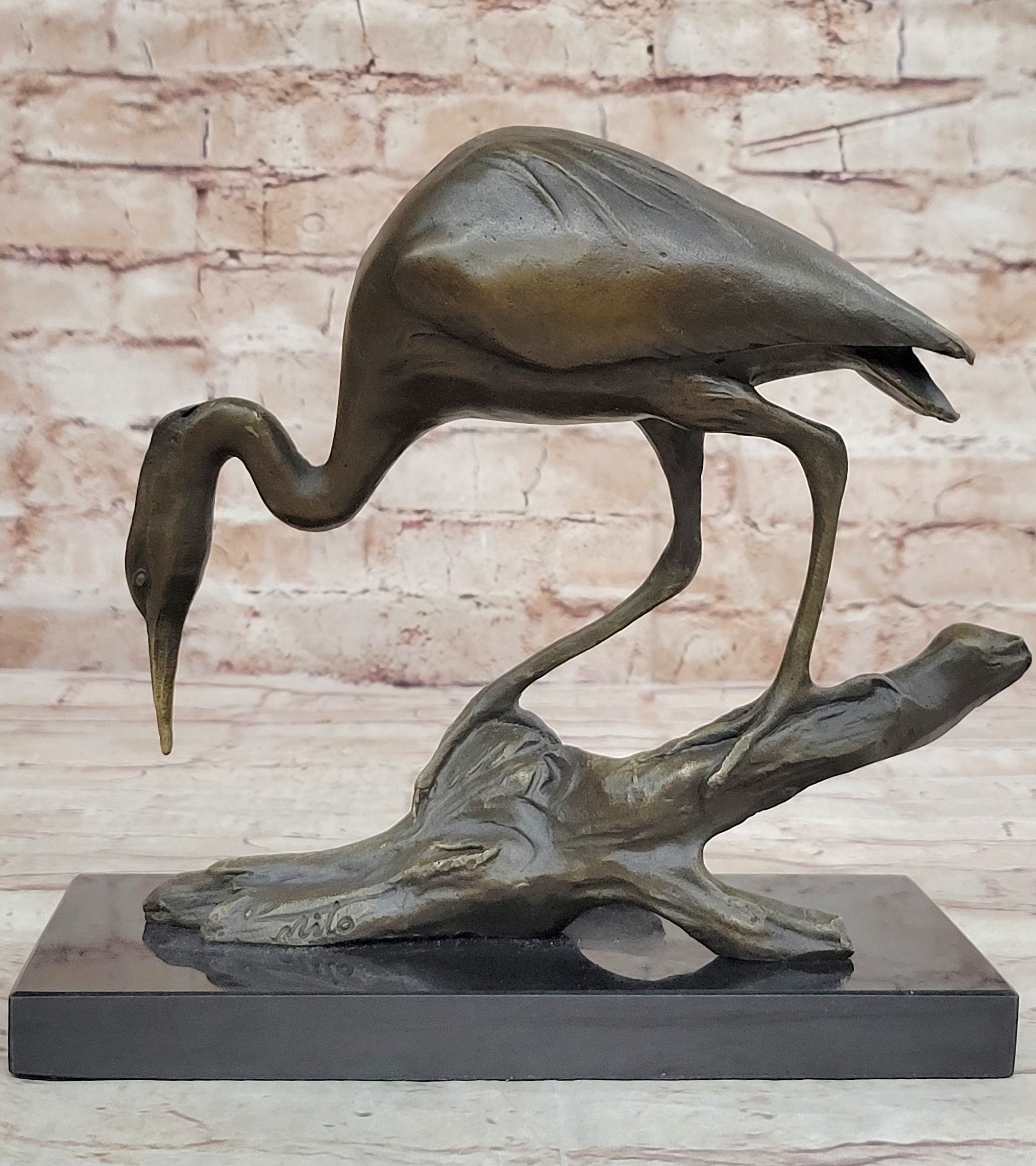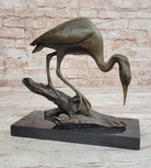 Crane Stork Egret Heron Water Bird Bronze Statue Sculpture Original Art on Marble Base
