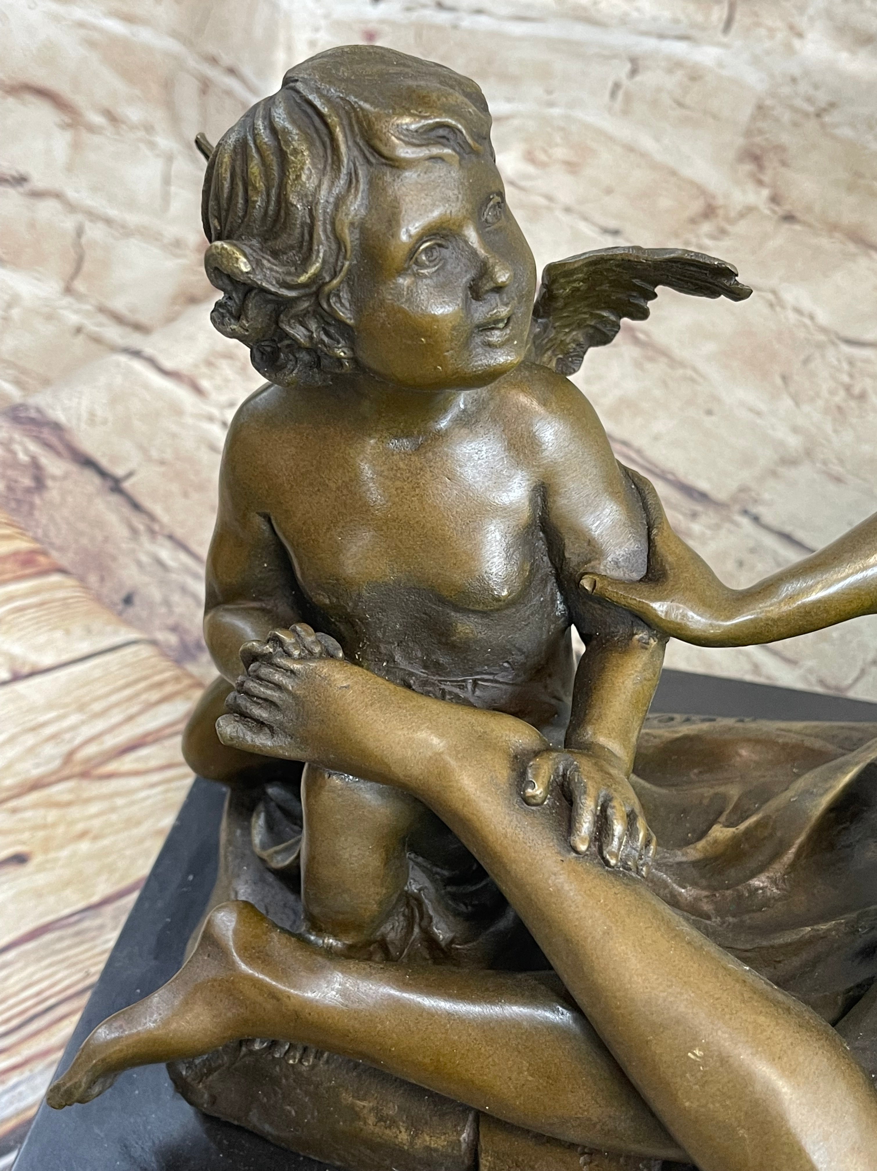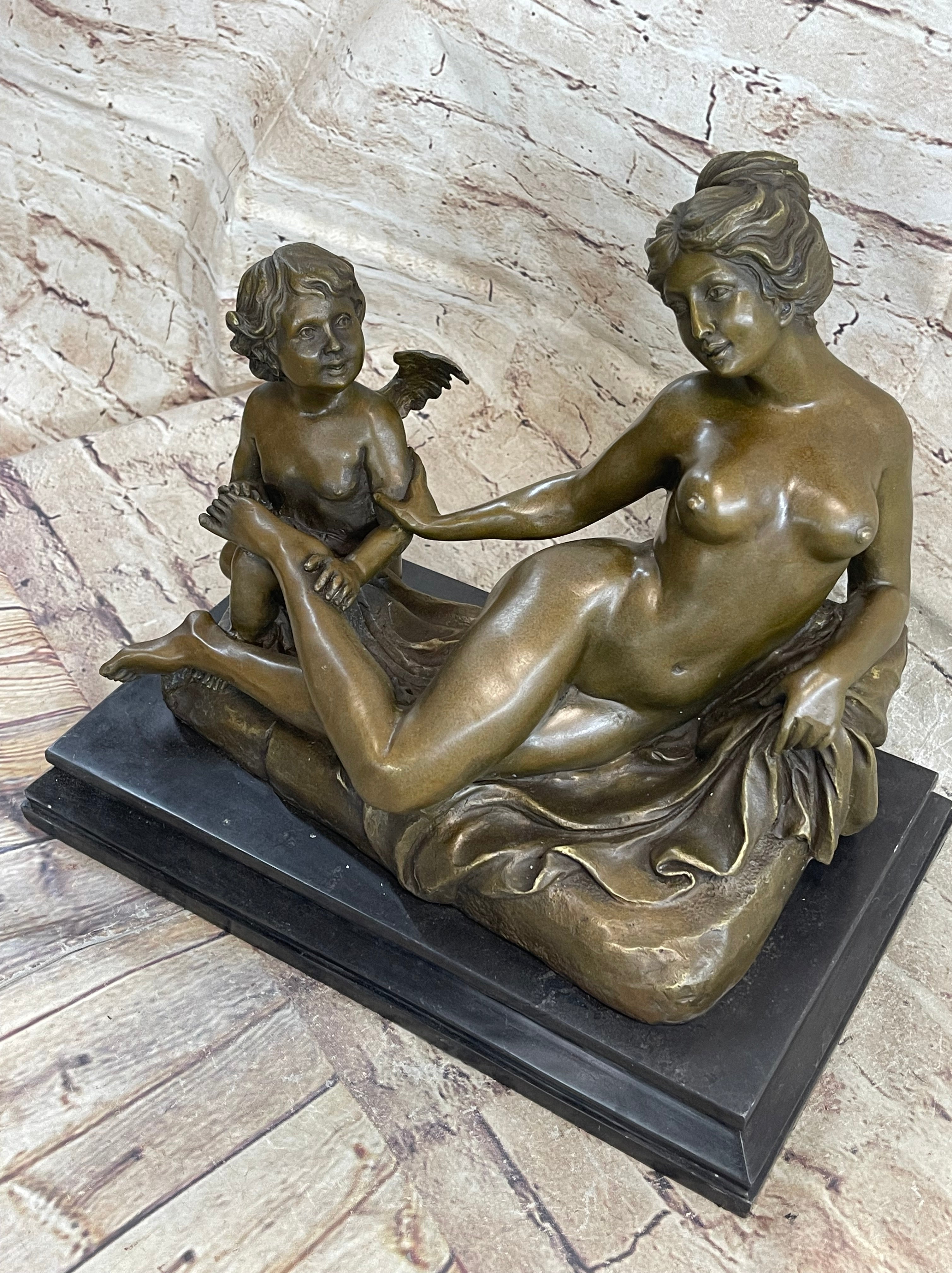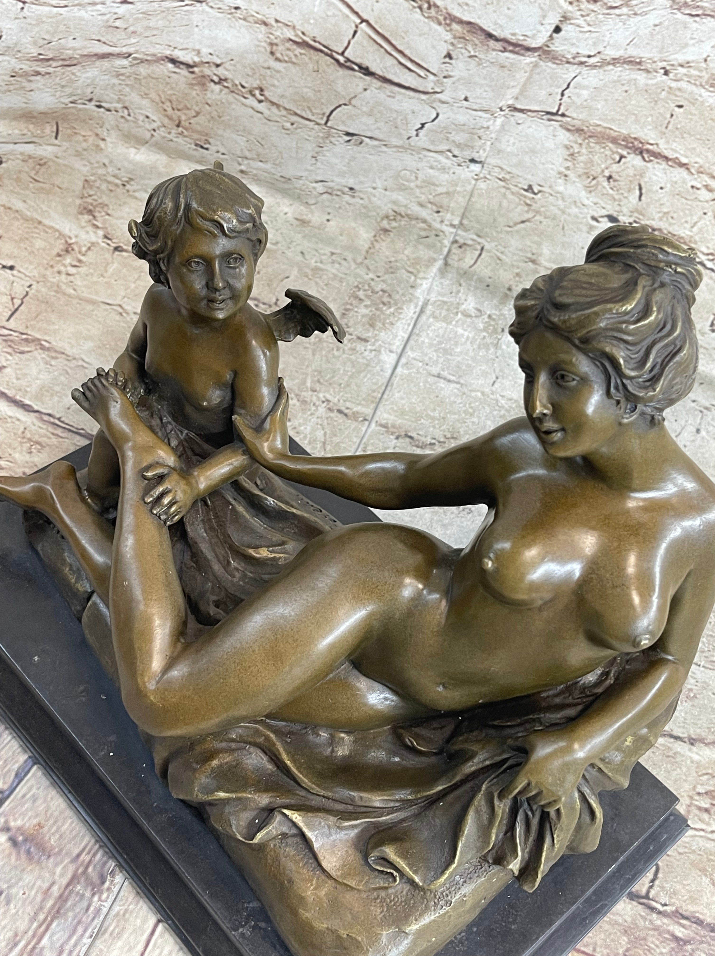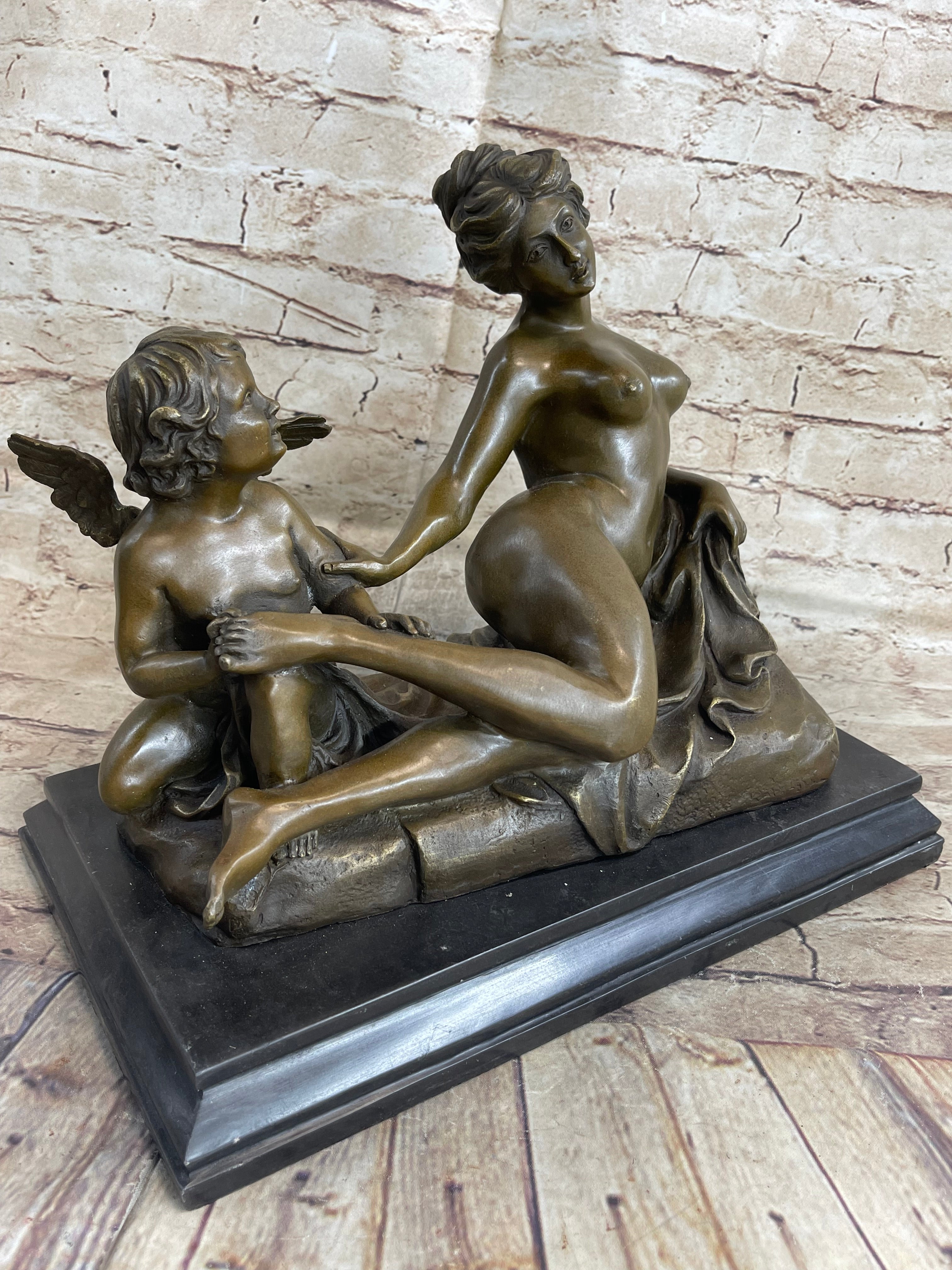 Cupid Comforting Aphrodite Bronze Sculpture After Louis Gossin Mythical Marble